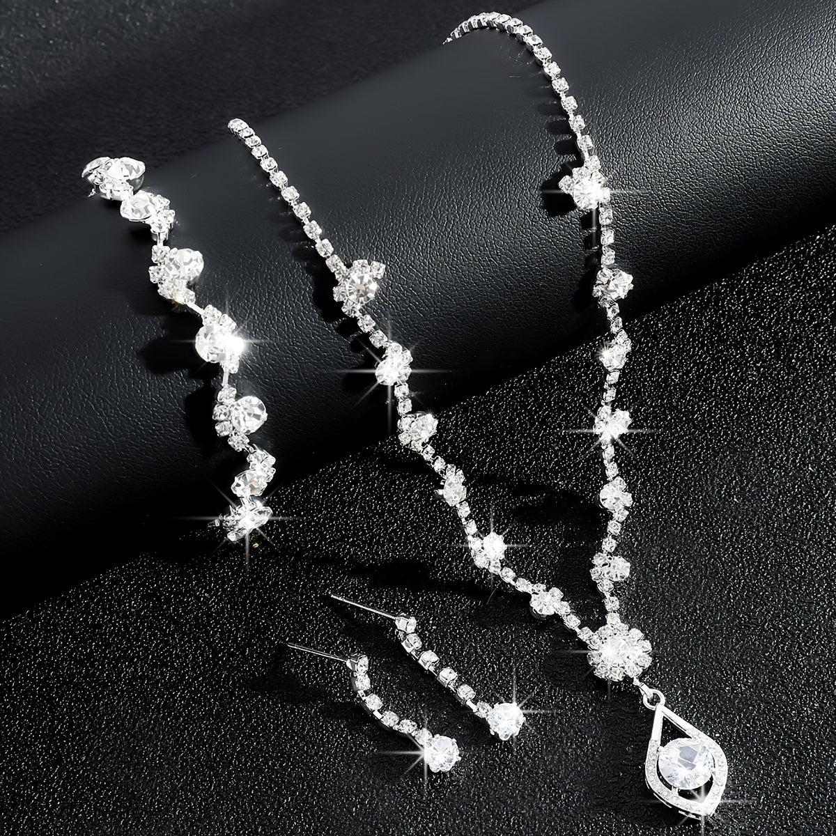 Floral Water Drop Jewelry Set with Rhinestones