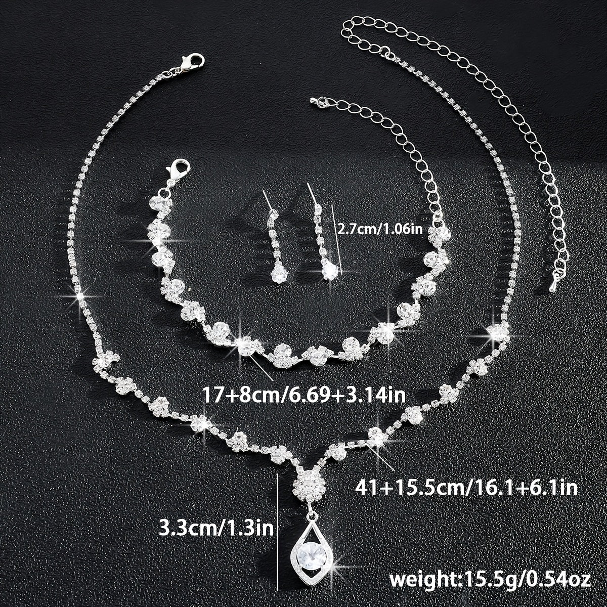 • Includes necklace, bracelet, and earrings for a complete look