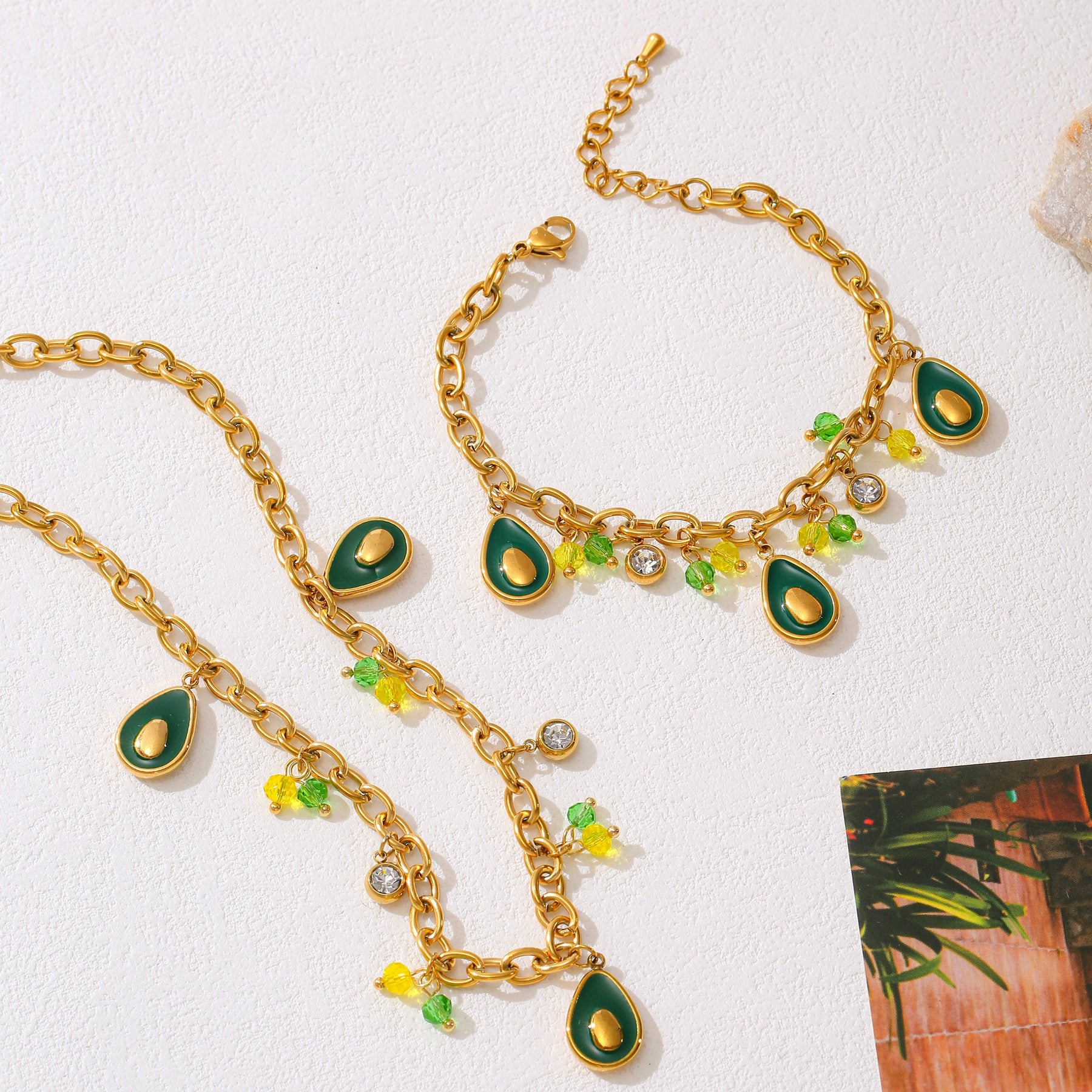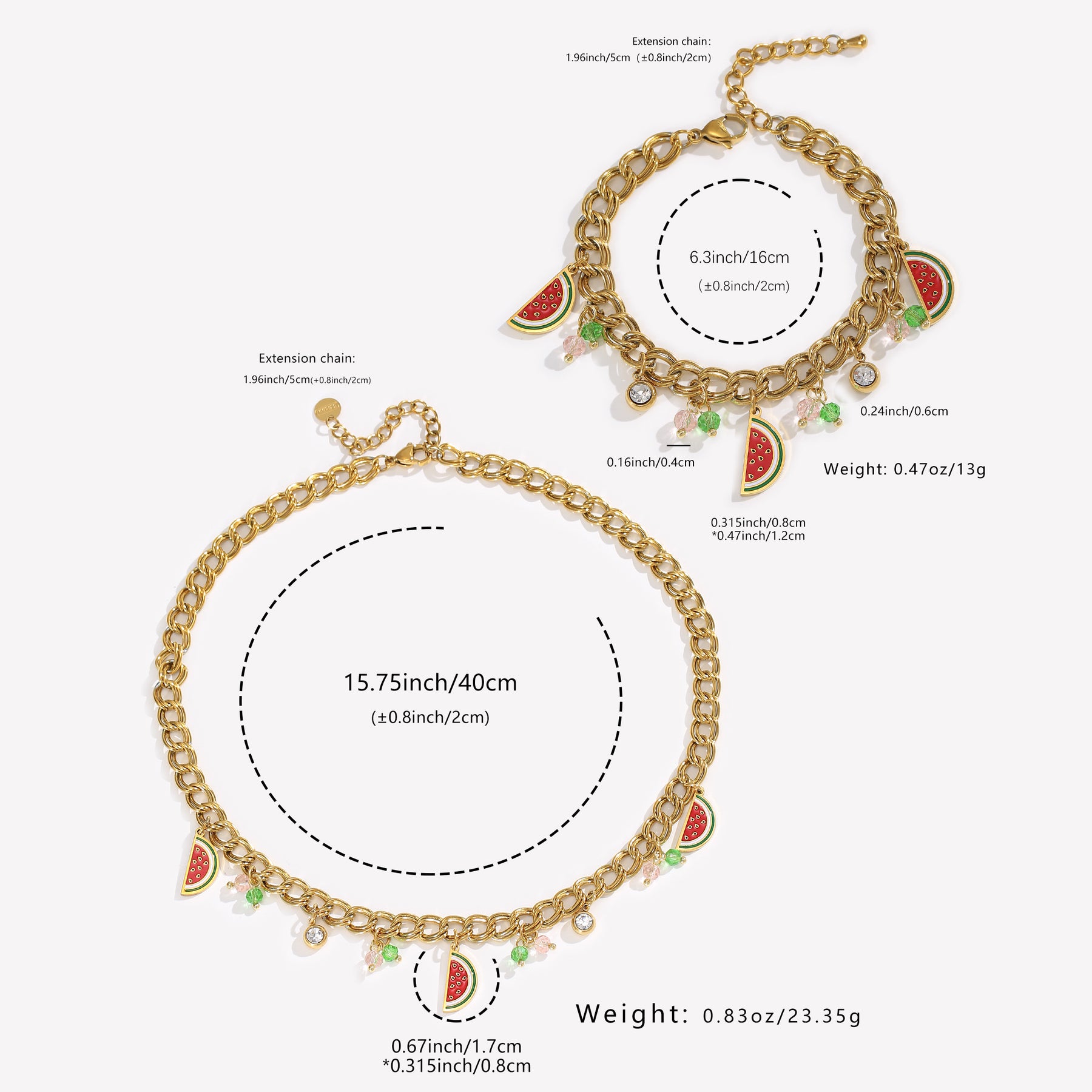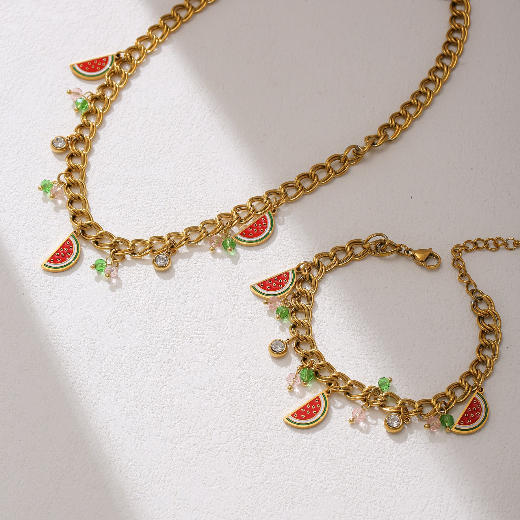 Fruit Pendant Stainless Steel Bracelet & Necklace Set for Women