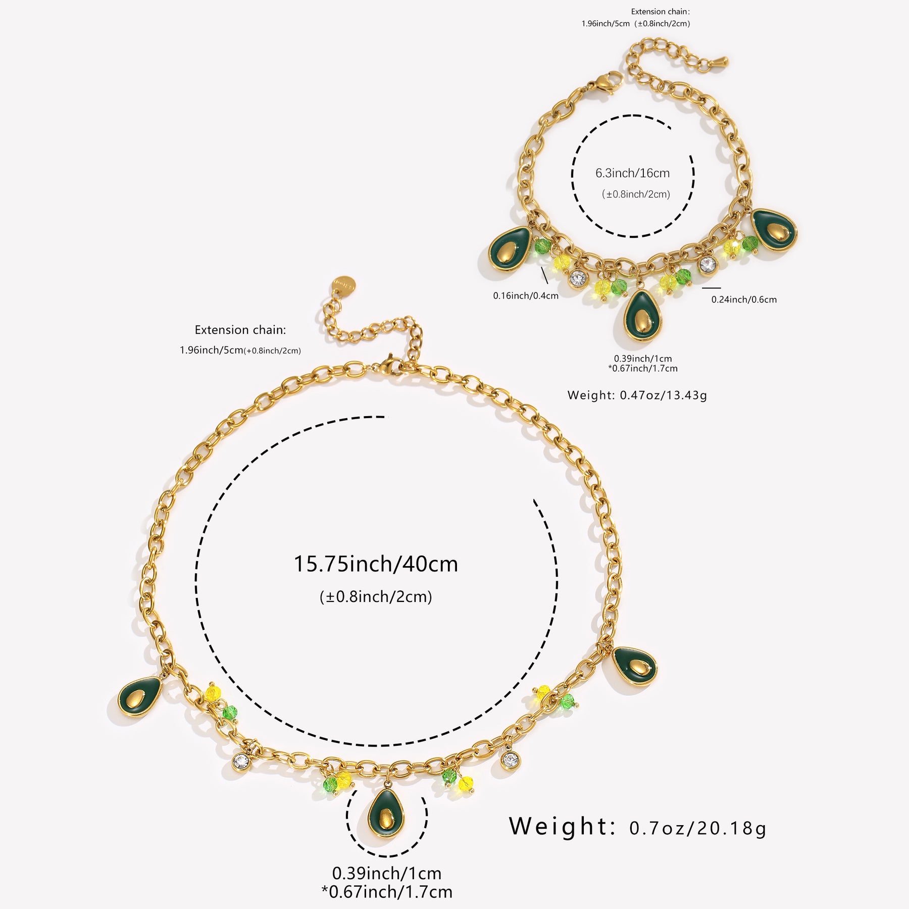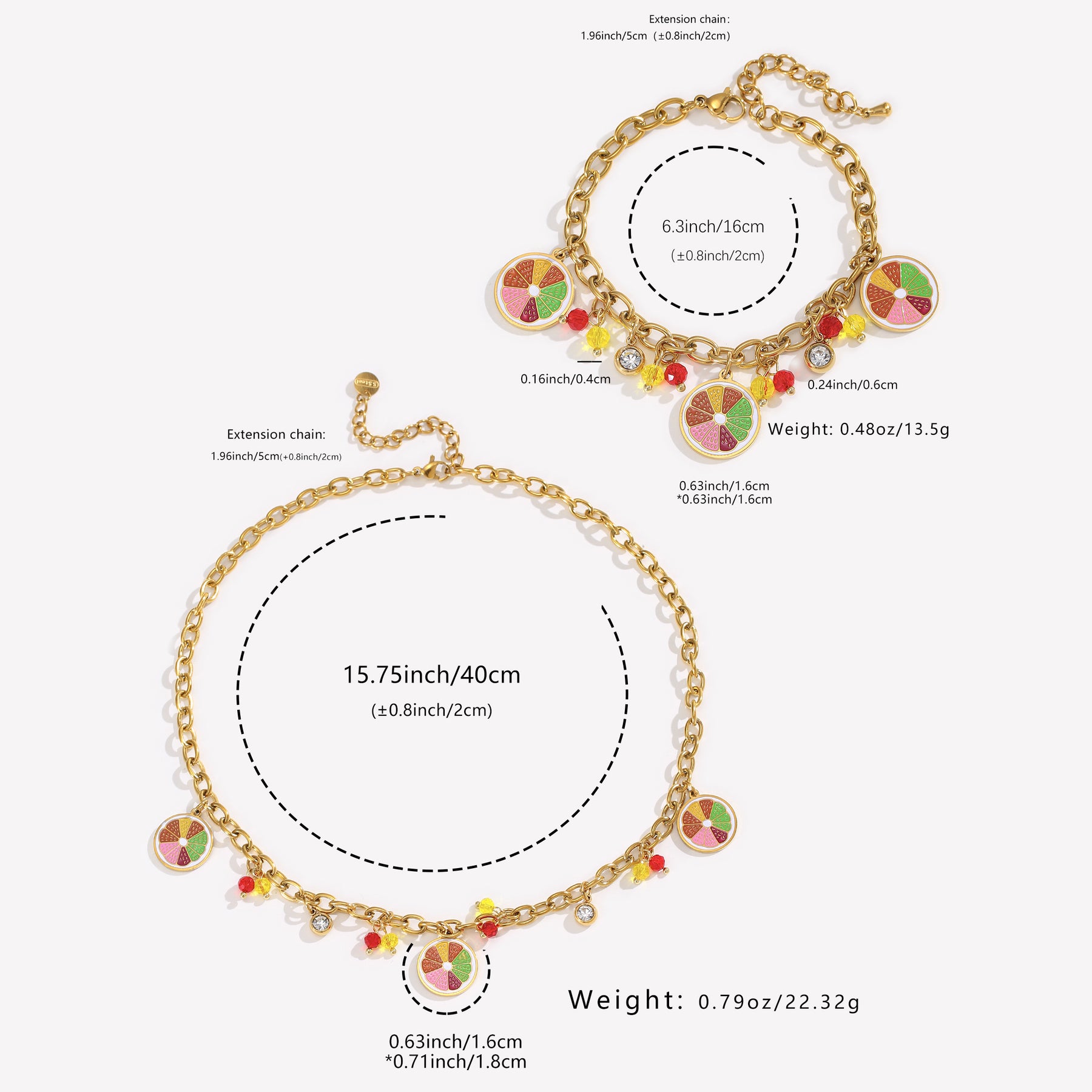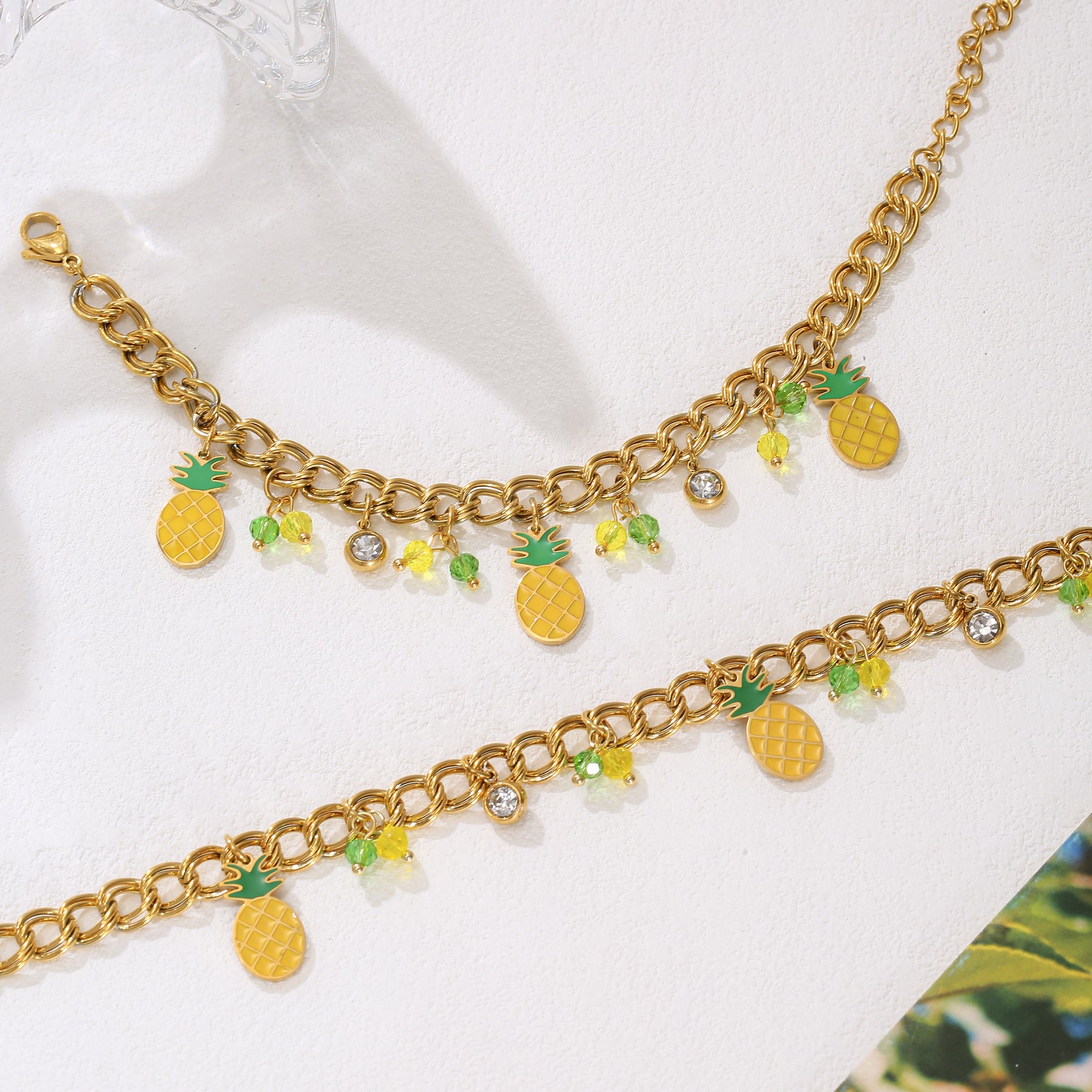 Fruit Pendant Stainless Steel Bracelet & Necklace Set for Women