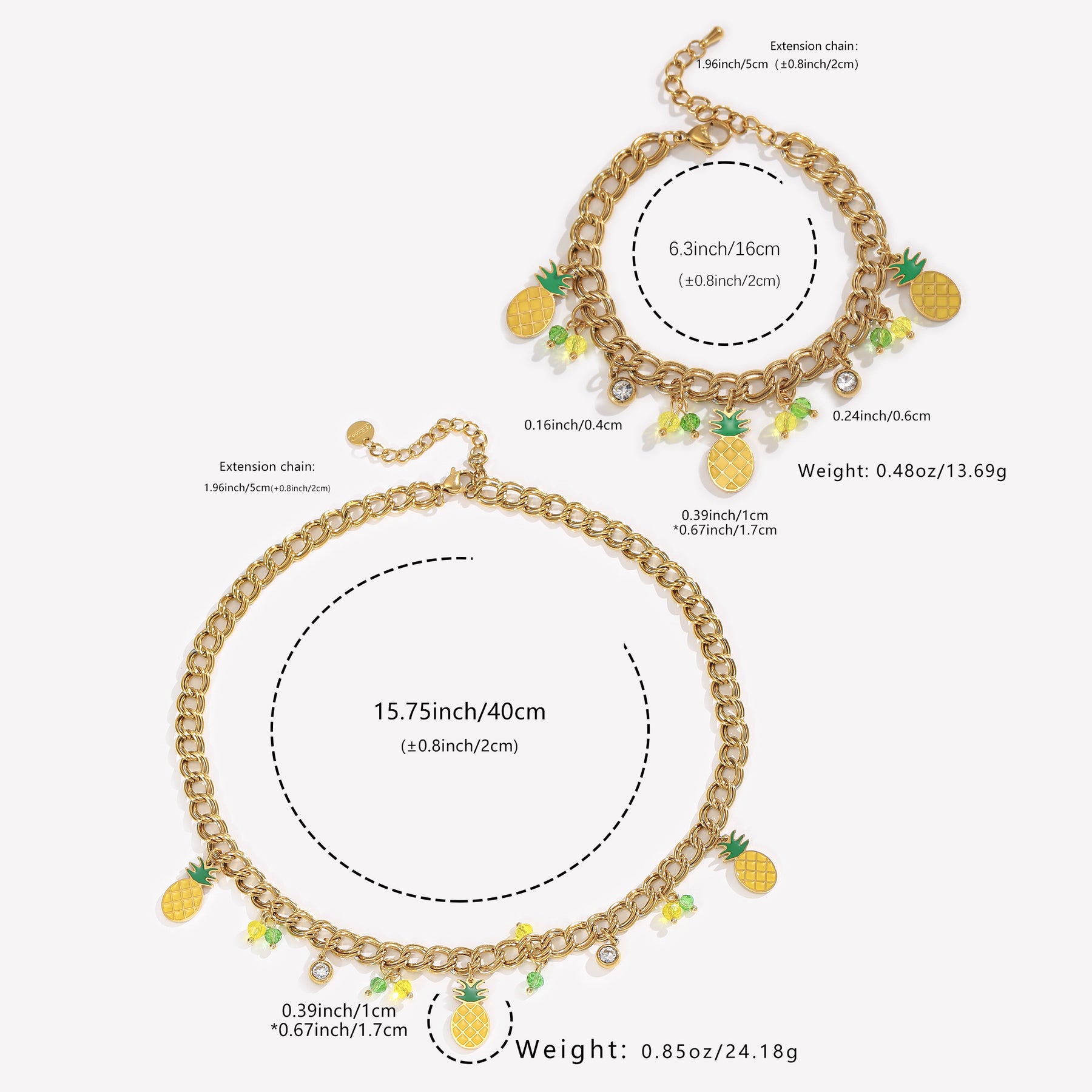 This 2-piece set includes a stylish bracelet and necklace with fruit pendant design. Made of stainless steel, these accessories are low allergy, suitable for dates and beach outings.
