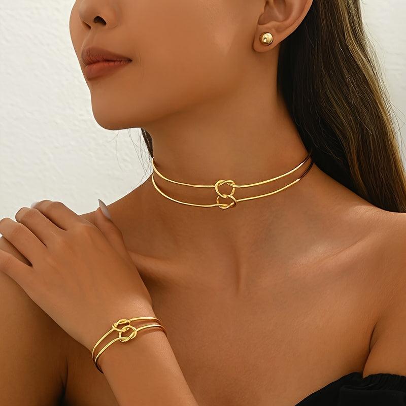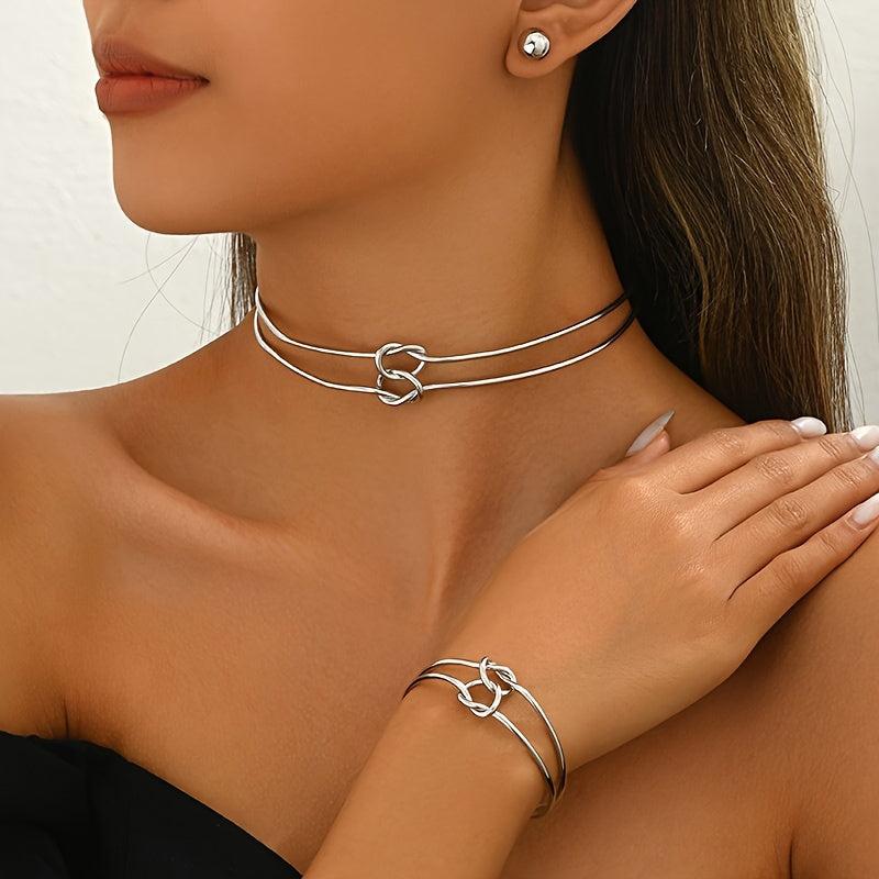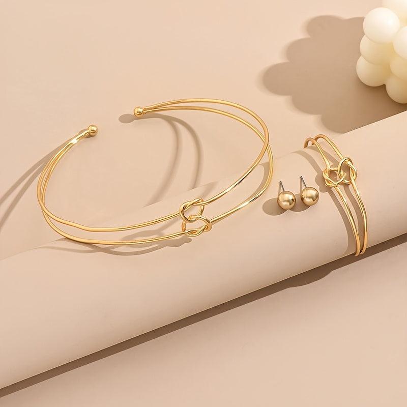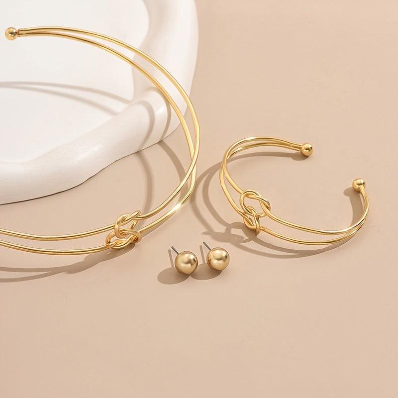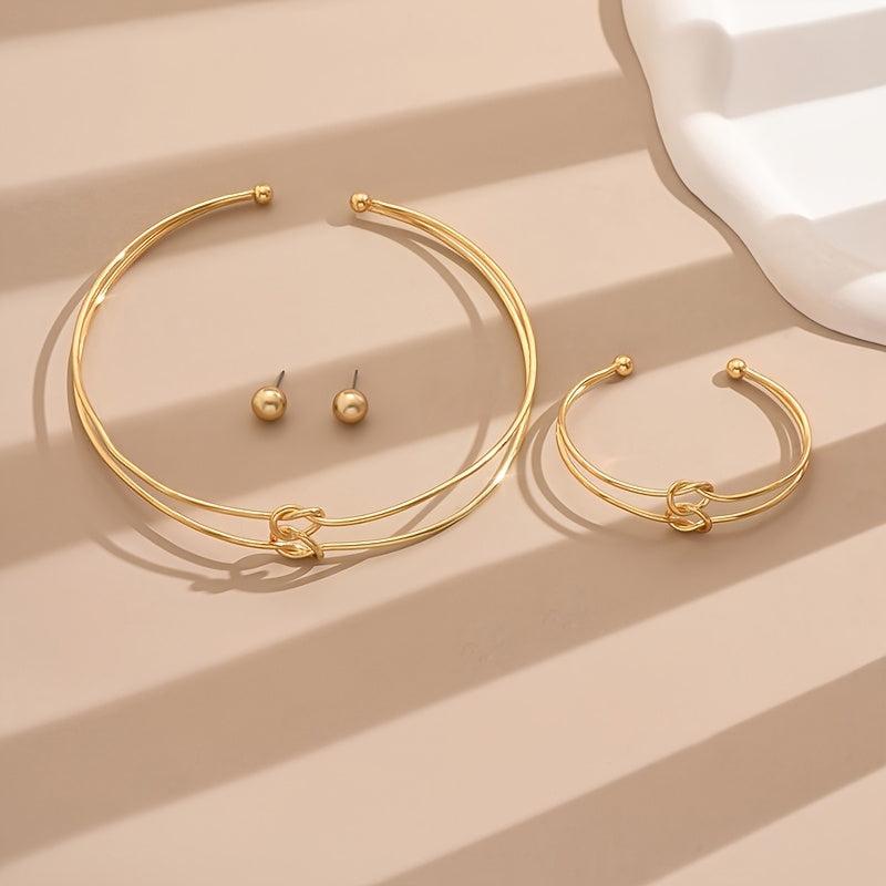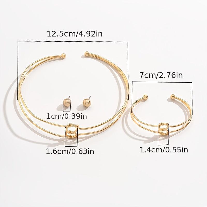 This stylish jewelry set includes earrings, bracelet, and necklace with a geometric design. Perfect for women who love modern accessories.