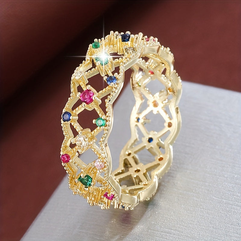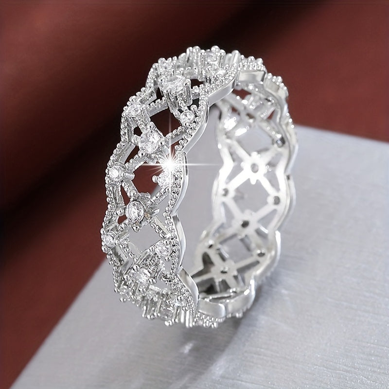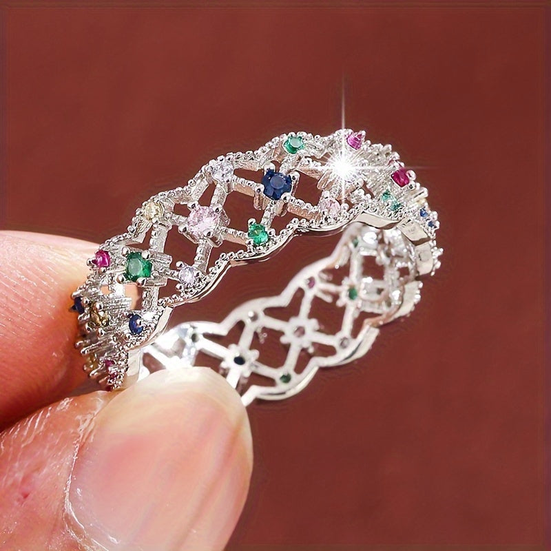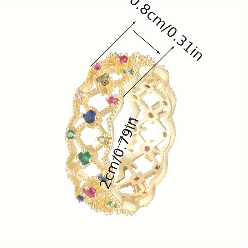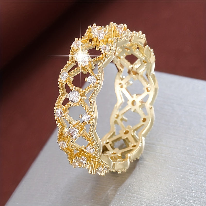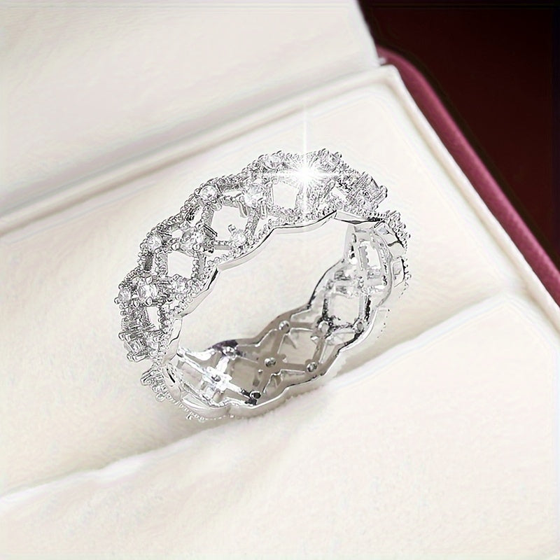 Elegant hollow geometric square ring with synthetic zirconium, perfect for women who love modern style jewelry.