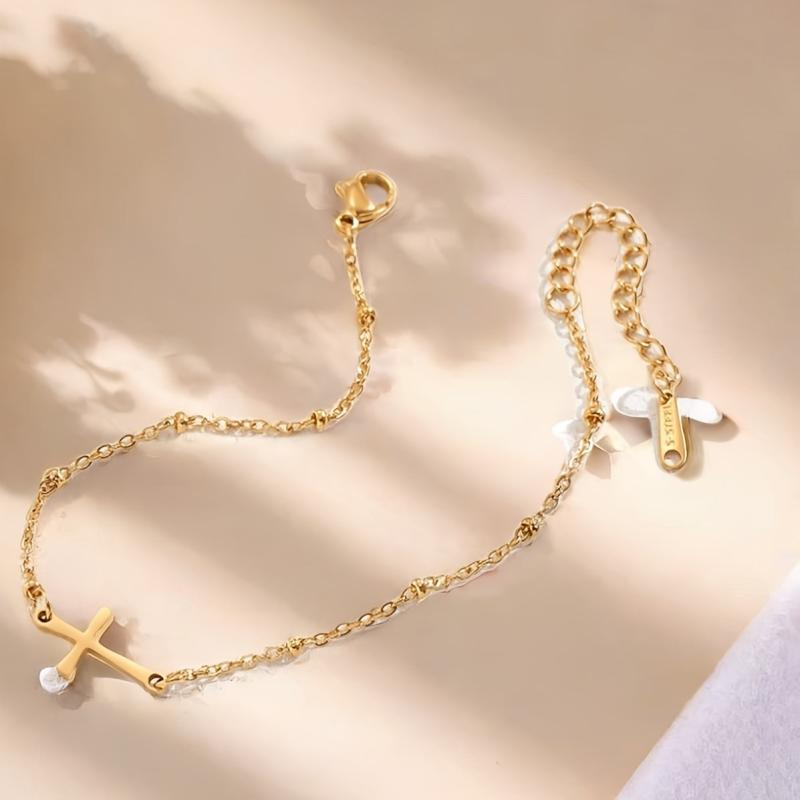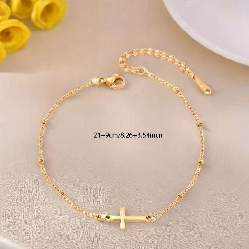 Golden Cross Charm Anklet for Women - Daily Wear & Beach Outings