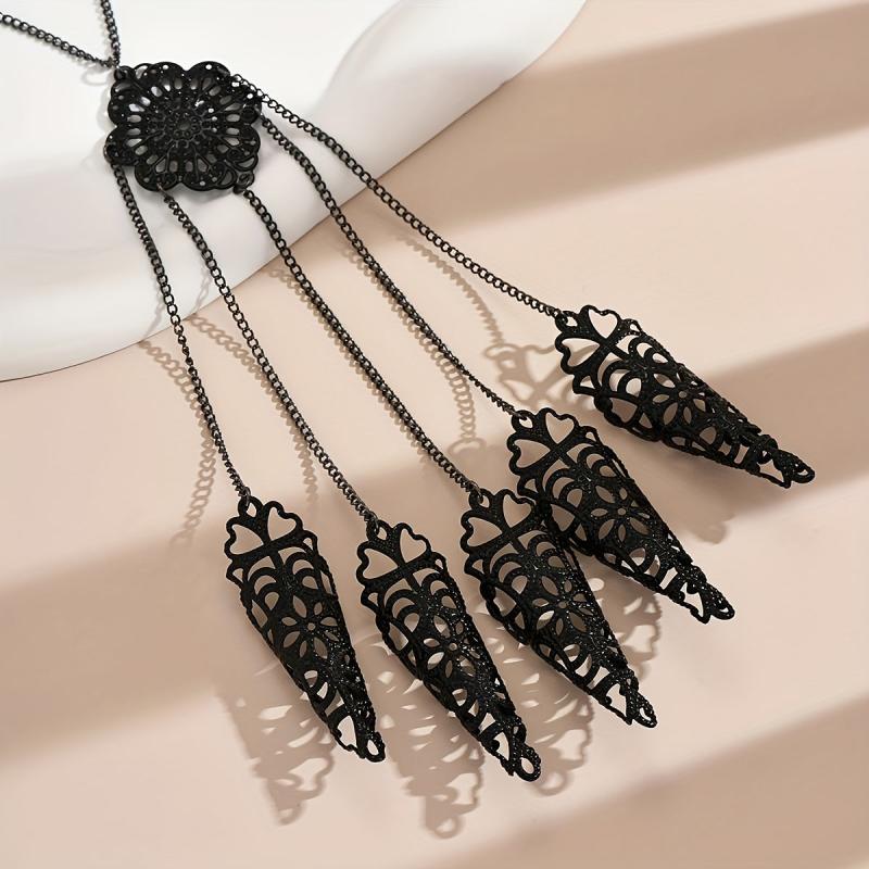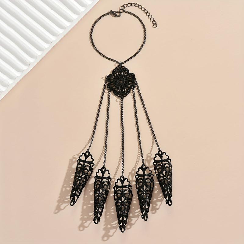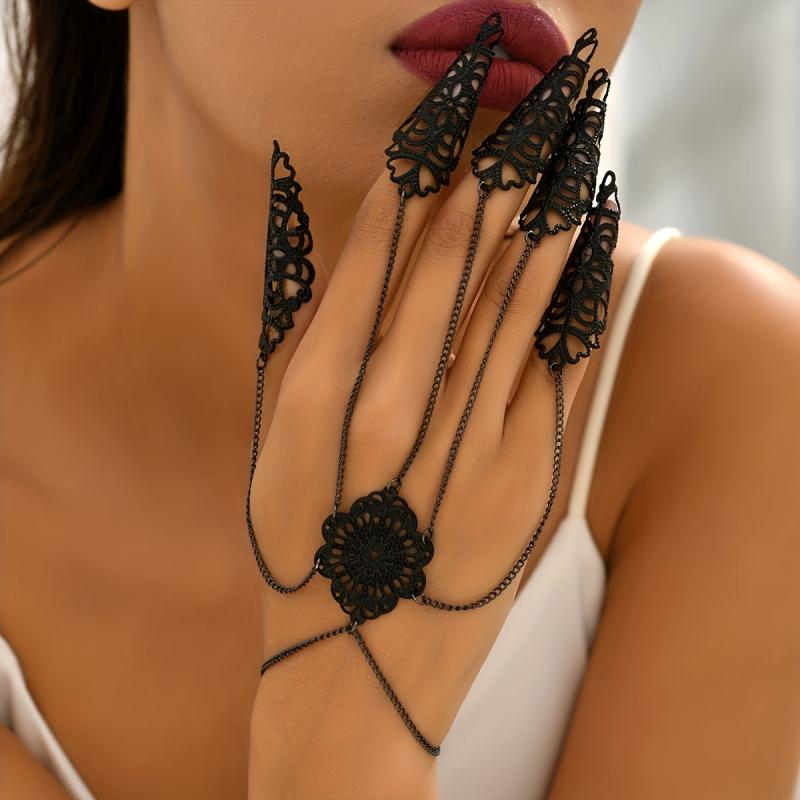 Embrace the charm and mystery of this Gothic style fingertip ring featuring hallow flower design. Perfect for Halloween decor.