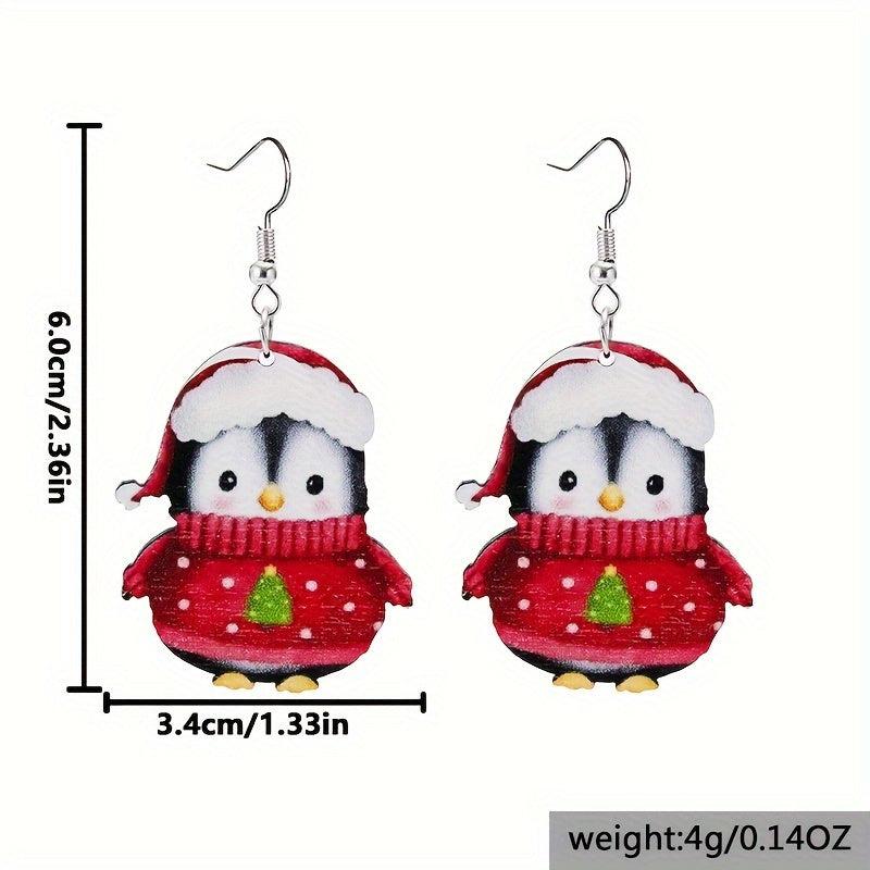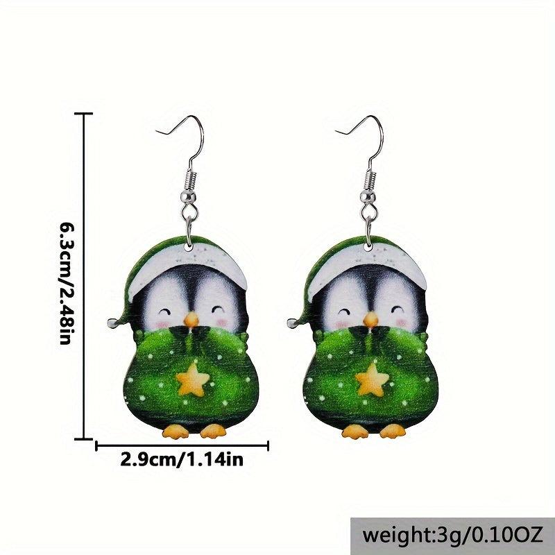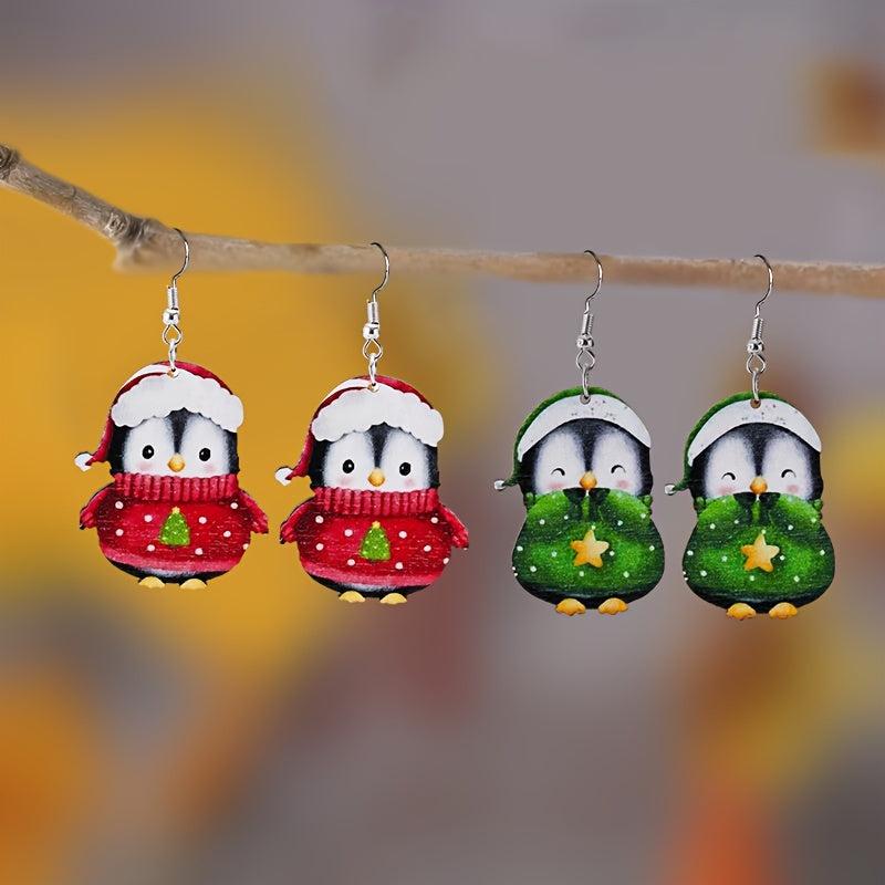 Add a touch of charm to your outfit with these adorable penguin dangle earrings. The set includes two pairs in green and red colors, perfect for any occasion.
