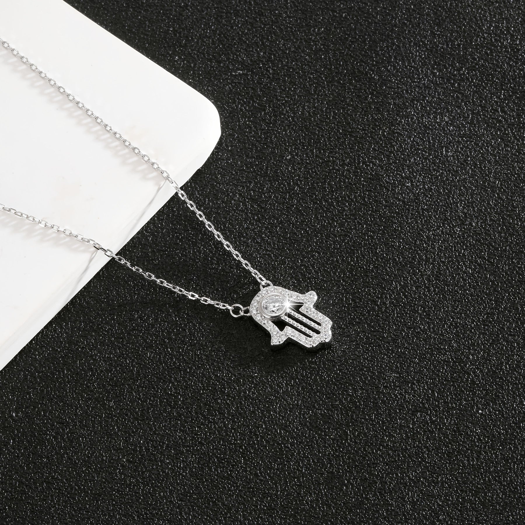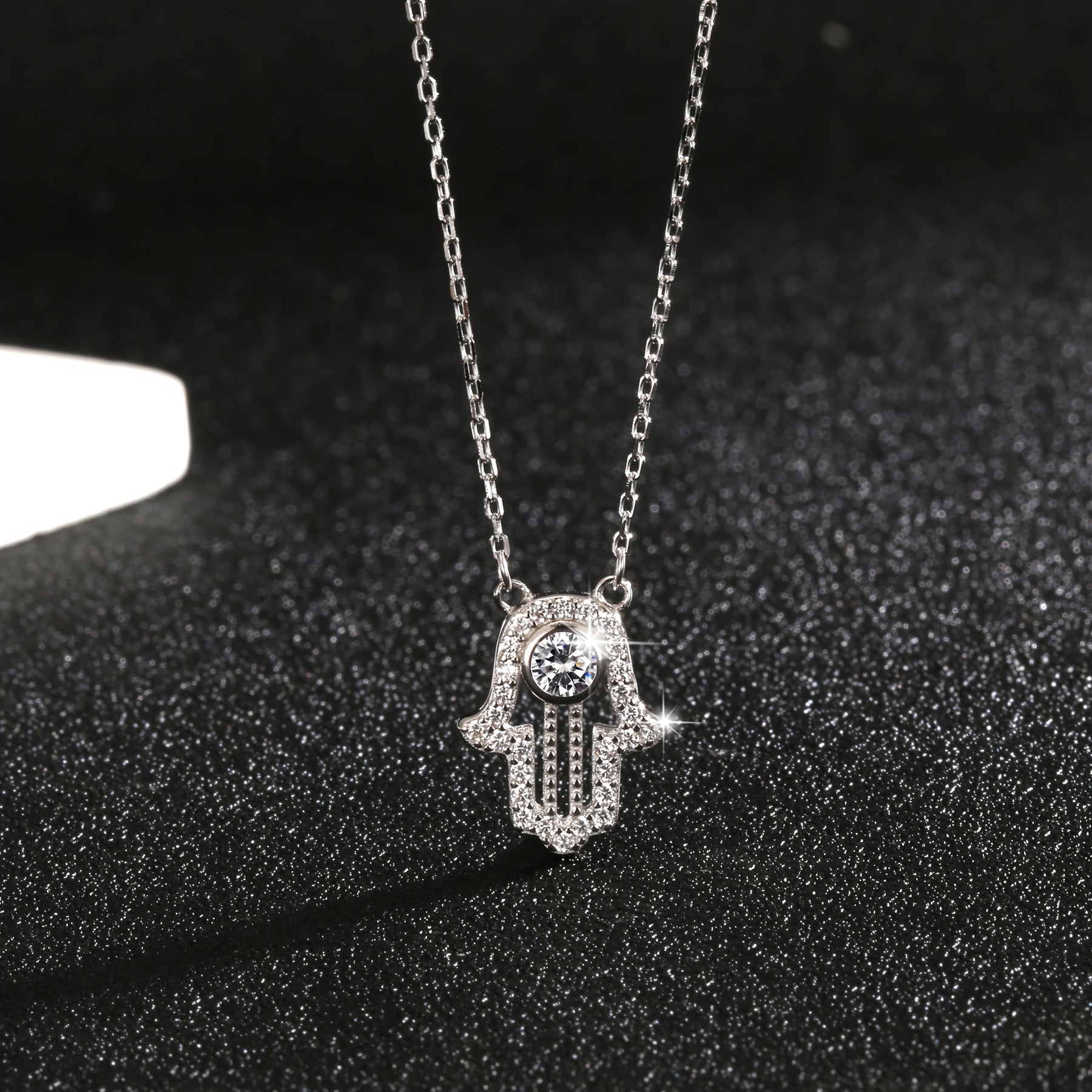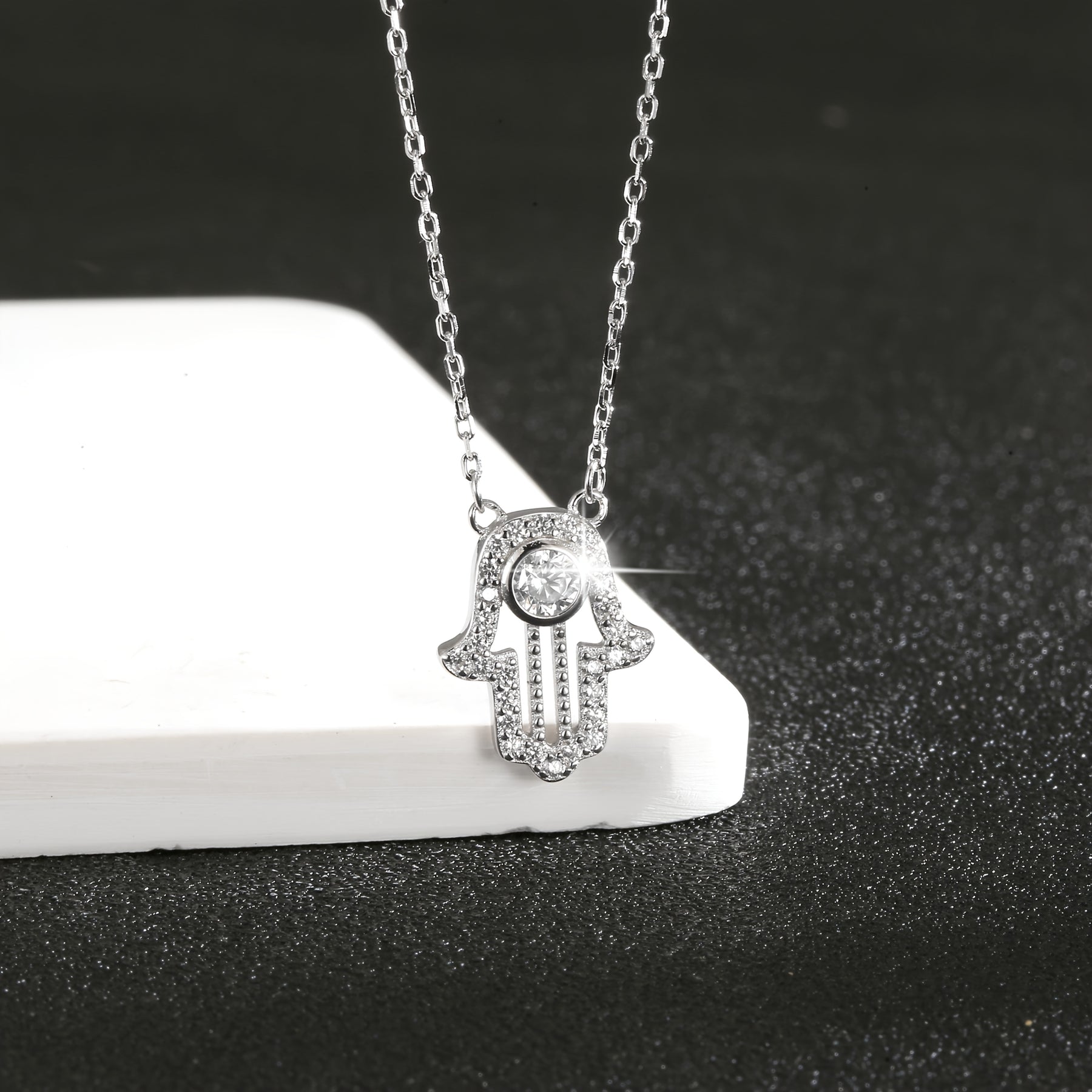 This necklace features a stunning Hamza Fatima hand pendant with Cubic Zirconia and synthetic Quartz beads. Crafted in S925 Sterling Silver, this jewelry piece makes for a thoughtful gift.