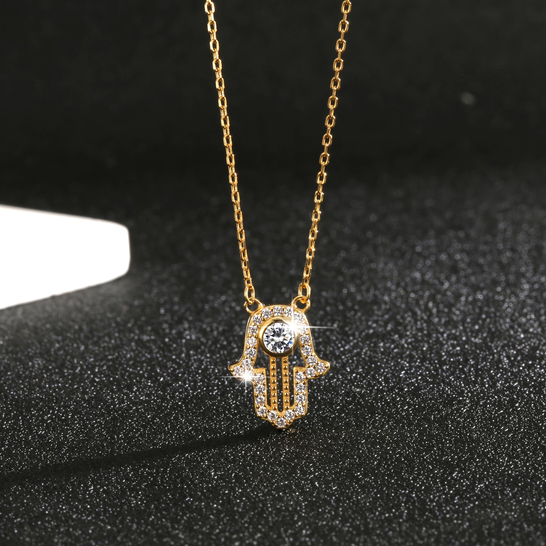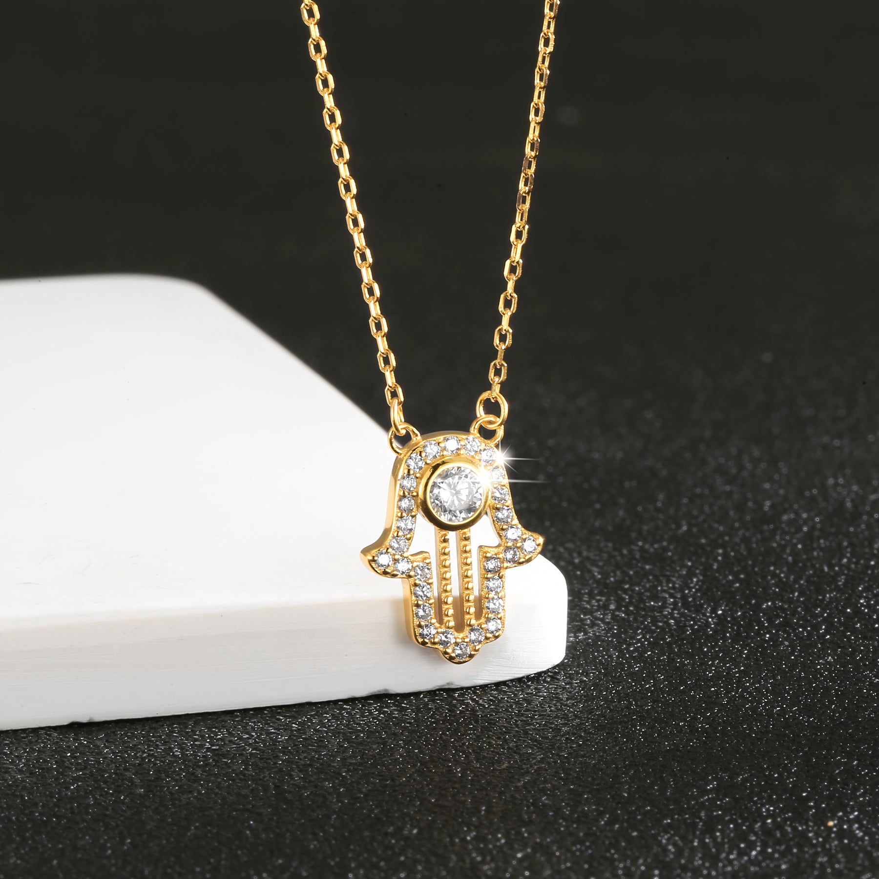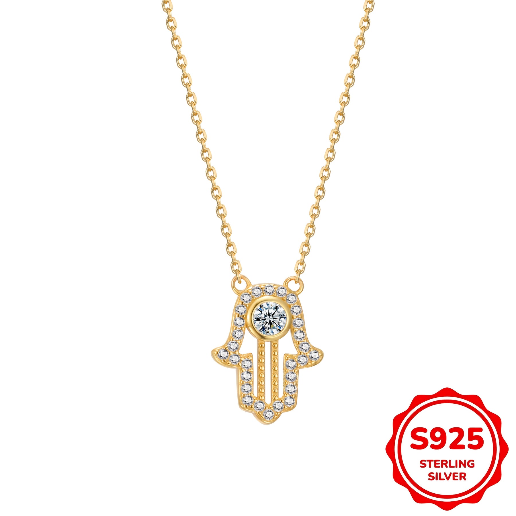 This necklace features a stunning Hamza Fatima hand pendant with Cubic Zirconia and synthetic Quartz beads. Crafted in S925 Sterling Silver, this jewelry piece makes for a thoughtful gift.