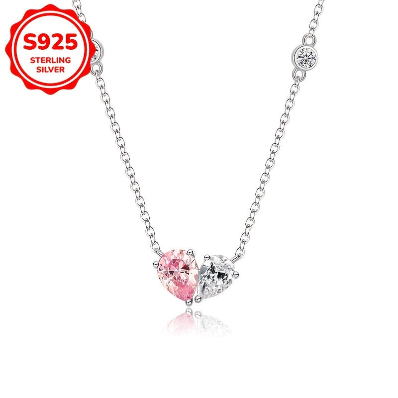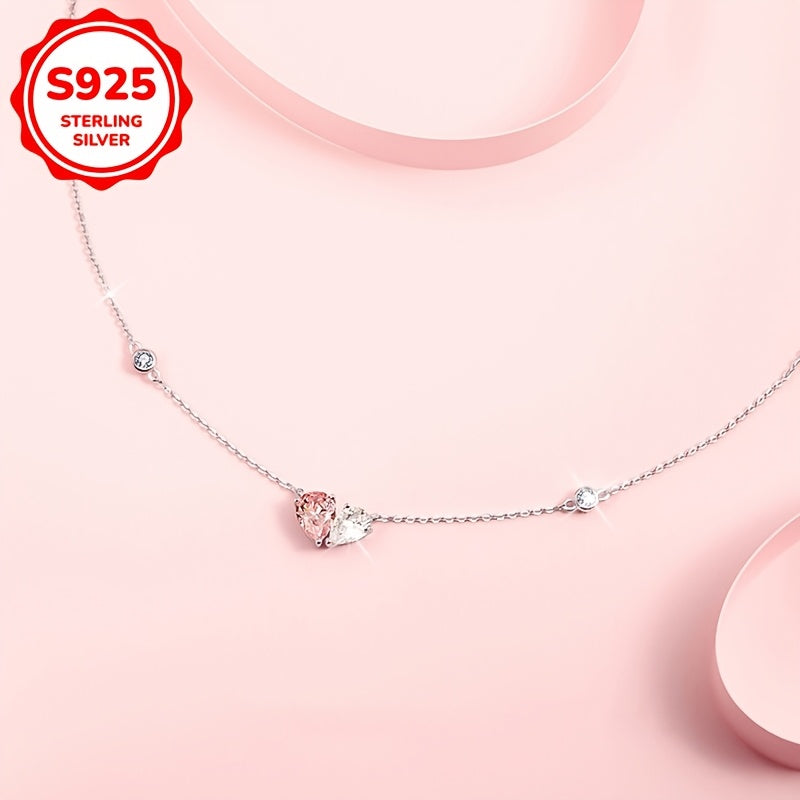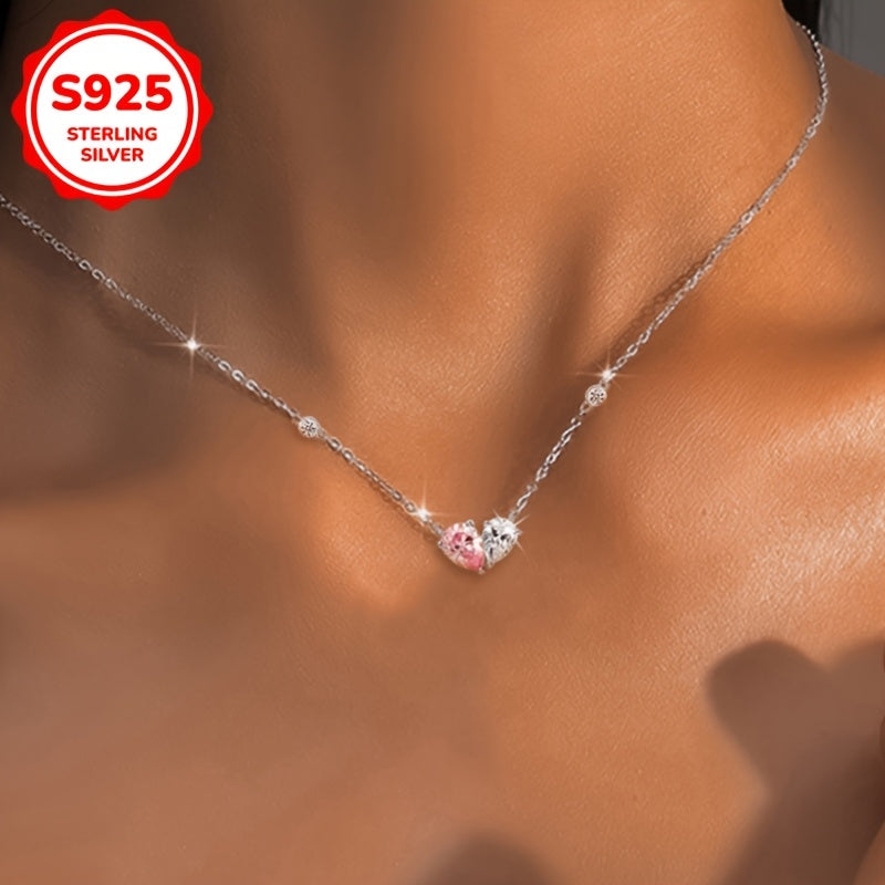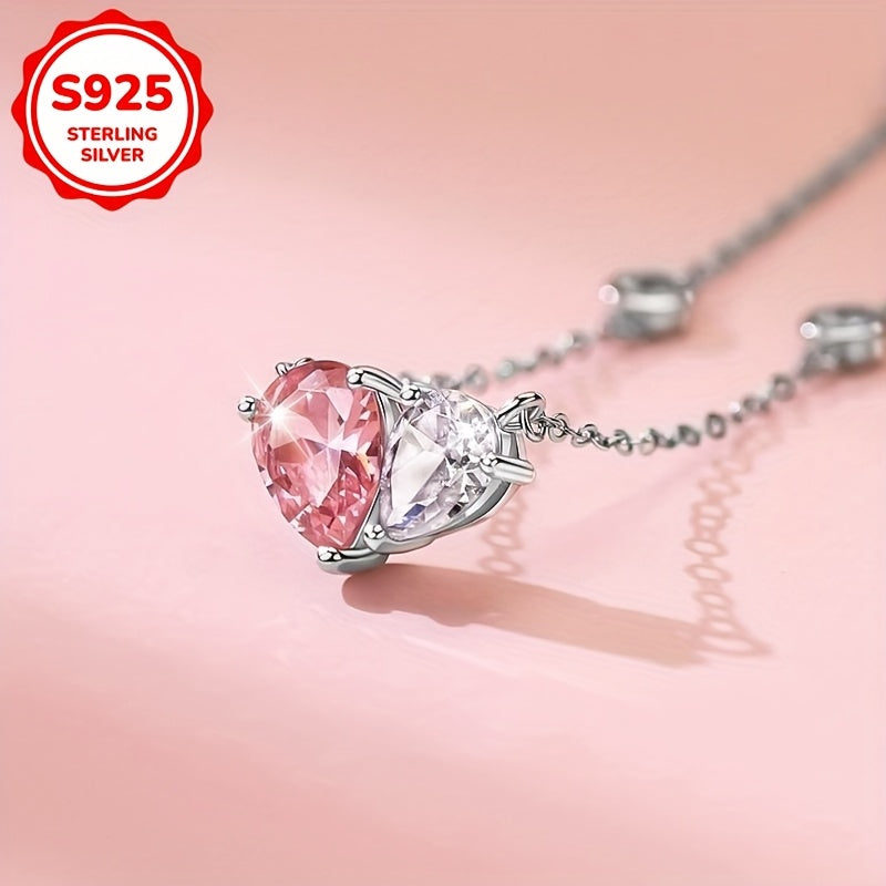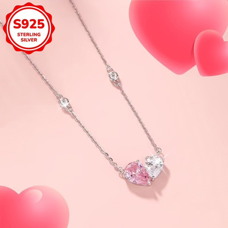 This stunning pendant necklace features a heart-shaped design with synthetic zirconia stones in 925 silver. It weighs 2.5g and is a perfect accessory for any outfit.