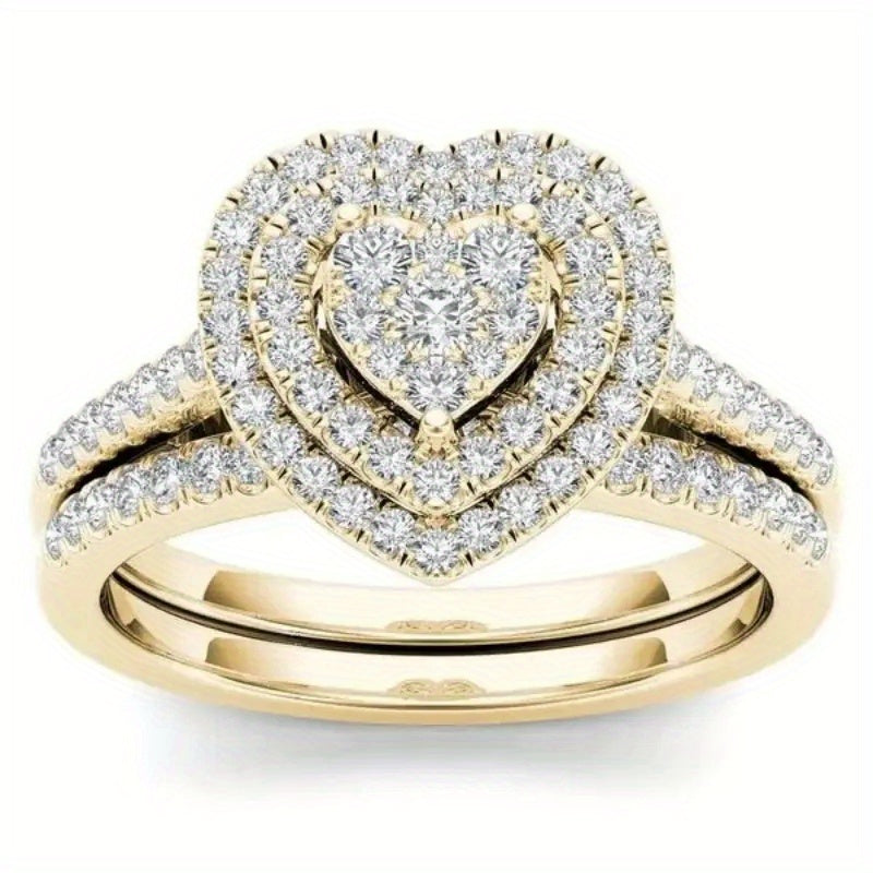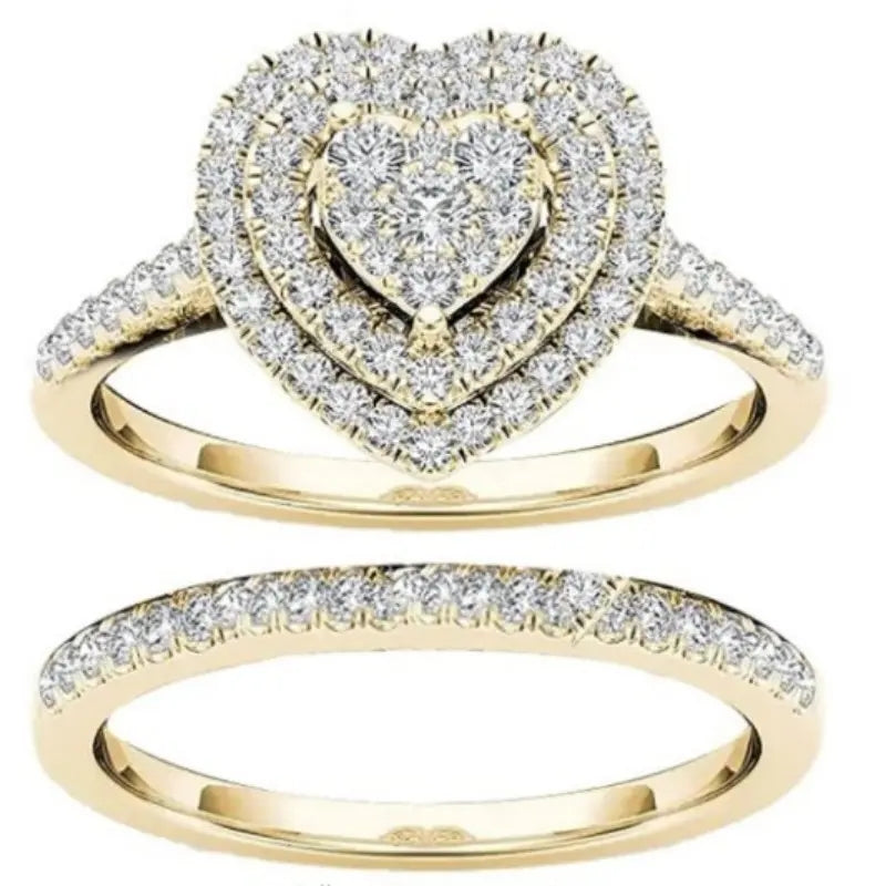 This elegant 2-piece ring set is made of synthetic zirconia stones set in copper with a golden plated finish. Perfect for Valentine's Day, engagement, wedding, or as a gift for someone born in April.