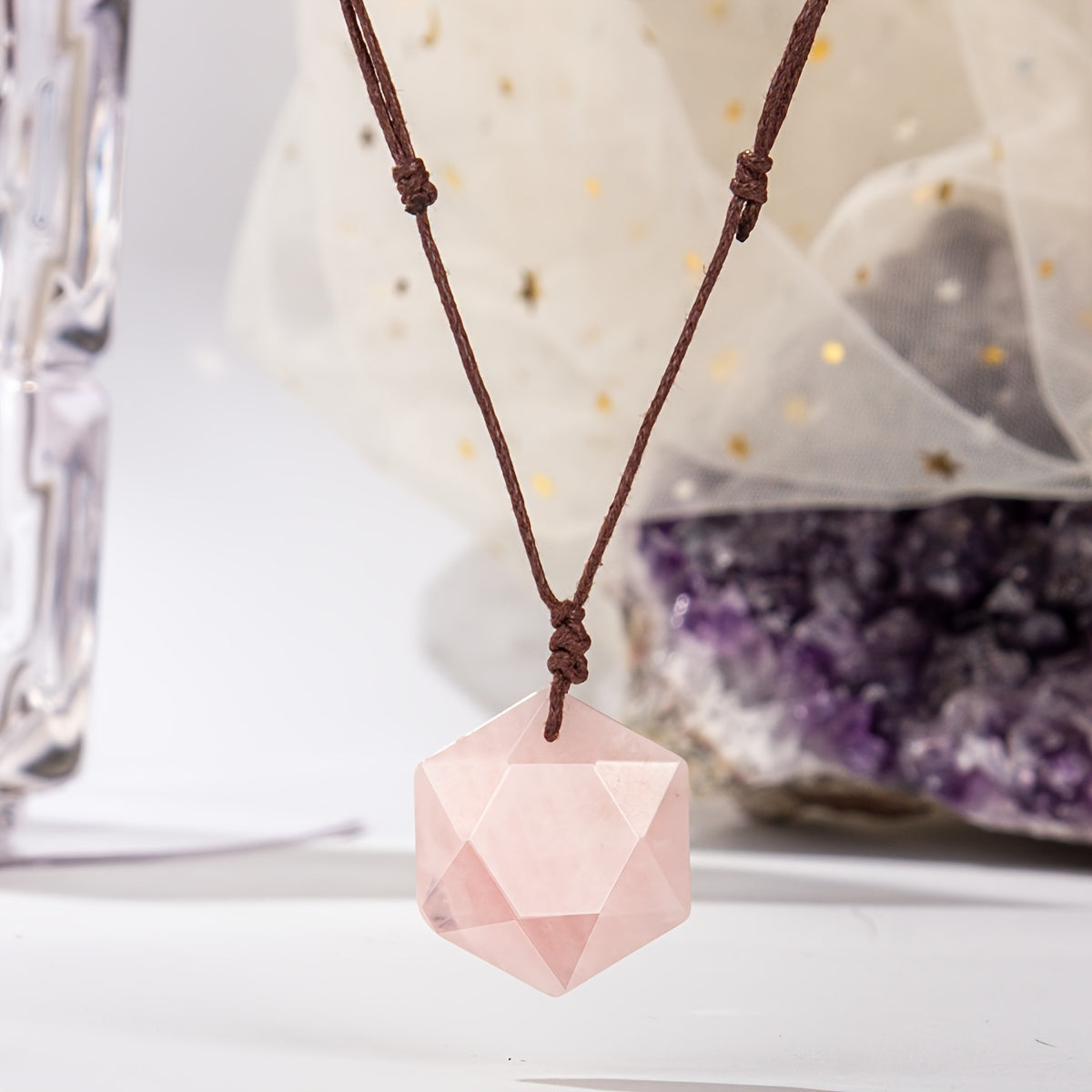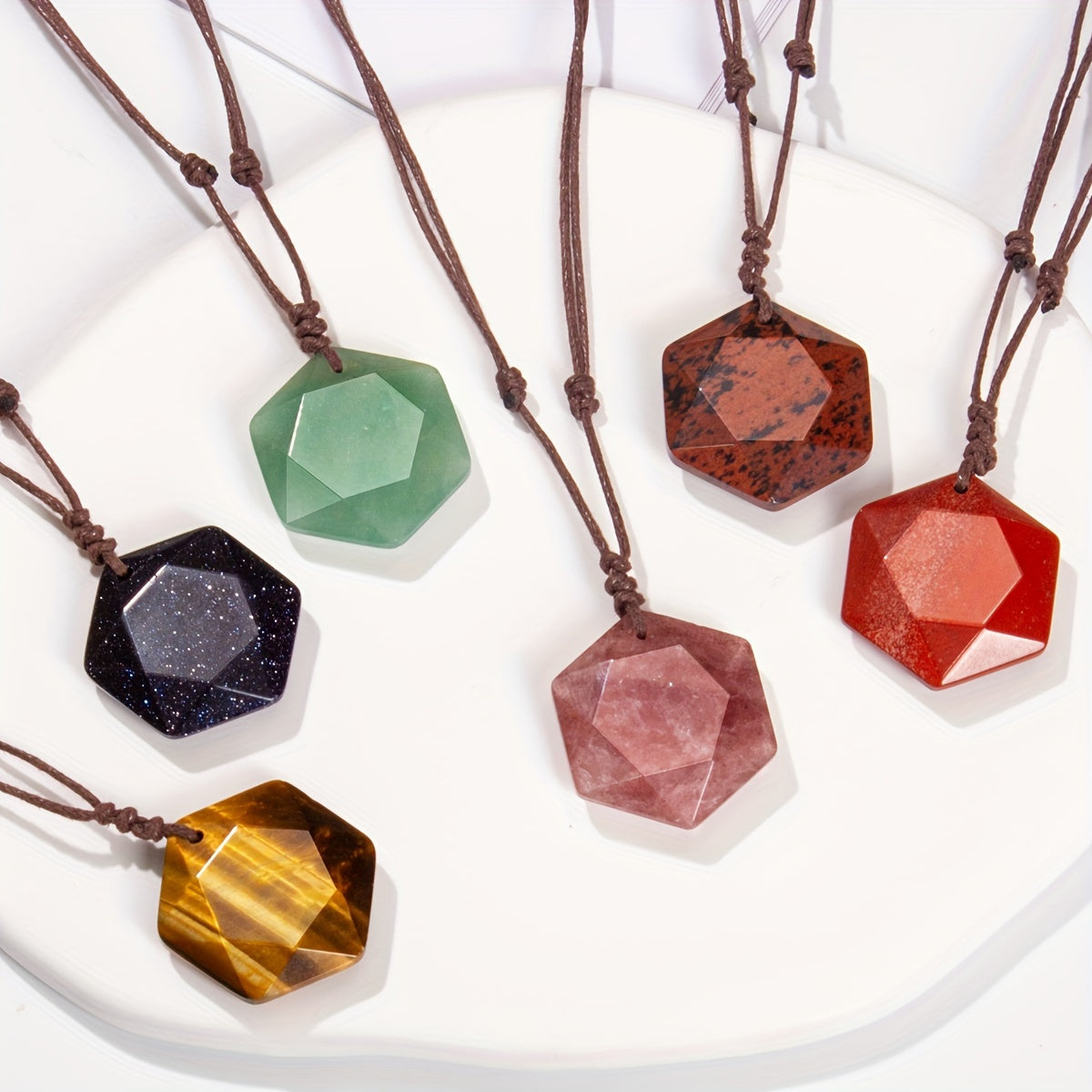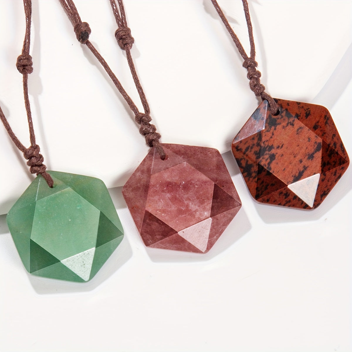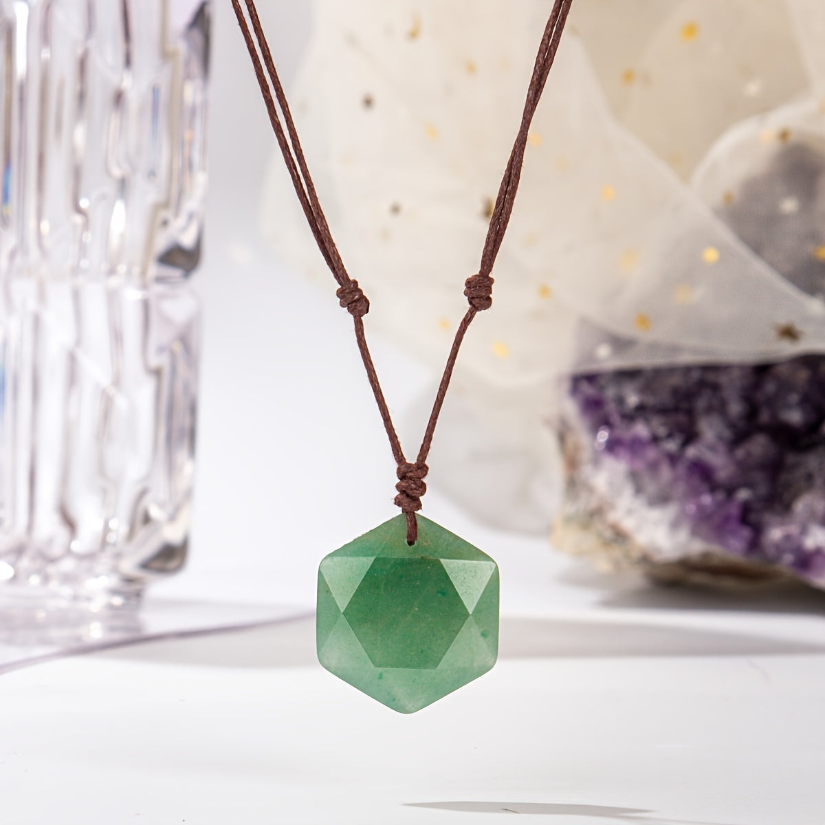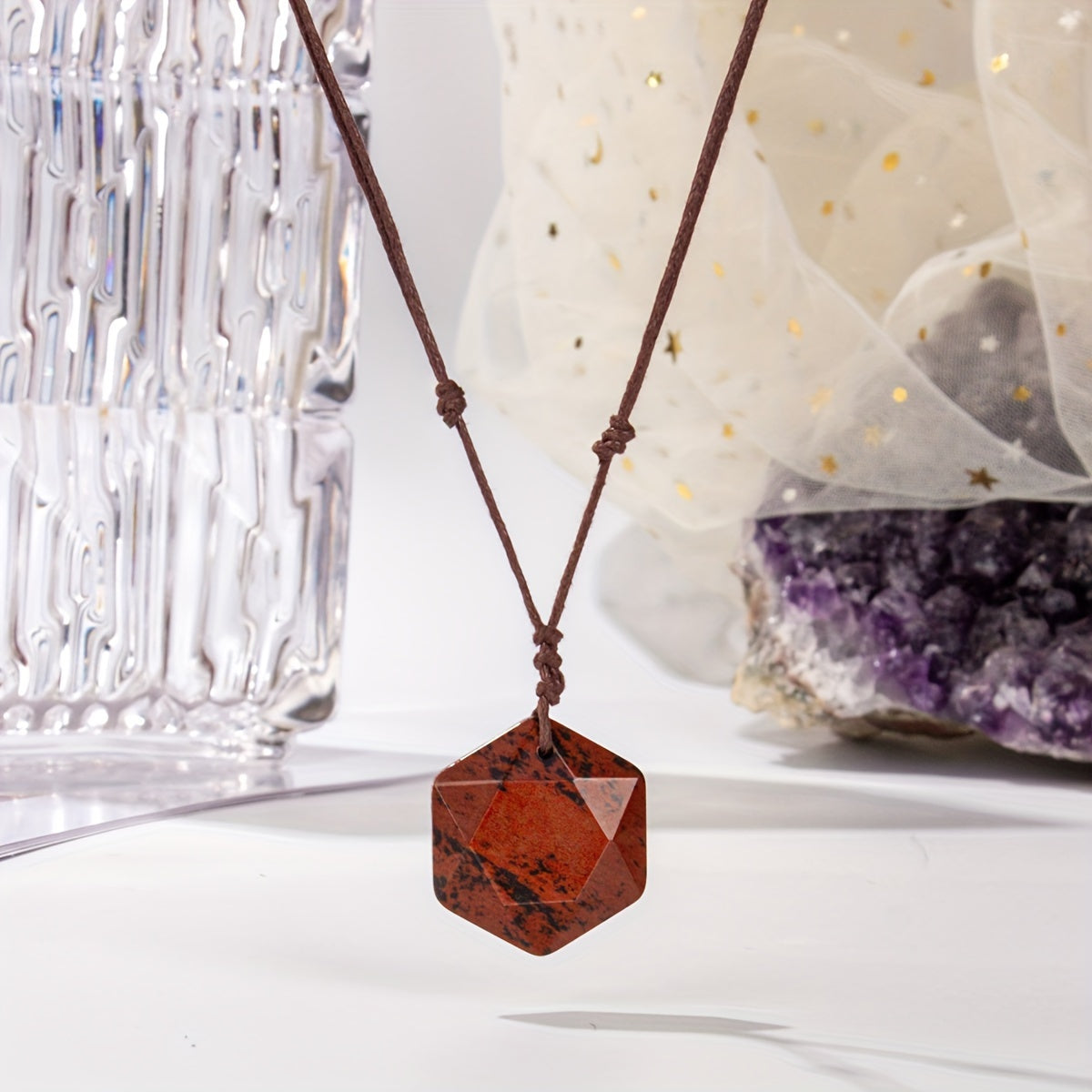 This natural stone hexagram star pendant necklace is handwoven and adjustable, making it perfect for women. Ideal bohemian jewelry for holiday parties or as a gift.