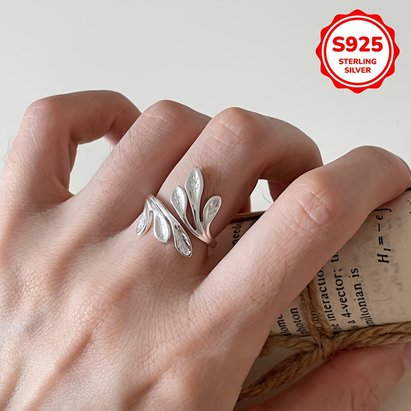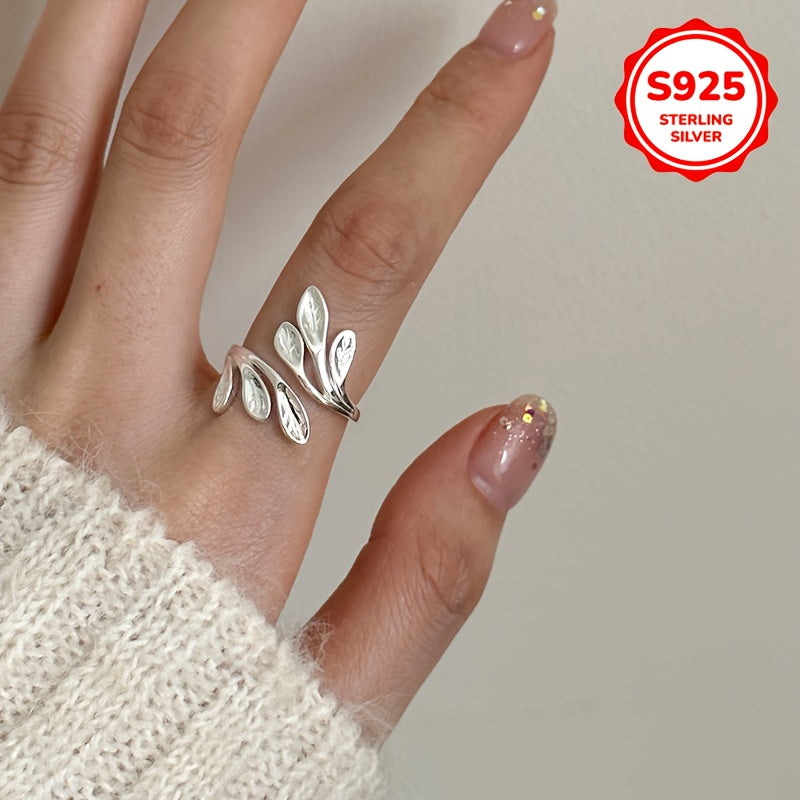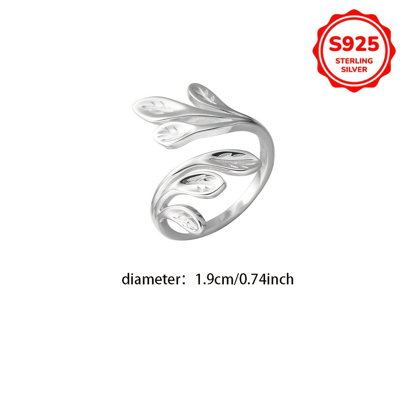 Hypoallergenic Flower Branch Leaf Olive Leaf Open Ring Adjustable