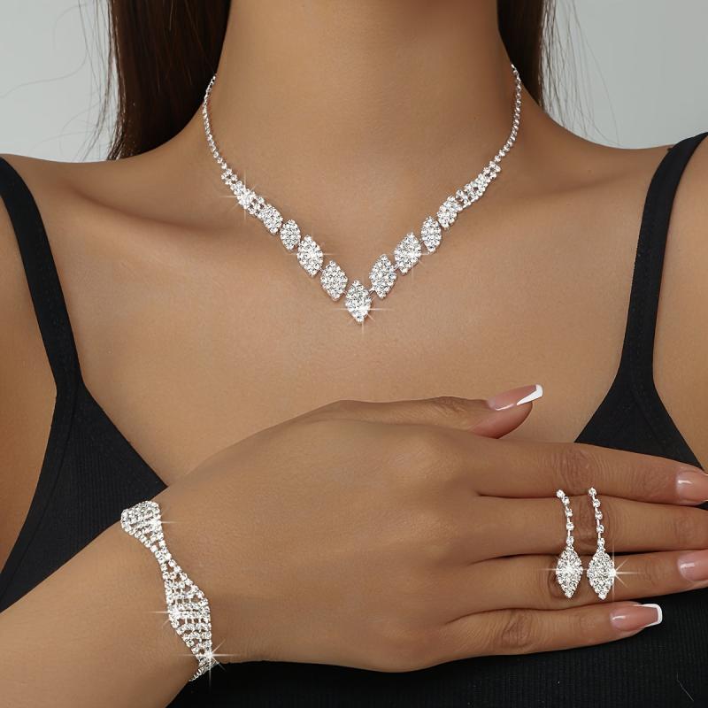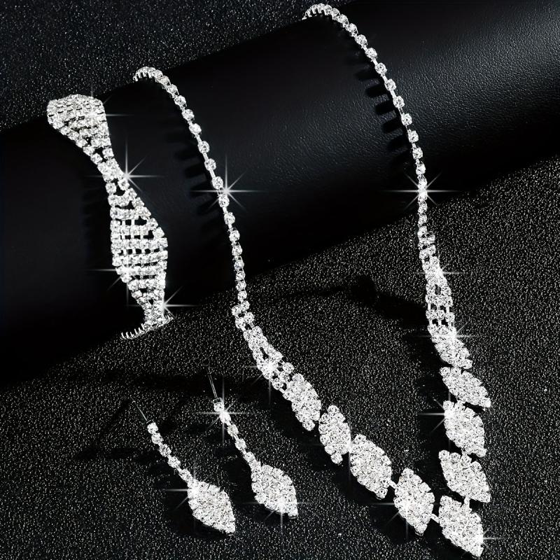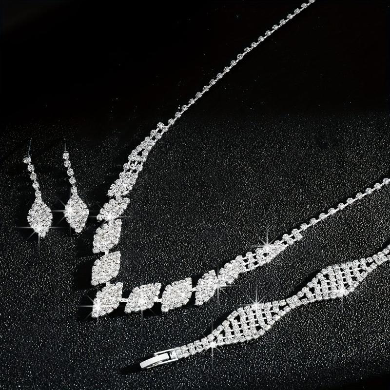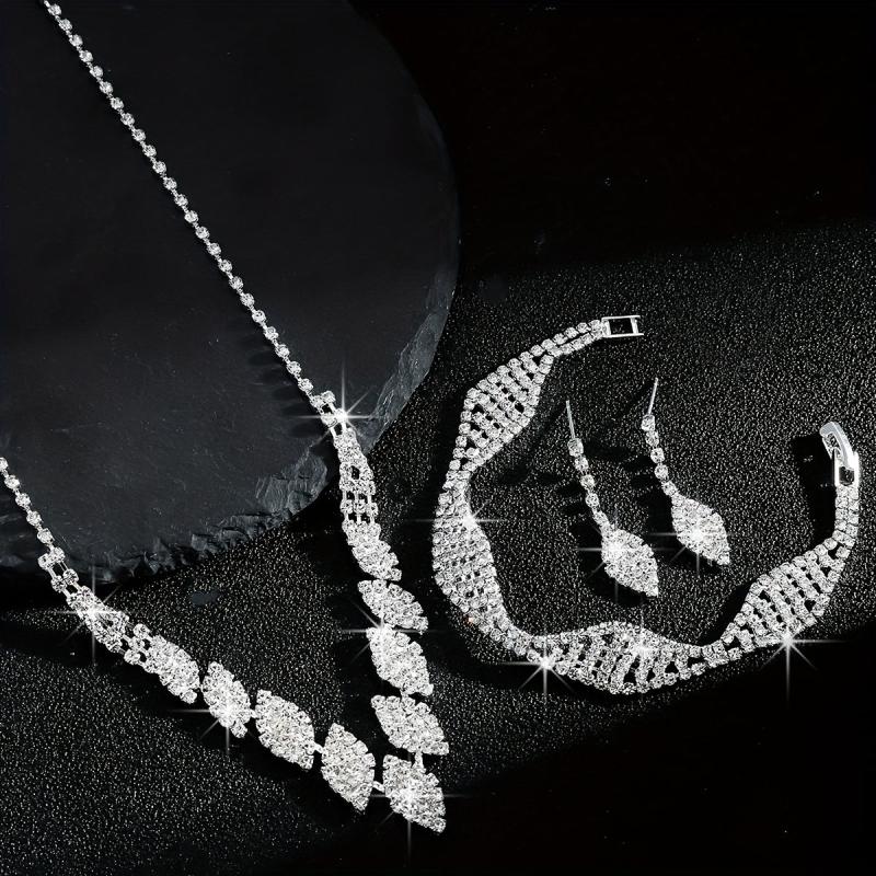 Complete your look with this stunning jewelry set featuring a leaf necklace, bracelet, and earrings. Perfect for formal events such as banquets and parties.
