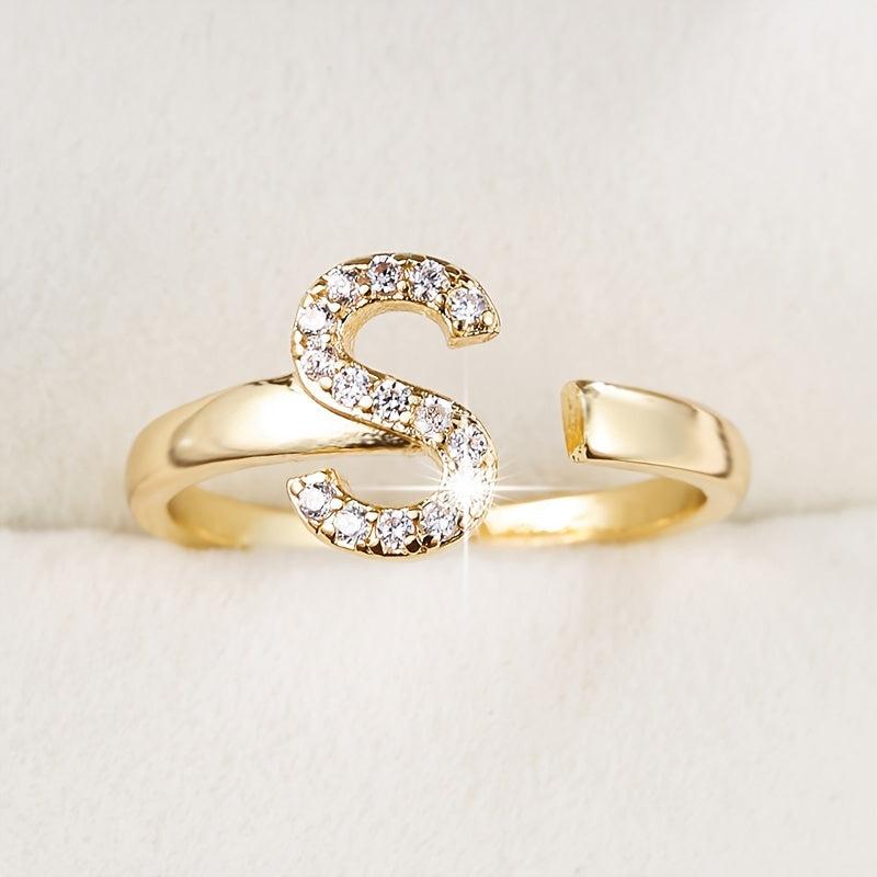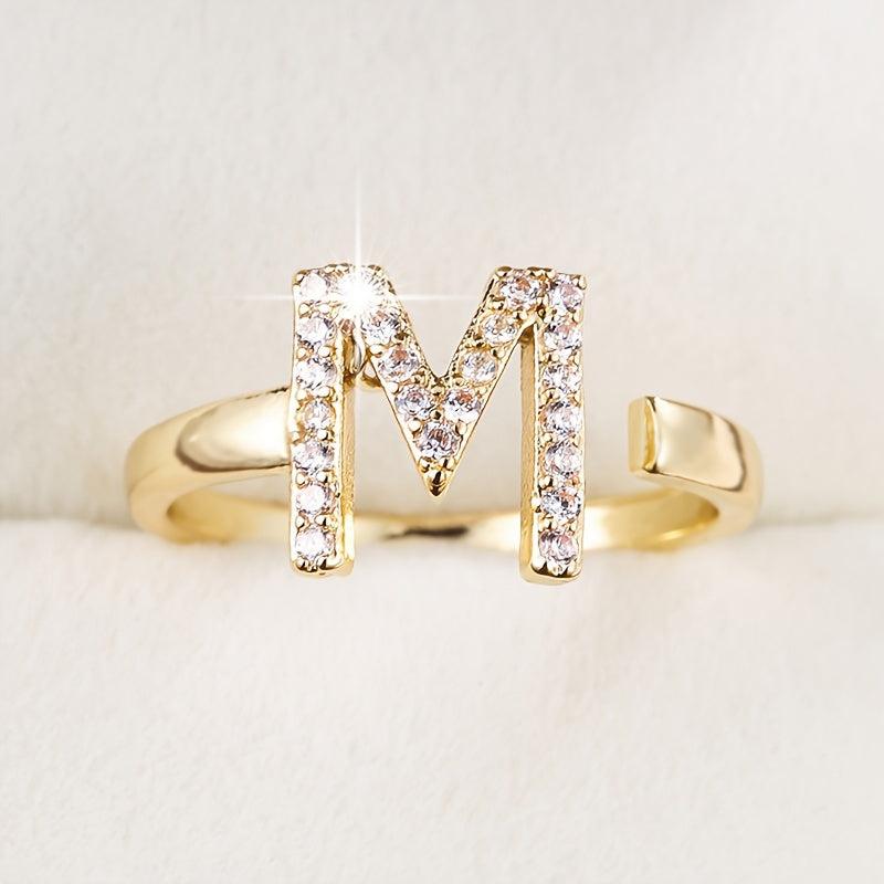 This elegant ring features synthetic zirconia stones set in a stunning letter design. Perfect for adding a touch of luxury to any outfit.