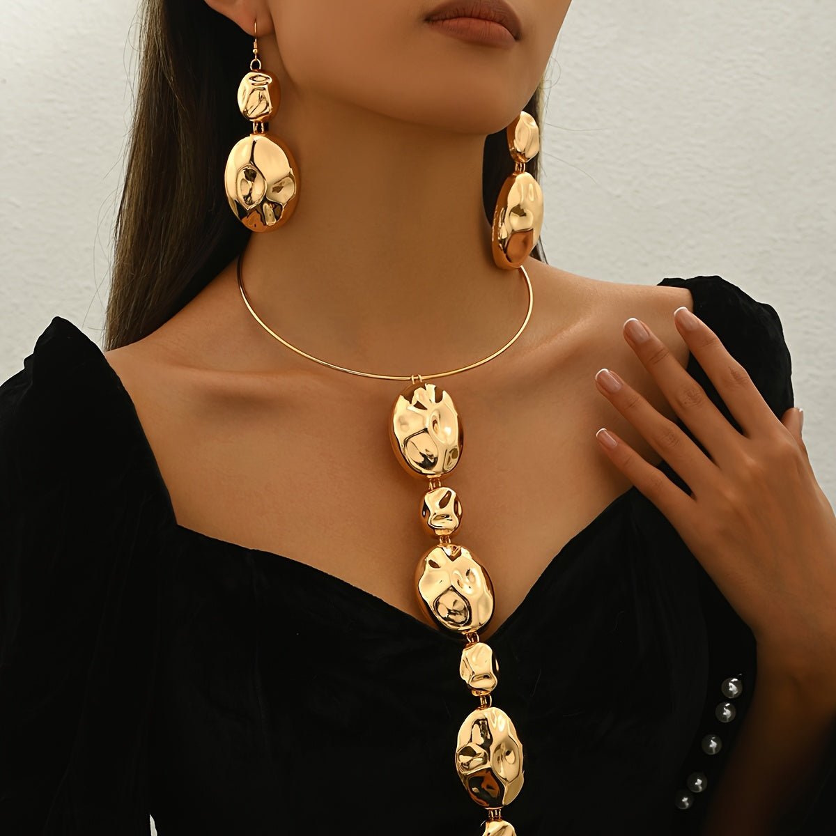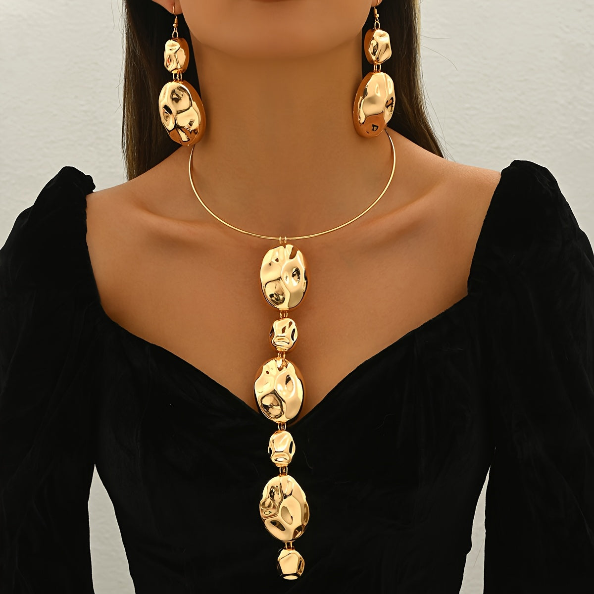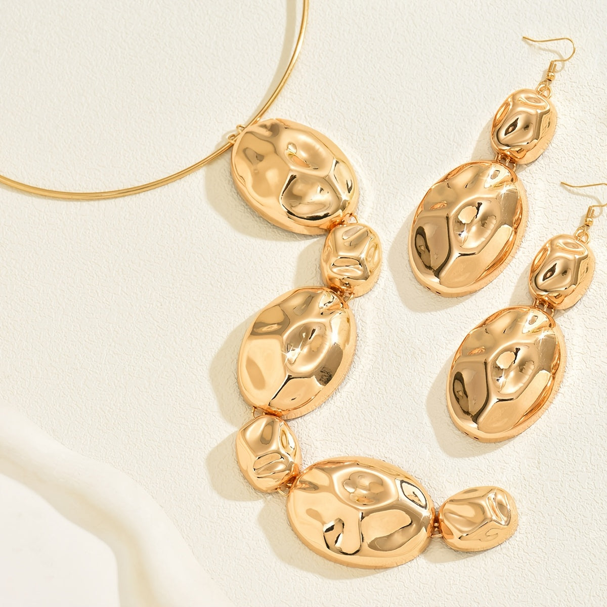 Metal Drum Surface Chisel Pit Collar Earrings Set - Daily & Banquet Wear