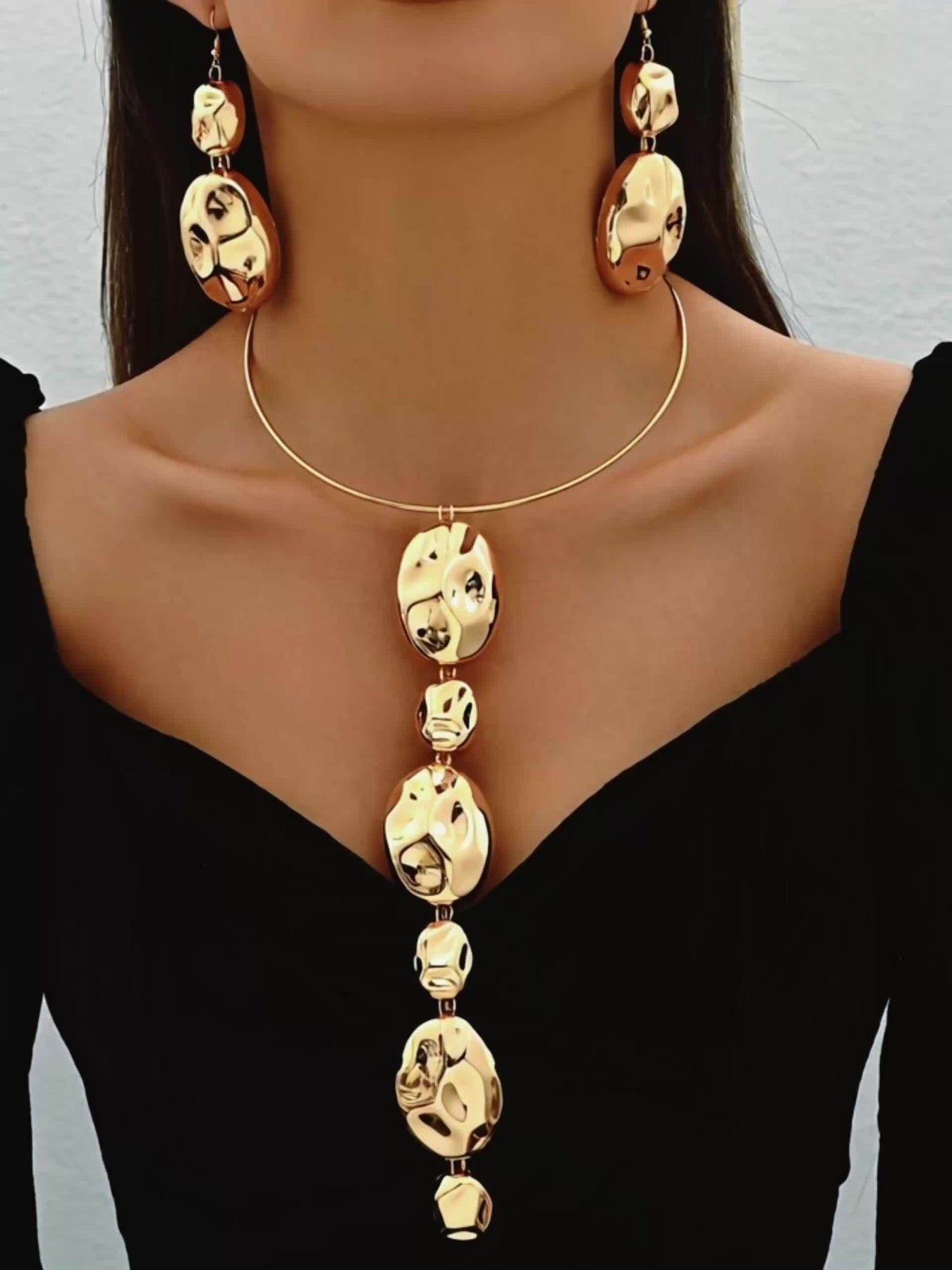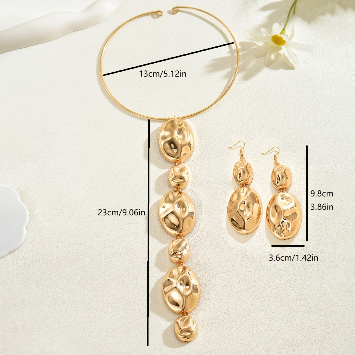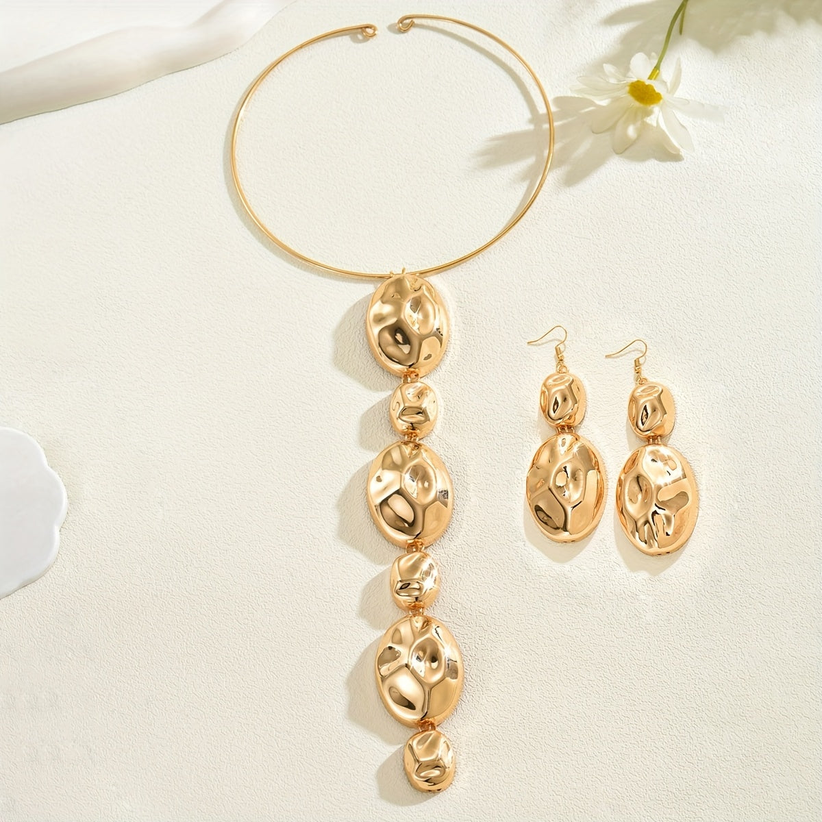 Metal Drum Surface Chisel Pit Collar Earrings Set - Daily & Banquet Wear