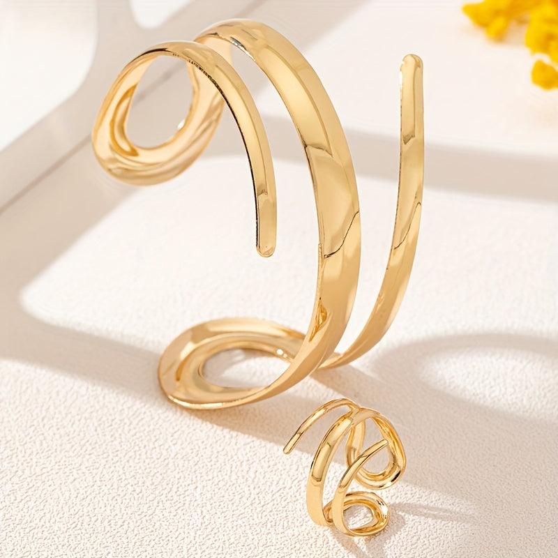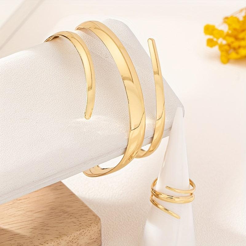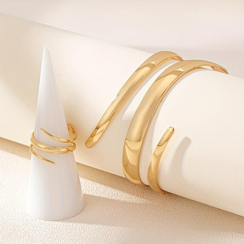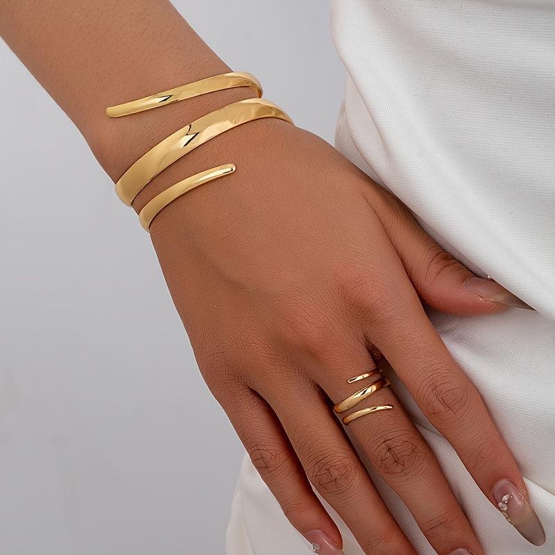 Minimalist Layer Openwork Bracelet and Ring Set for Women