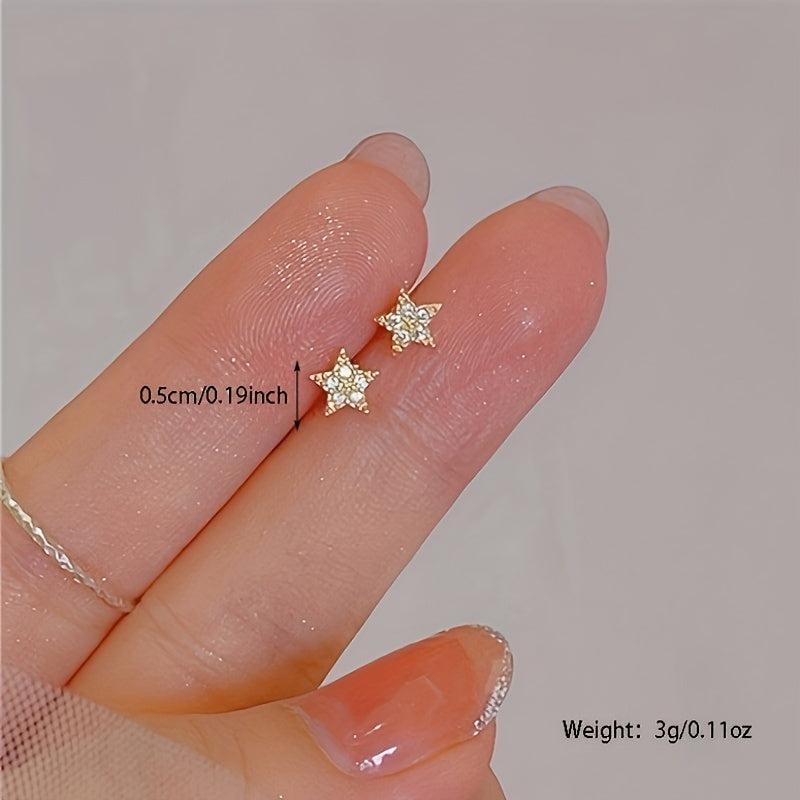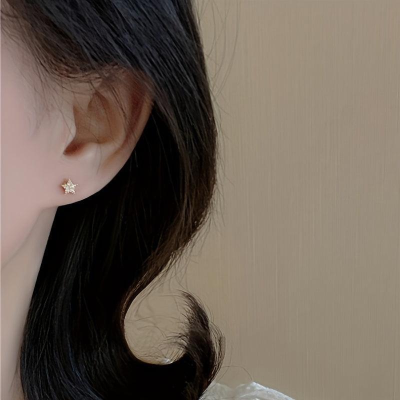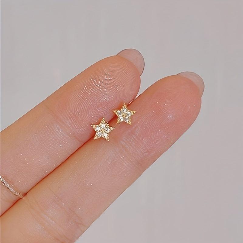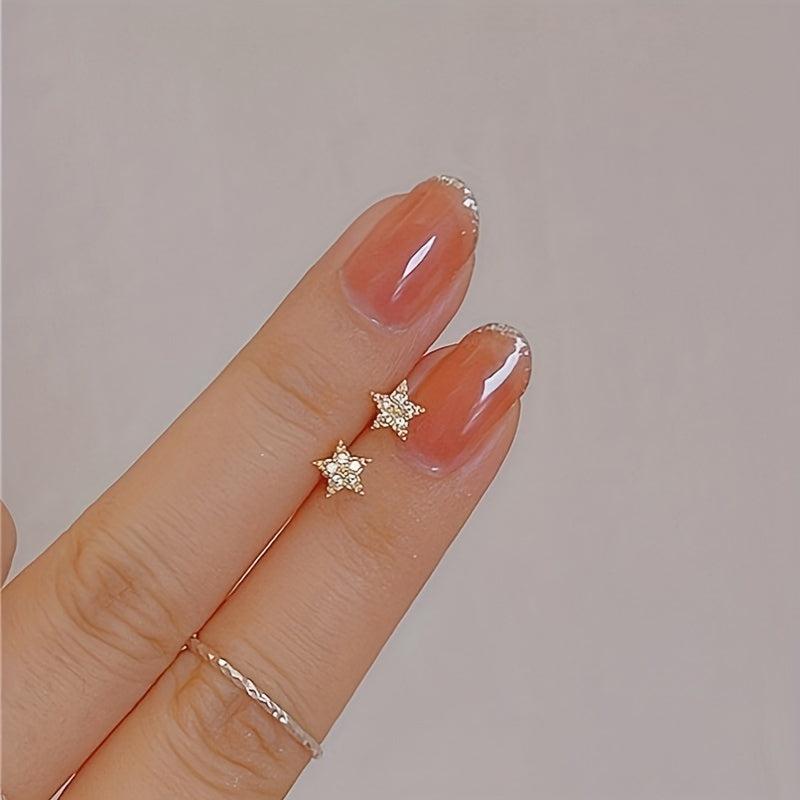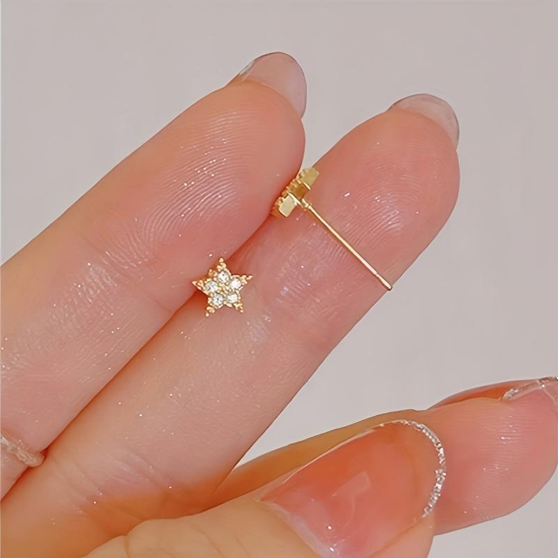 Minimalist Star Inlaid Zirconia Studs - Women's Earrings