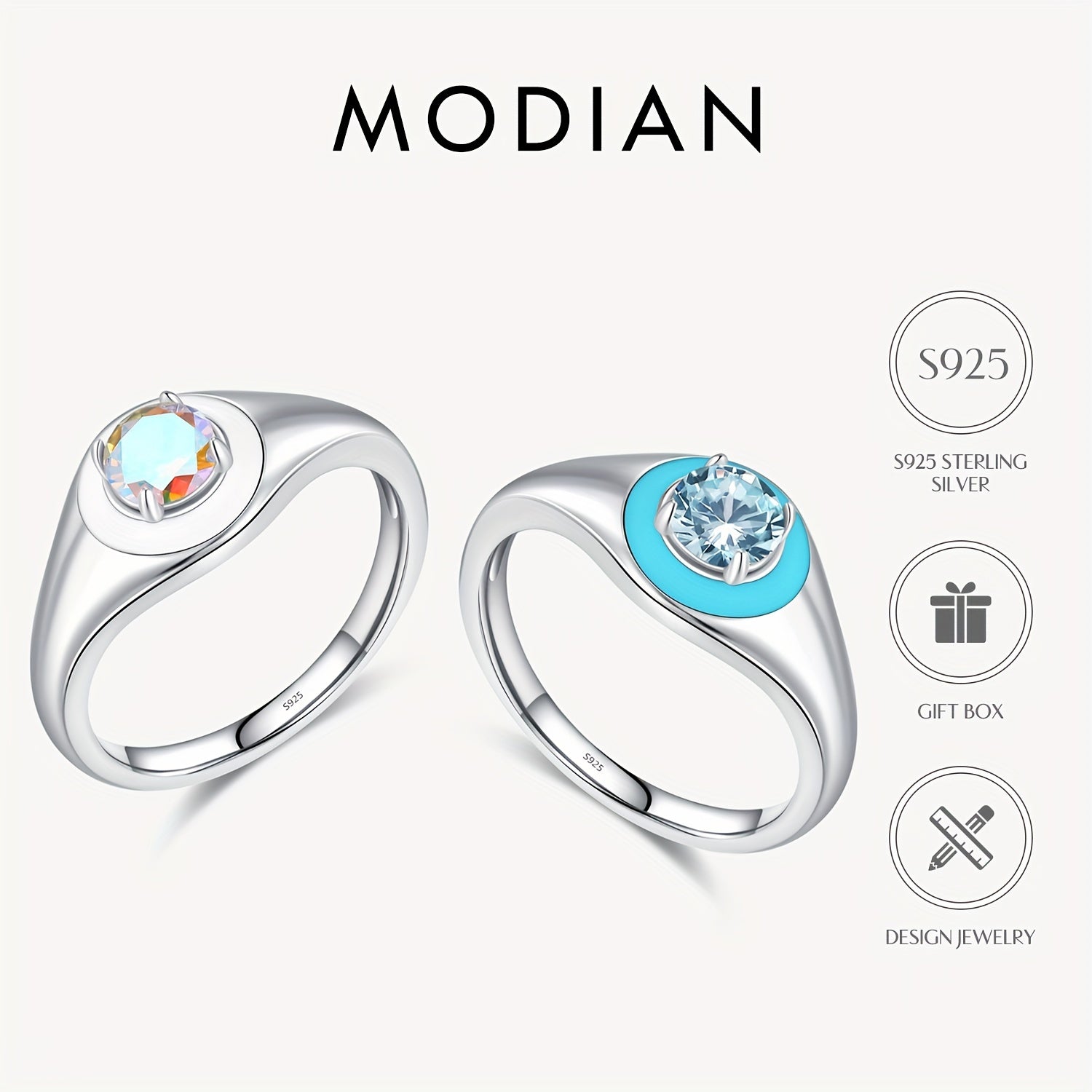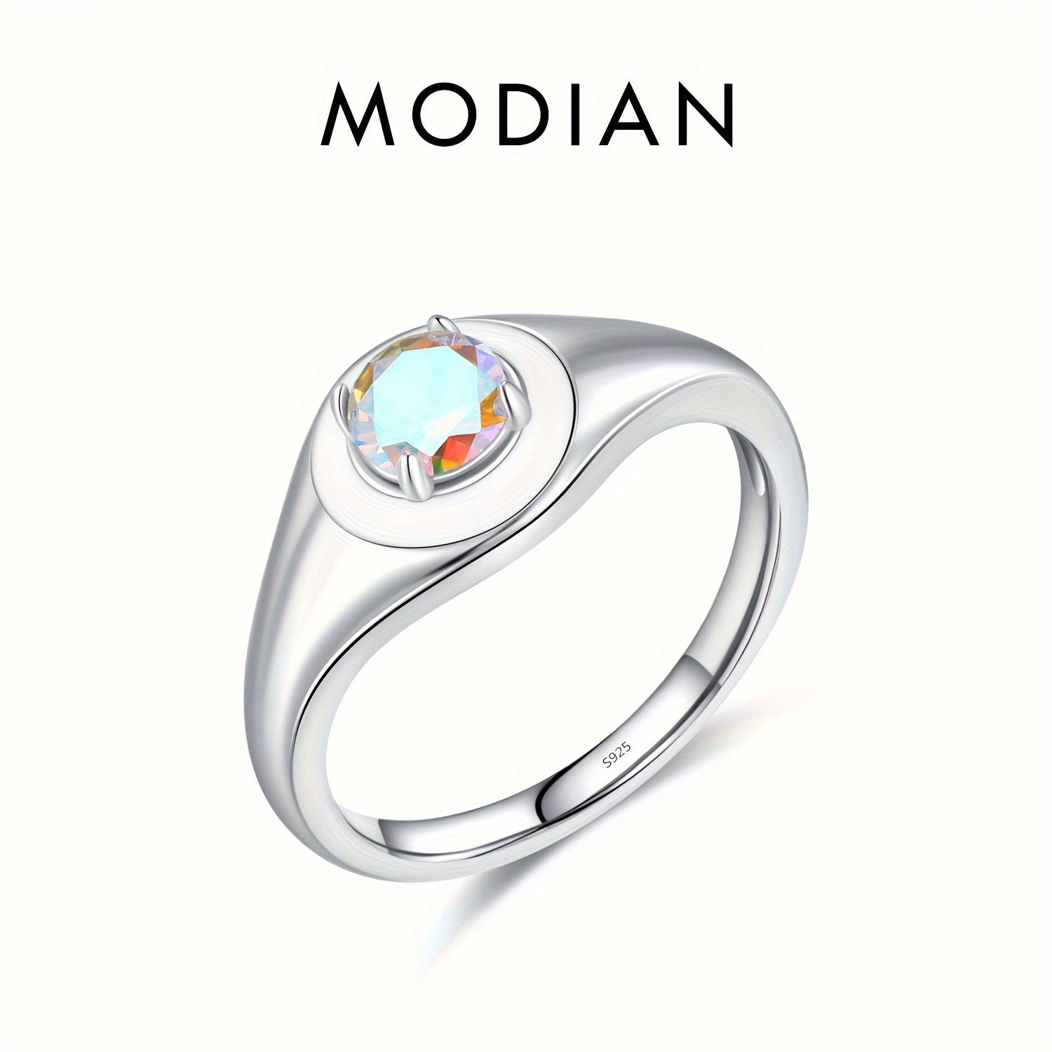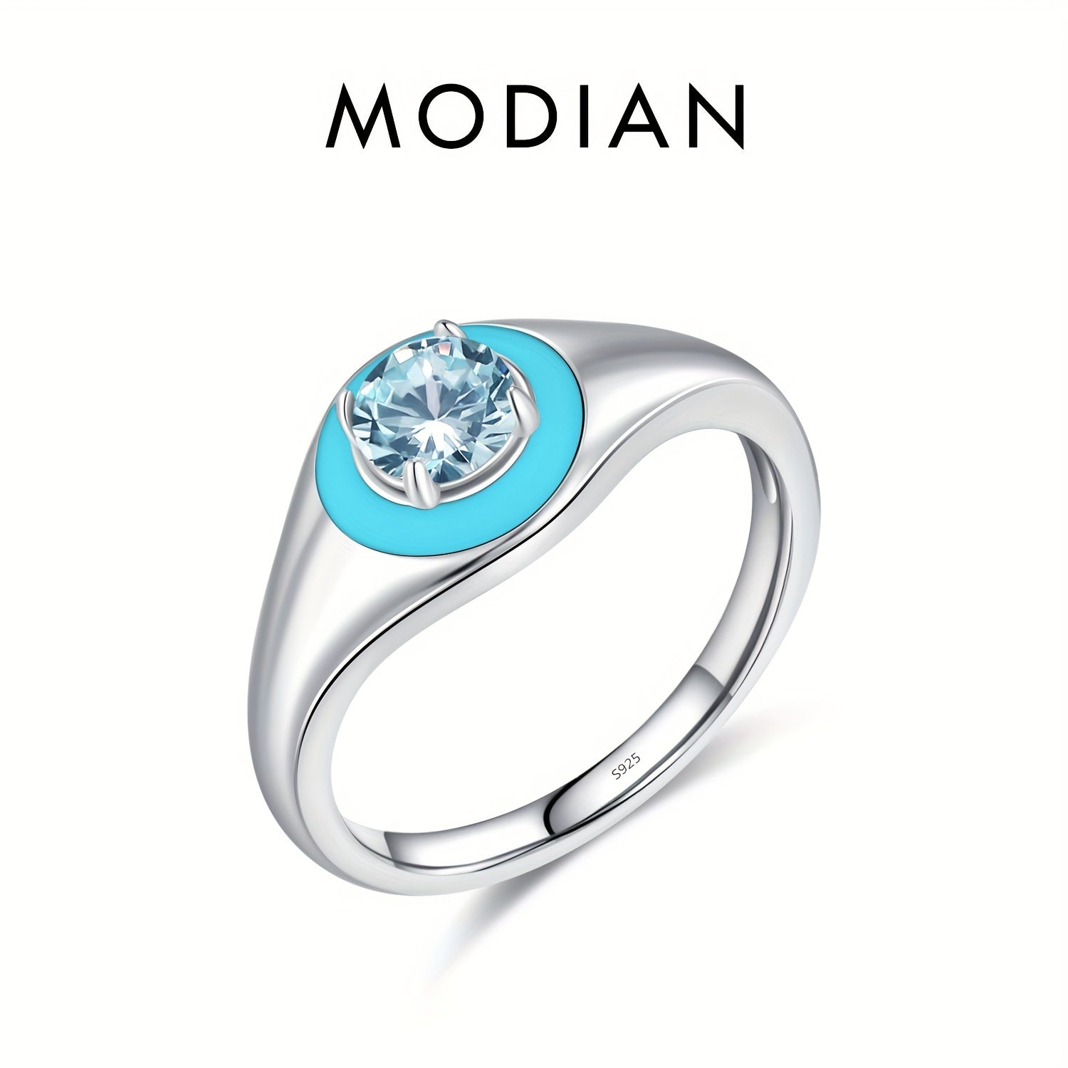 This MODIAN signet ring is crafted from 925 sterling silver with colorful enamel and sparkling zirconia details, making it perfect for daily wear or special events.