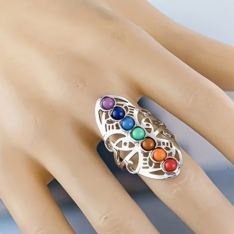 Multicolor Seven Chakra Gemstone Ring Silvery Plated