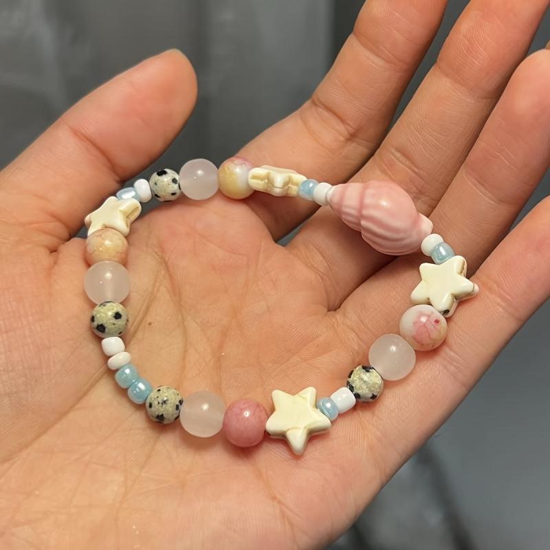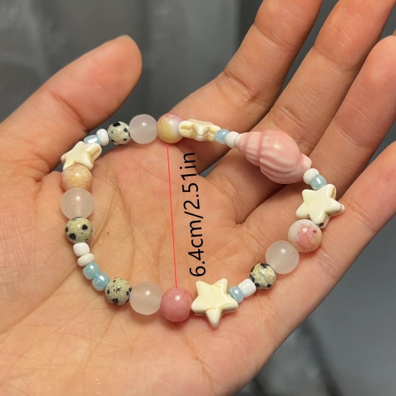Elevate your beach look with this ocean-inspired bracelet featuring seashell and star charms. Perfect for parties and everyday wear, this nautical accessory is a must-have for all seasons.