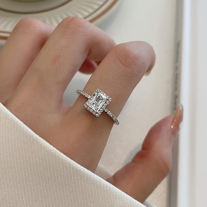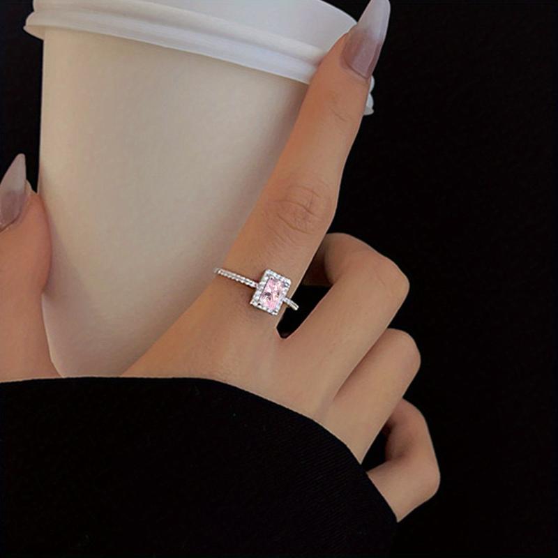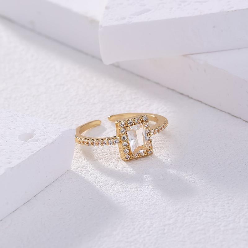 Elegant Nooxian adjustable ring crafted from copper, featuring a rectangular gemstone and sparkling cubic zirconia accent. Perfect for adding a touch of sophistication to any outfit.