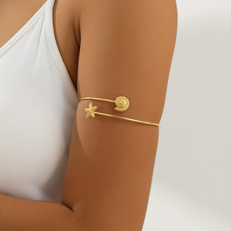 This minimalist arm cuff is perfect for any occasion, from beach vacations to daily wear or elegant parties. Its ocean-inspired design adds a touch of style to your outfit.