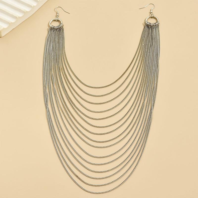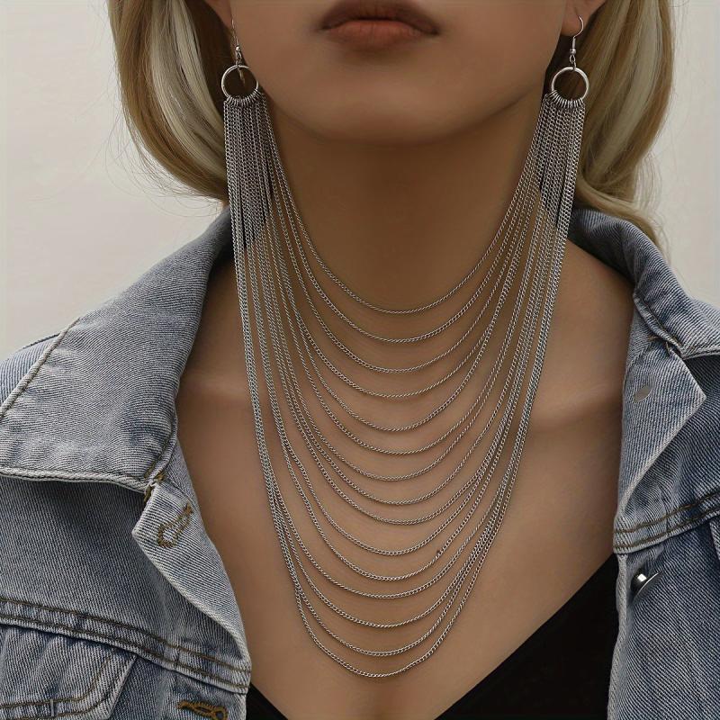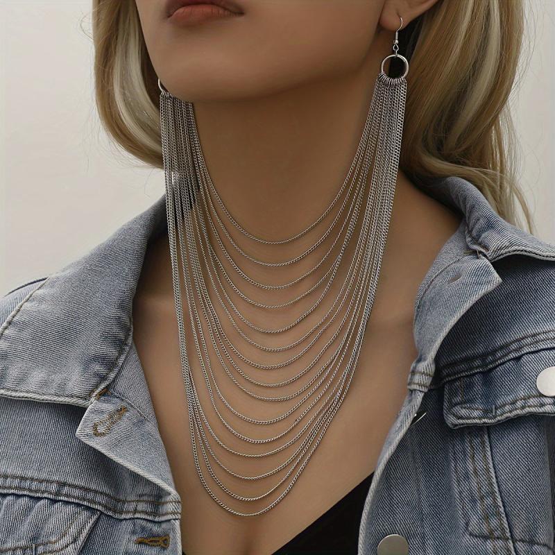 These trendy punk style earrings feature a unique left and right connected design. Perfect accessory for a bold and edgy look.