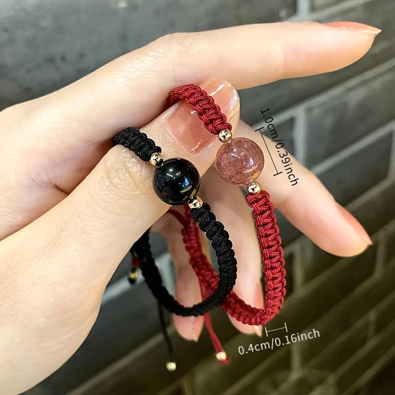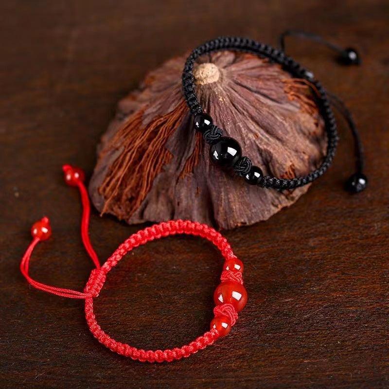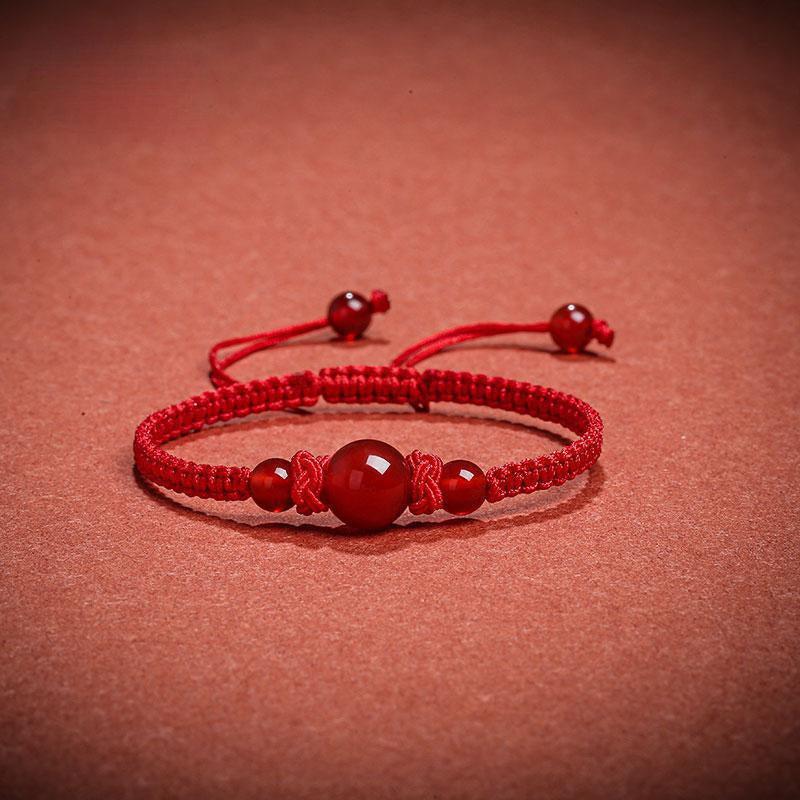 Adjustable braided lucky bead bracelet featuring red agate, perfect for daily wear and a symbol of luck and protection.