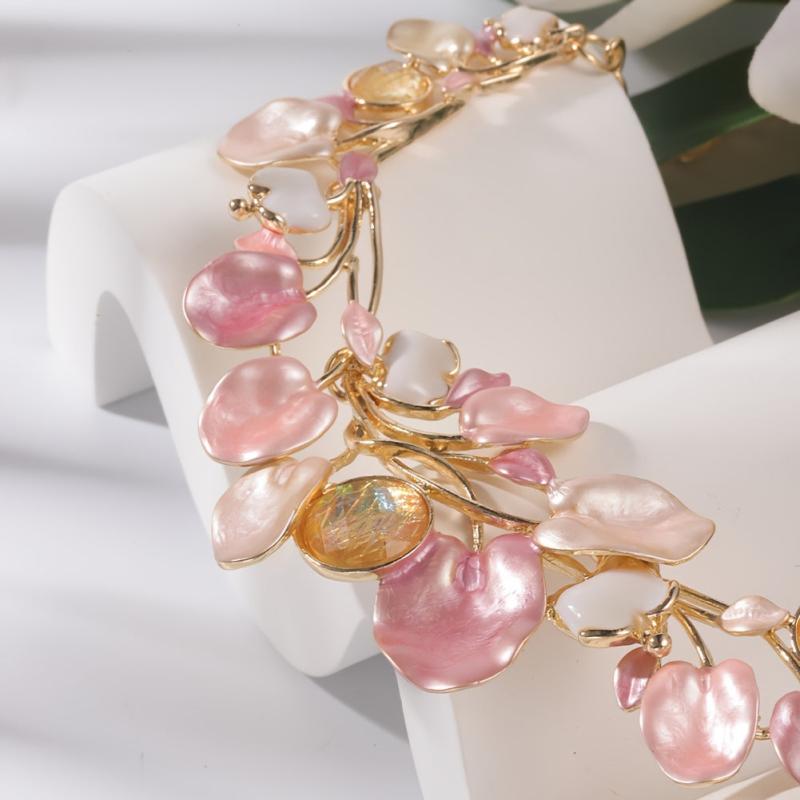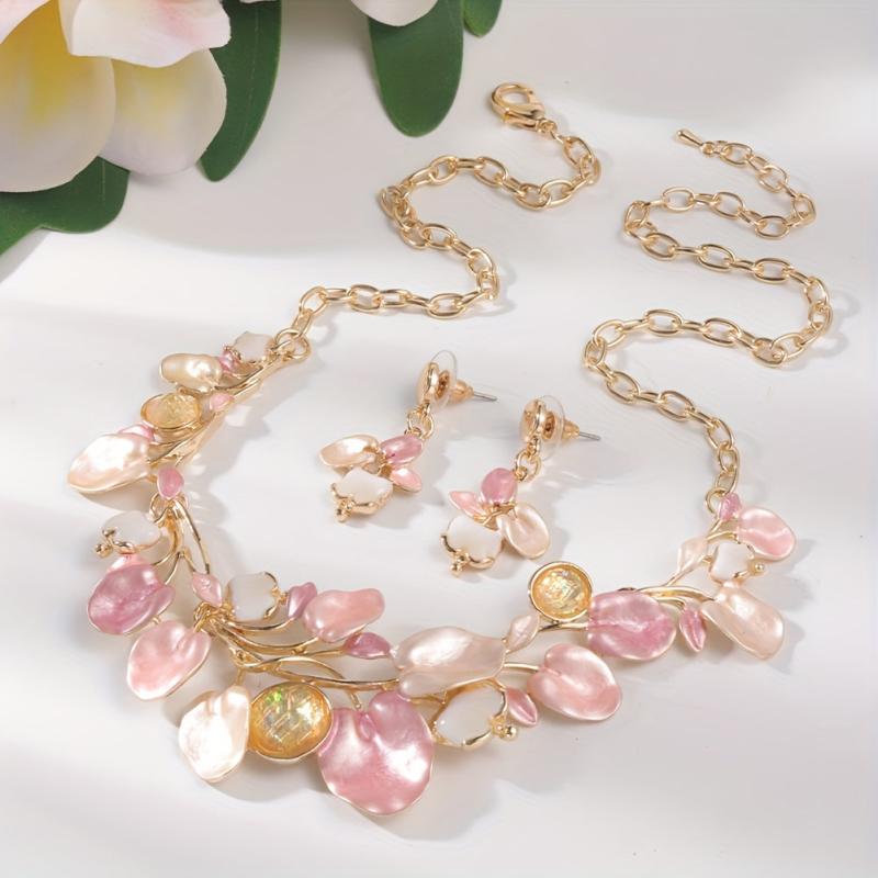 Complete your spring and summer look with this charming zinc alloy jewelry set featuring pink enamel leaf designs. Perfect for adding a touch of romance to your outfits.