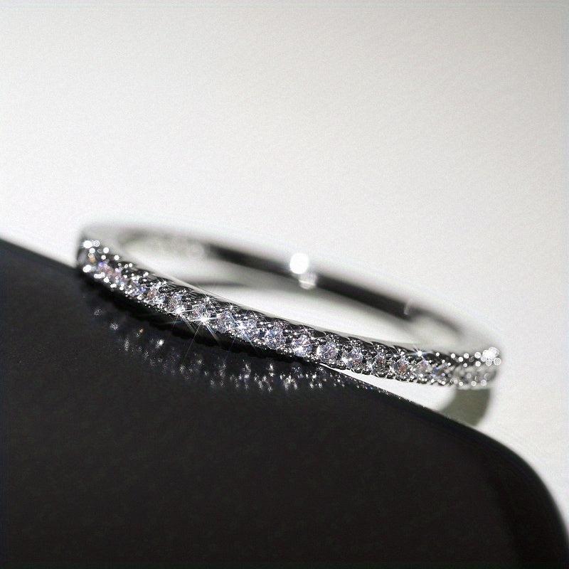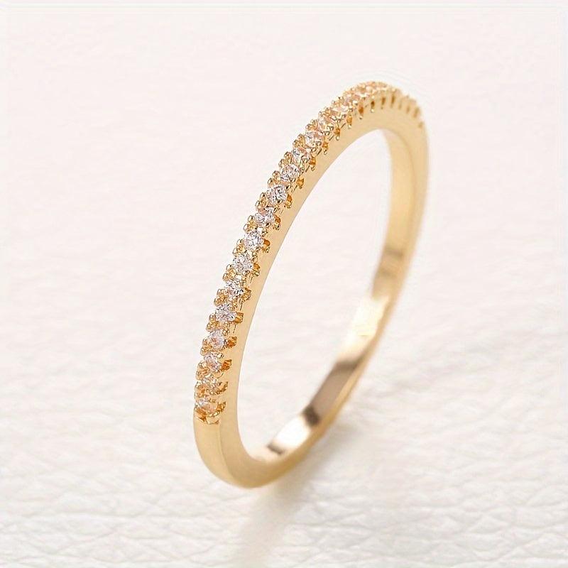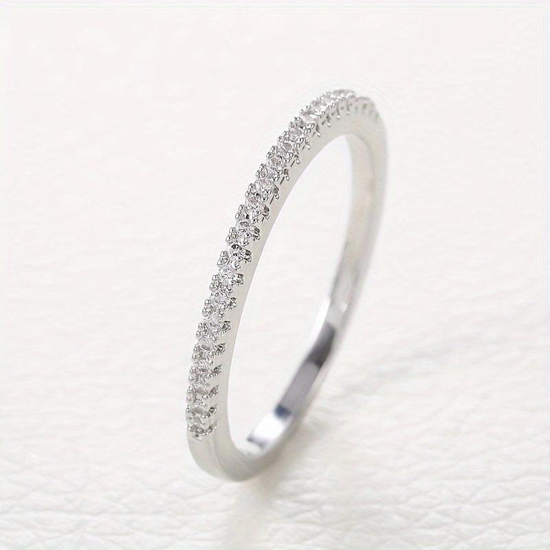 Minimalist ring with synthetic cubic zirconia inlay, ideal for daily wear. April birthstone design adds elegance. Versatile stackable piece.