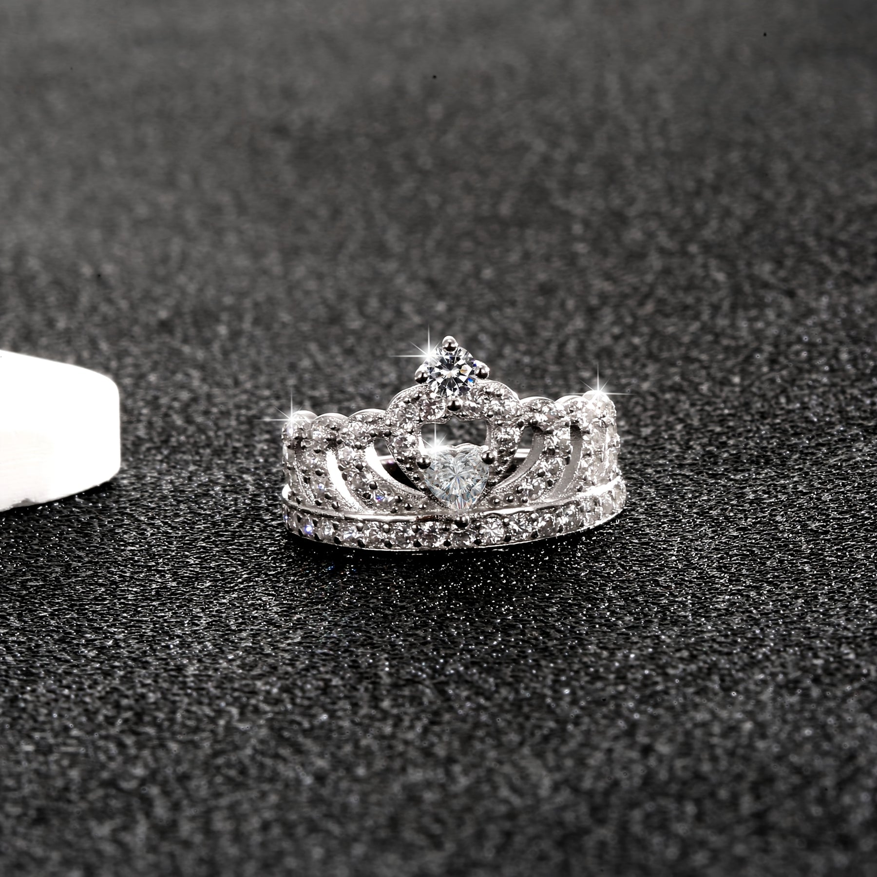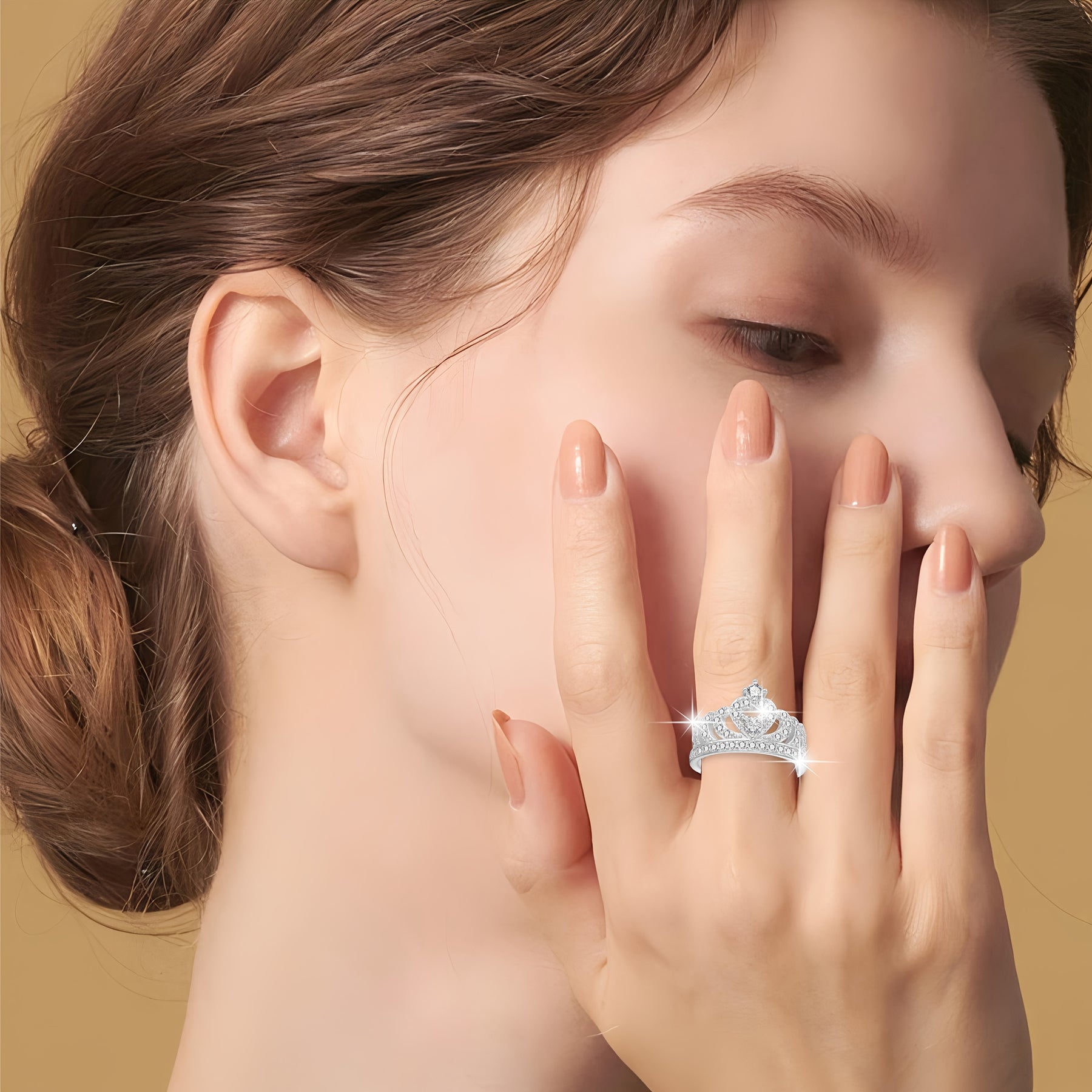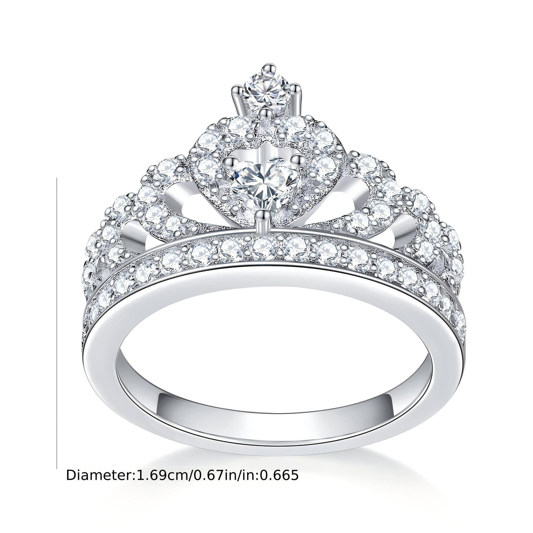 This stunning ring is crafted from S925 pure silver and features a princess crown design with a heart-shaped cubic zirconia stone. Perfect for engagements, weddings, Valentine's Day, and vacations.
