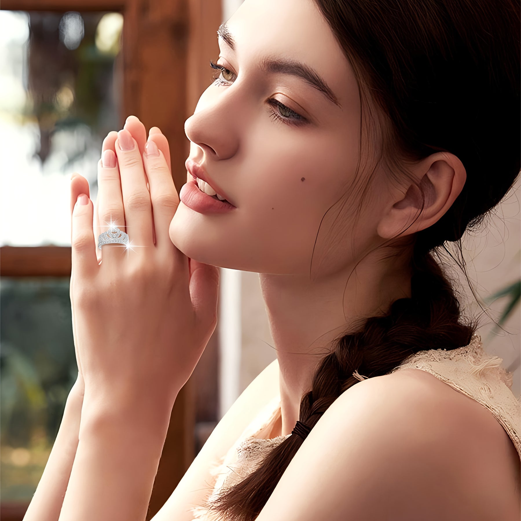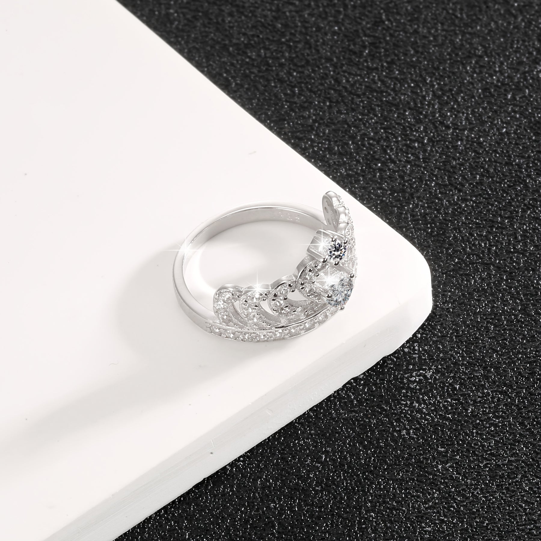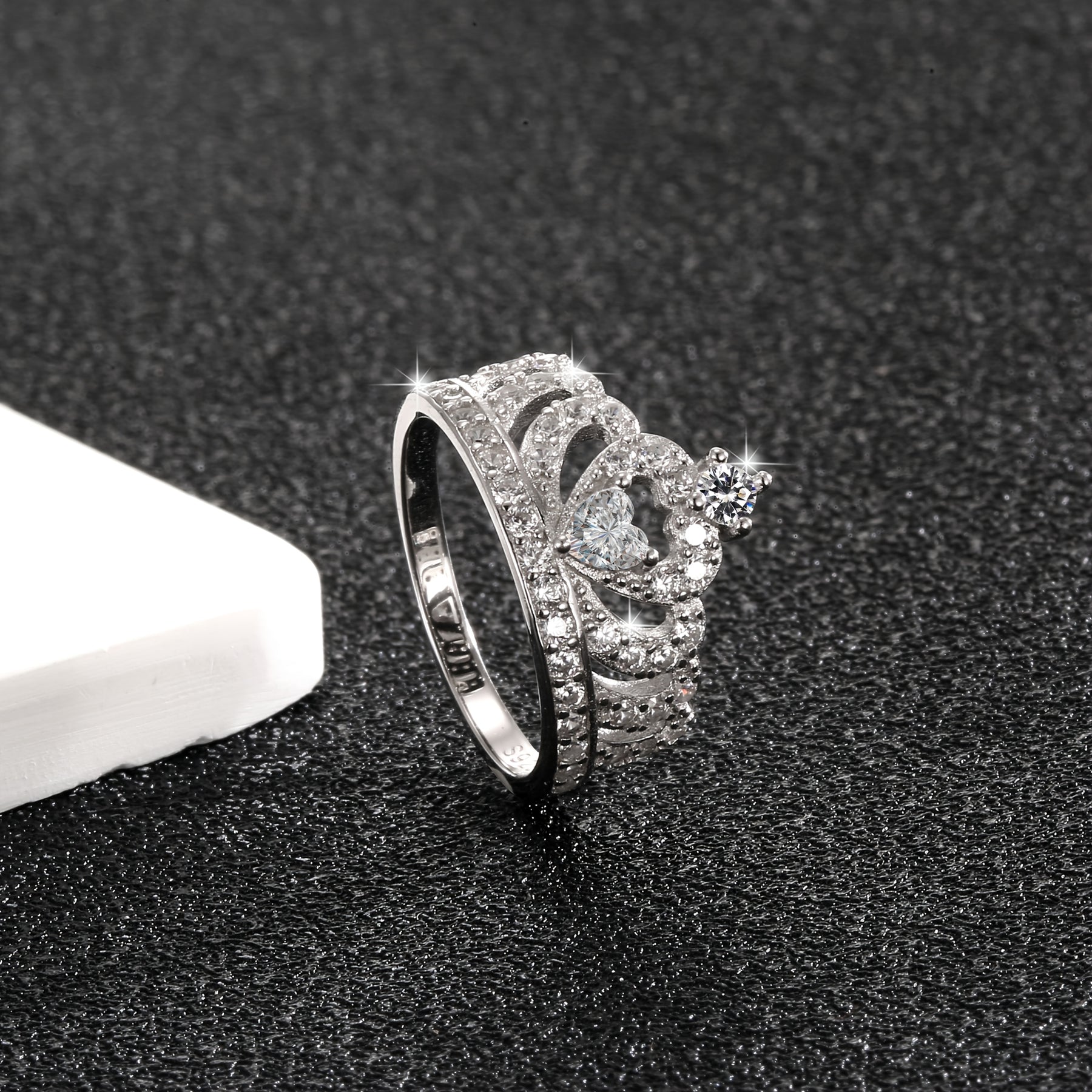 This stunning ring is crafted from S925 pure silver and features a princess crown design with a heart-shaped cubic zirconia stone. Perfect for engagements, weddings, Valentine's Day, and vacations.