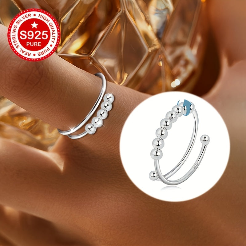 This double layered swivel bead ring is made of high-quality S925 silver with a minimalist design. It is suitable for various occasions and is hypoallergenic, making it a perfect gift for women.