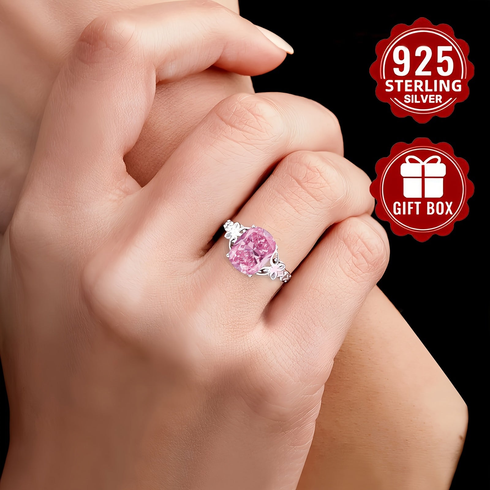 This stunning S925 sterling silver ring features a sparkly pink synthetic cubic zirconia set in a delicate hollow butterfly design. Perfect for everyday wear or as a thoughtful gift for a mother.