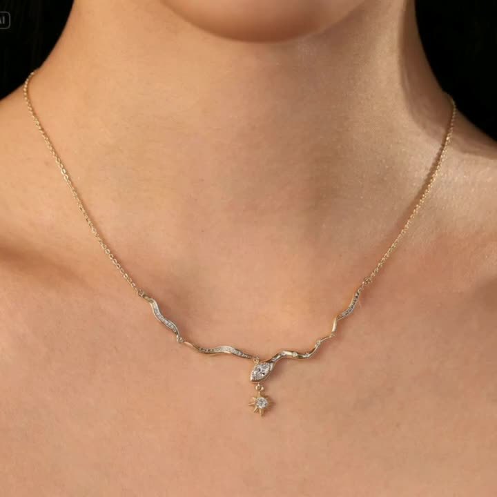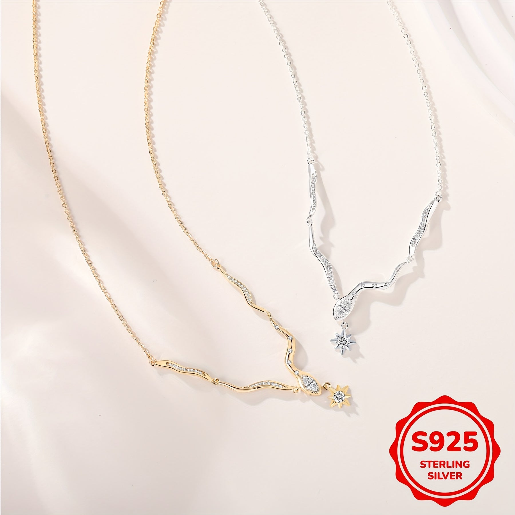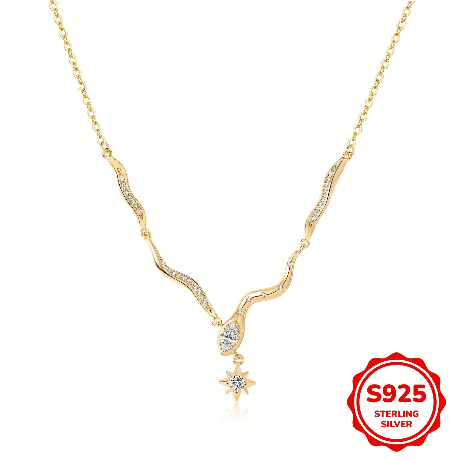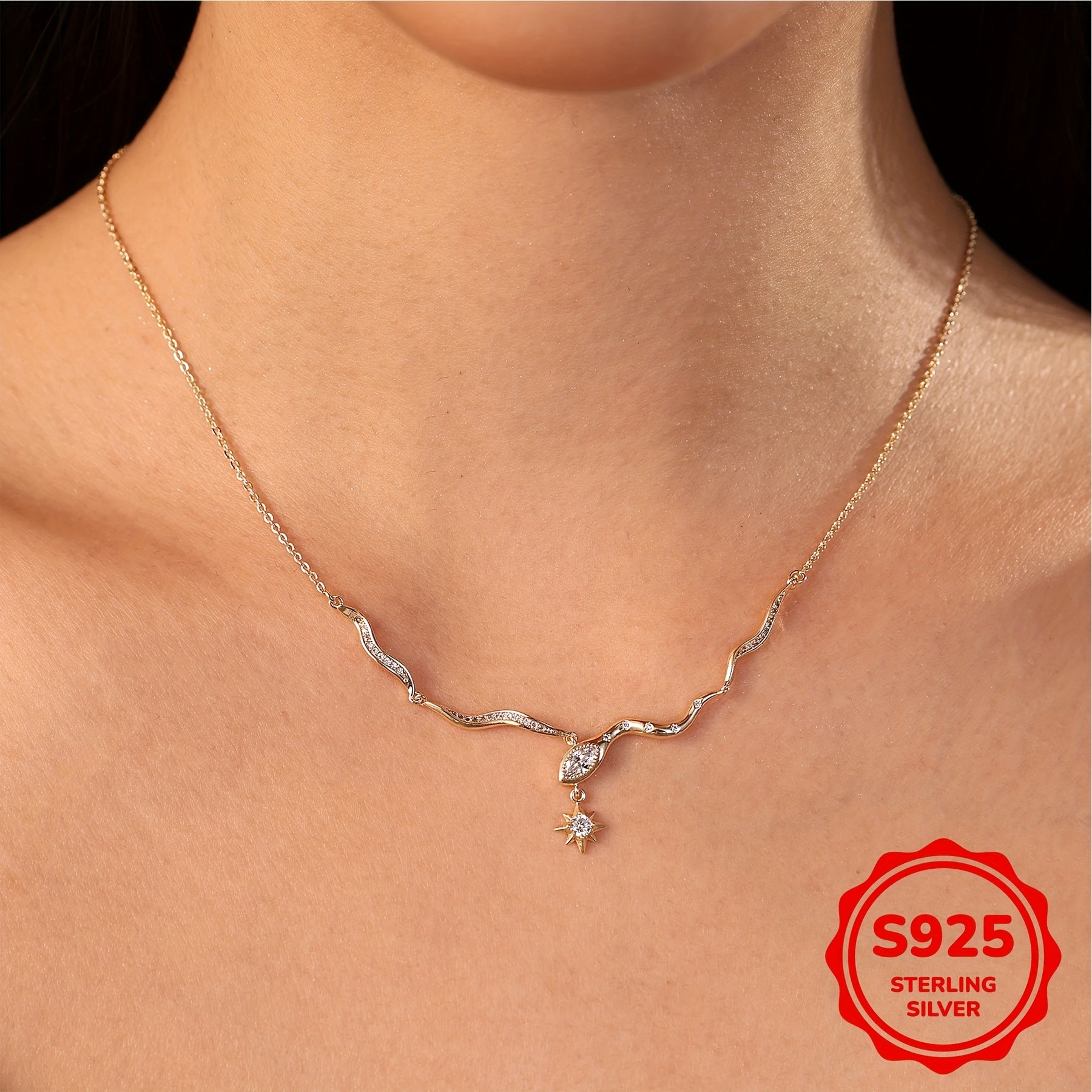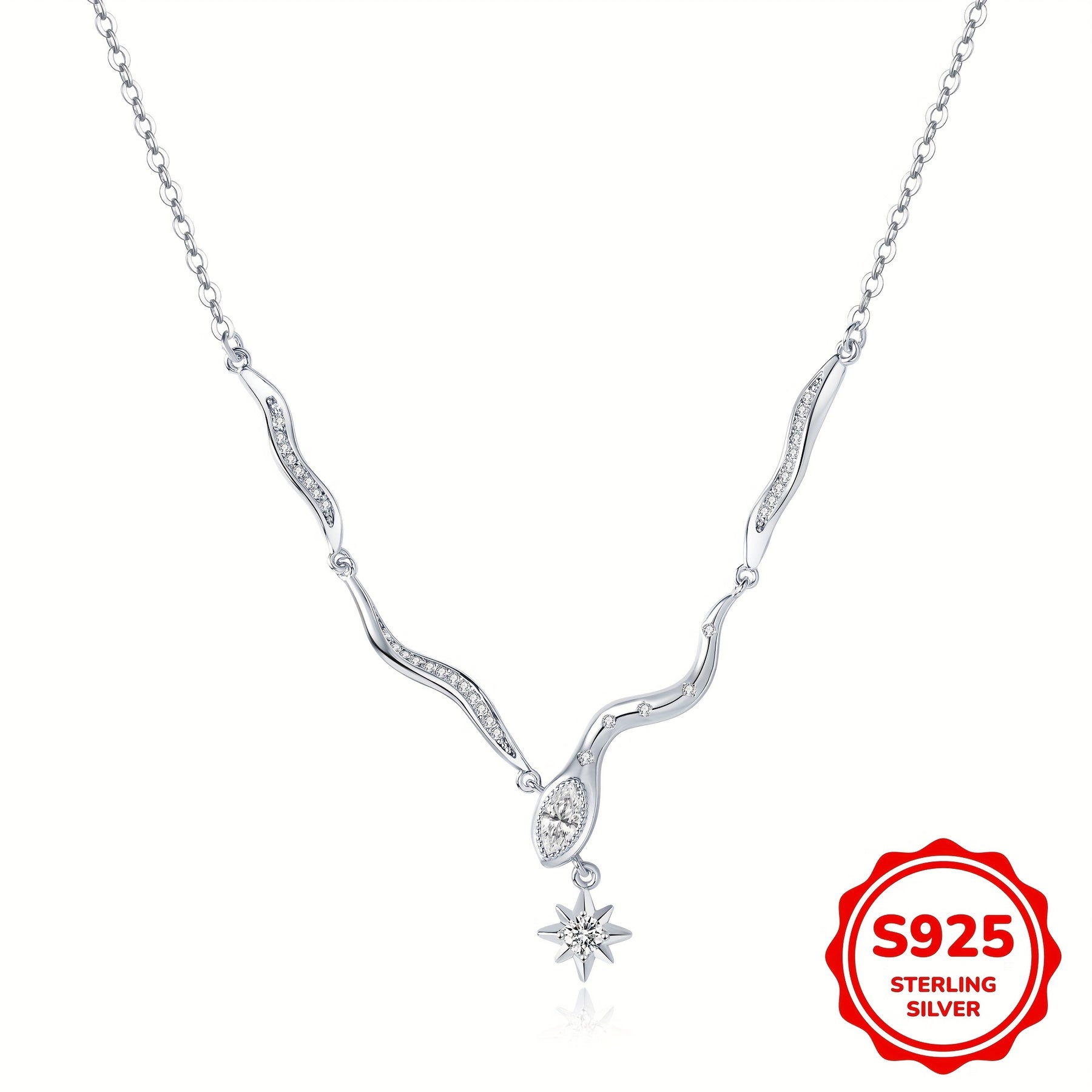 Elegant S925 sterling silver necklace featuring a snake eye star pendant with sparkling 5A zirconia. Perfect for festivals and parties.