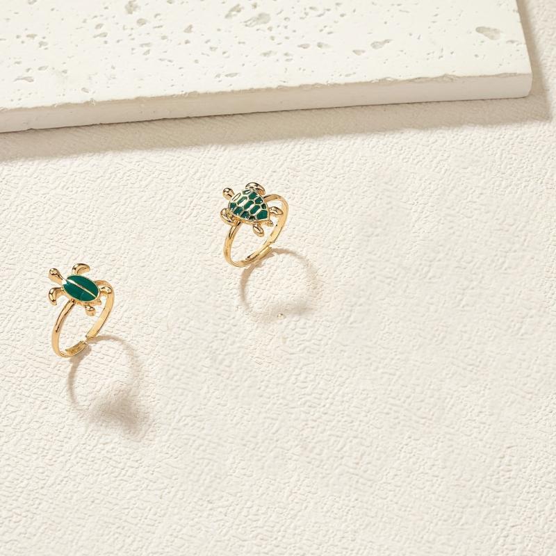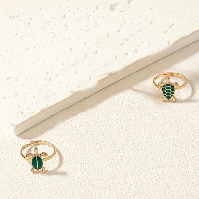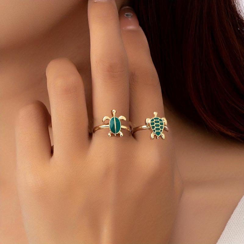 This set includes two rings with different geometric shapes - one round and one triangular. They are a stylish and versatile accessory for any outfit.
