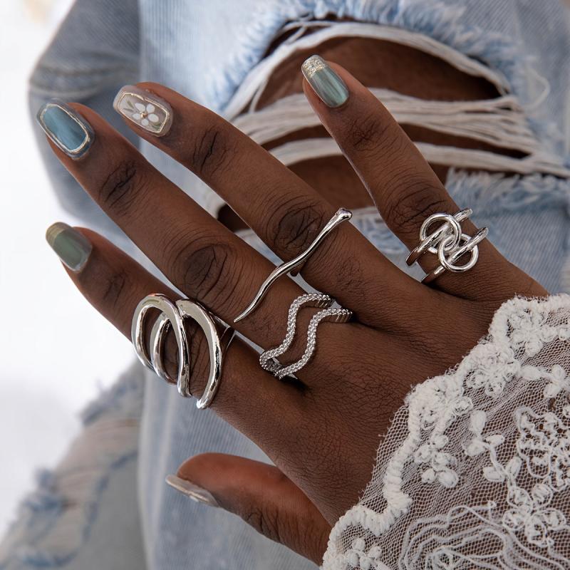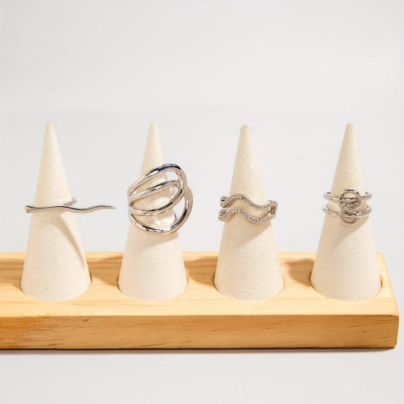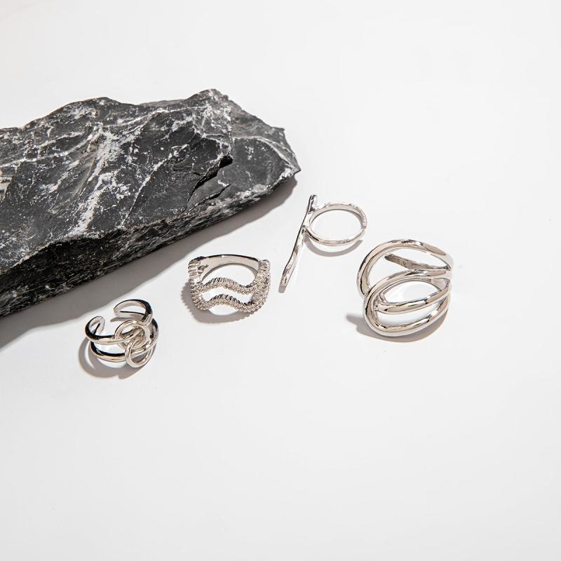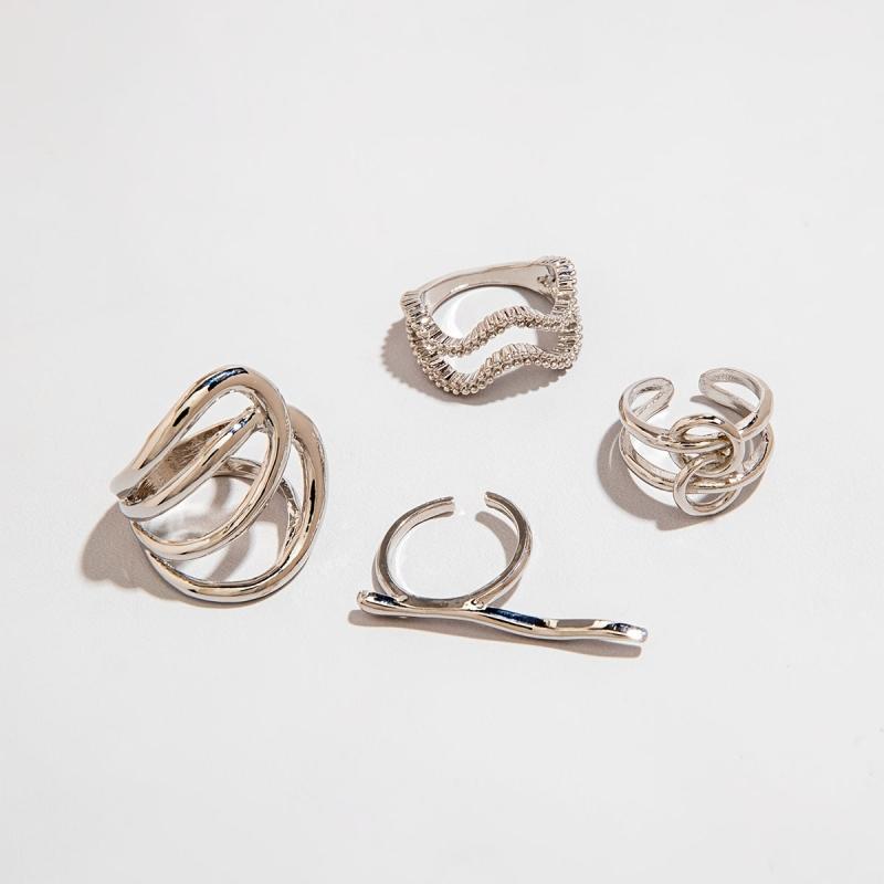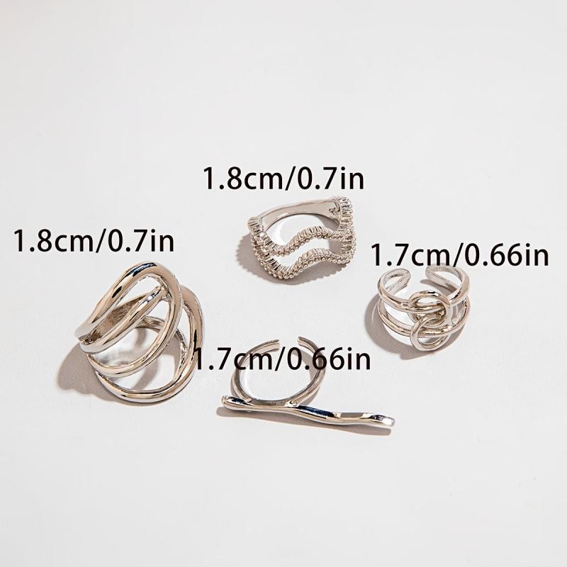 Enhance your style with this set of 4 stylish and unique golden-themed silver rings, perfect for female dance parties and gatherings.