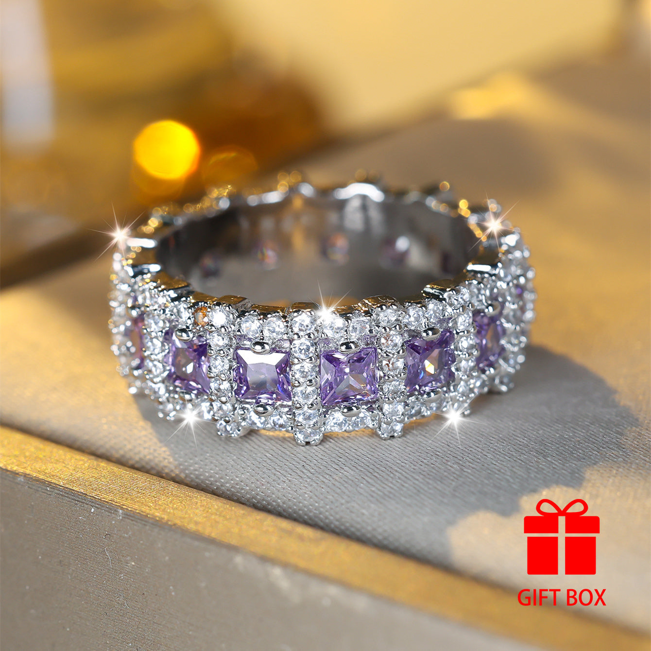 Elegant and durable synthetic zirconia ring in shimmering purple hue. Perfect for weddings, parties, holidays, and daily wear.
