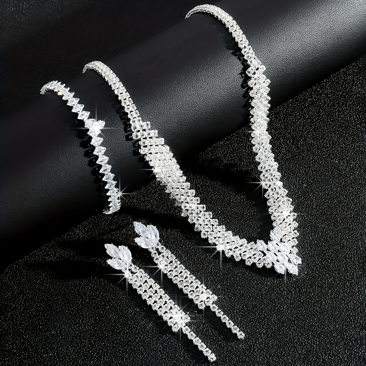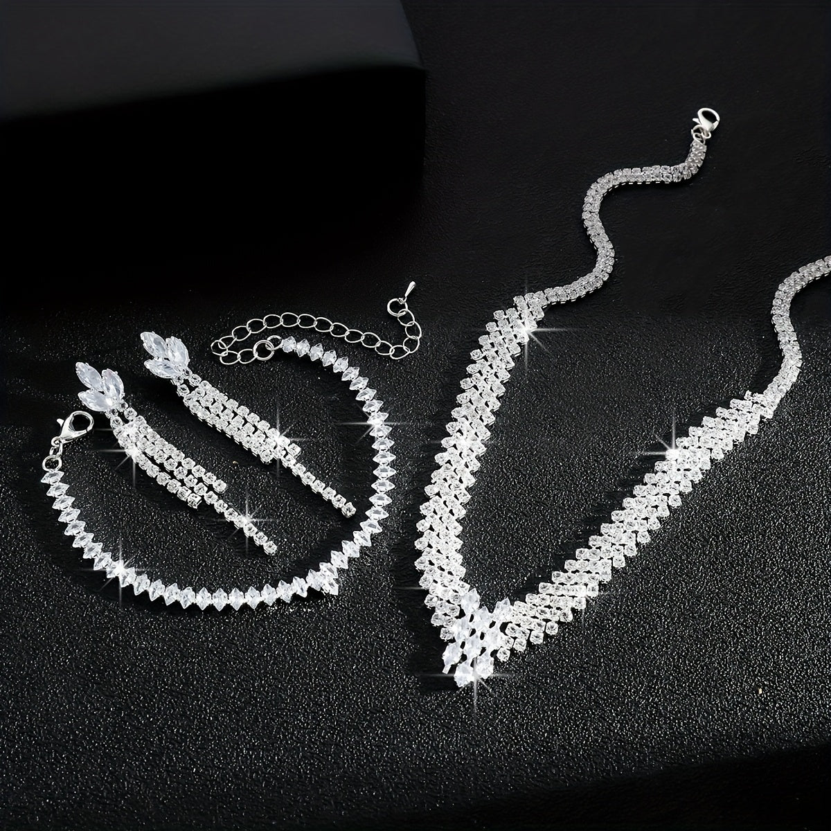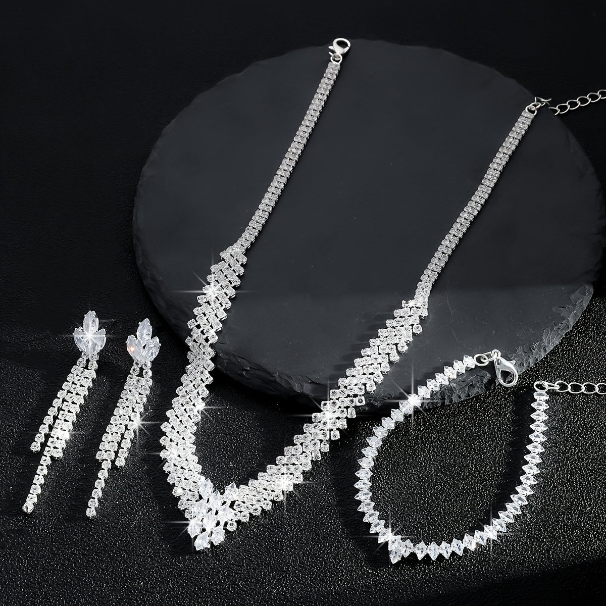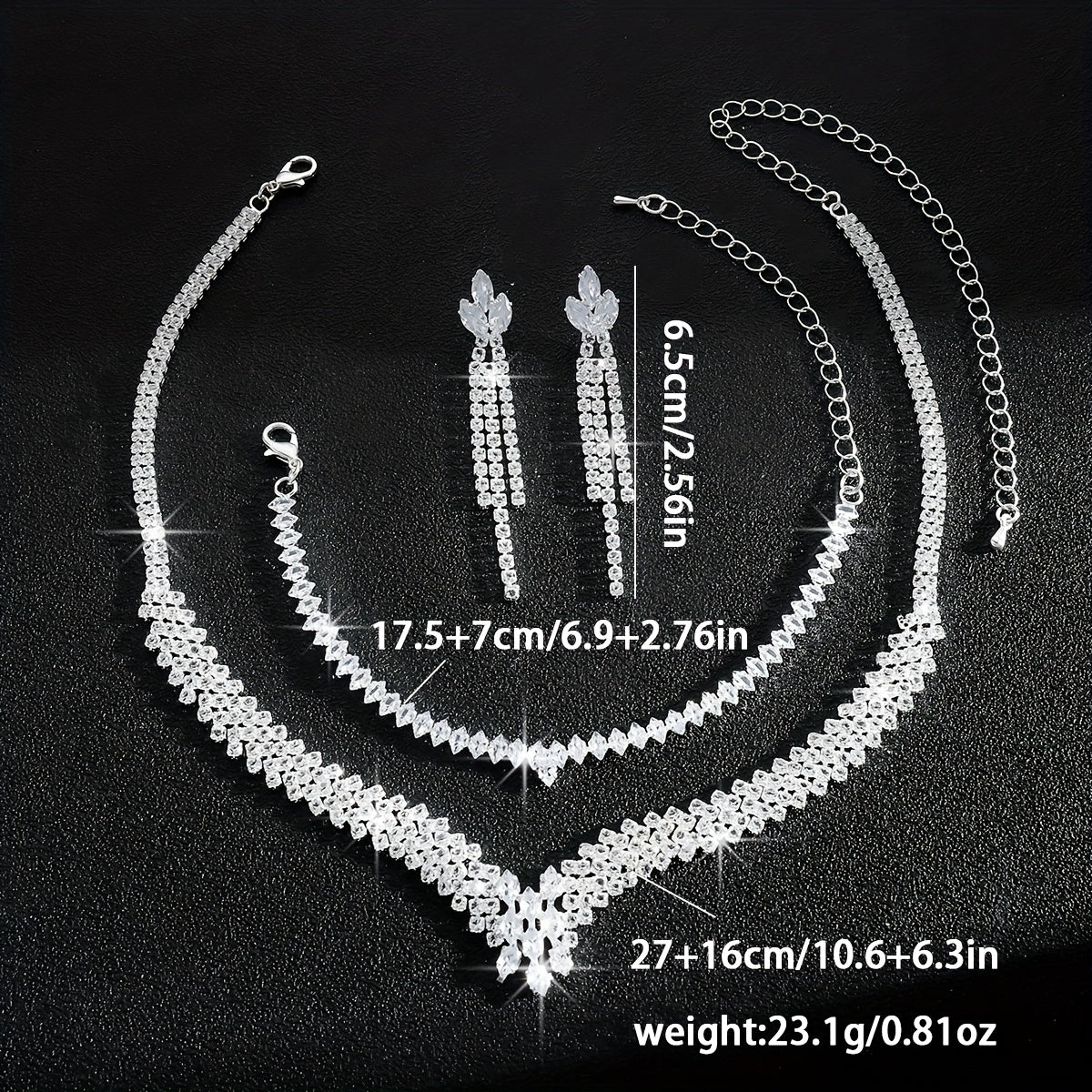 • Dripping rhinestones add elegance to the set