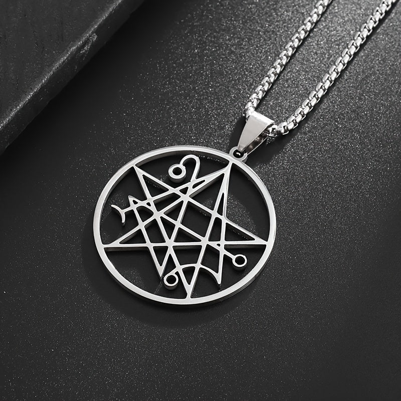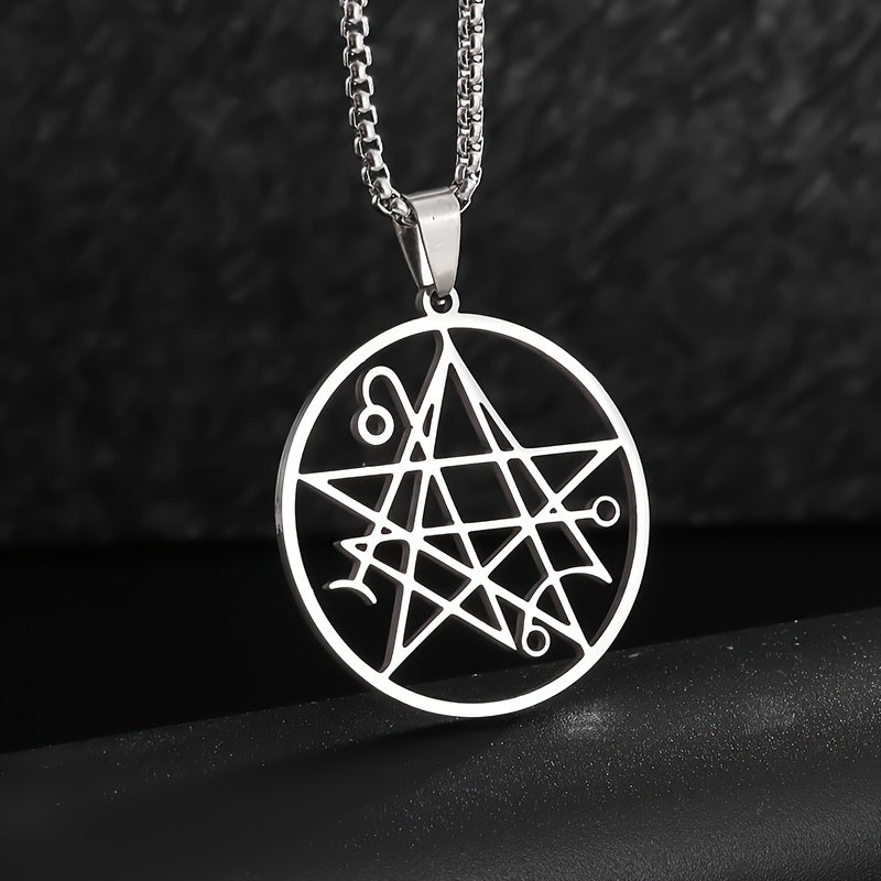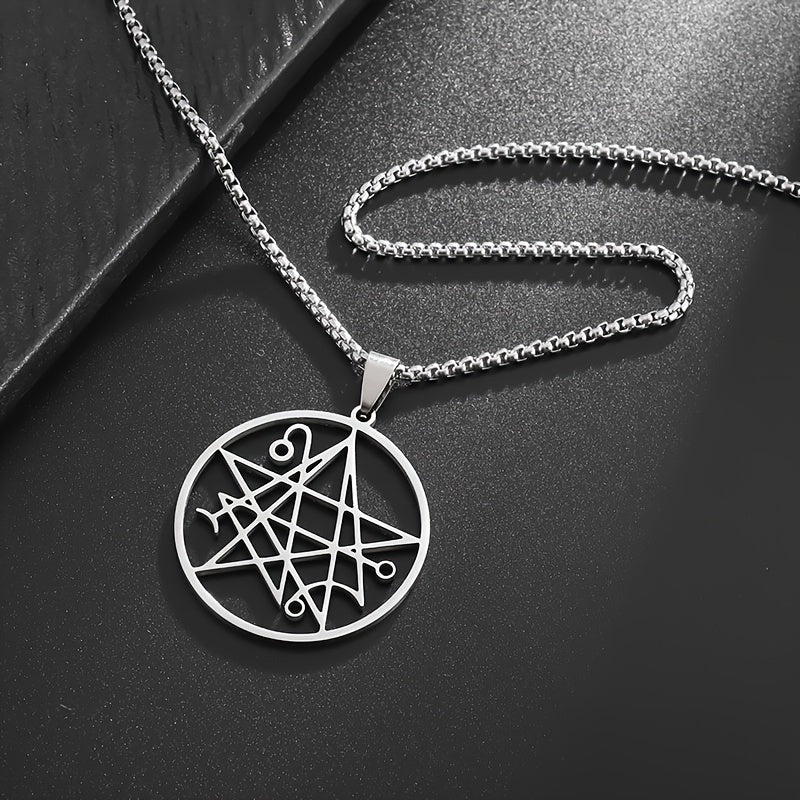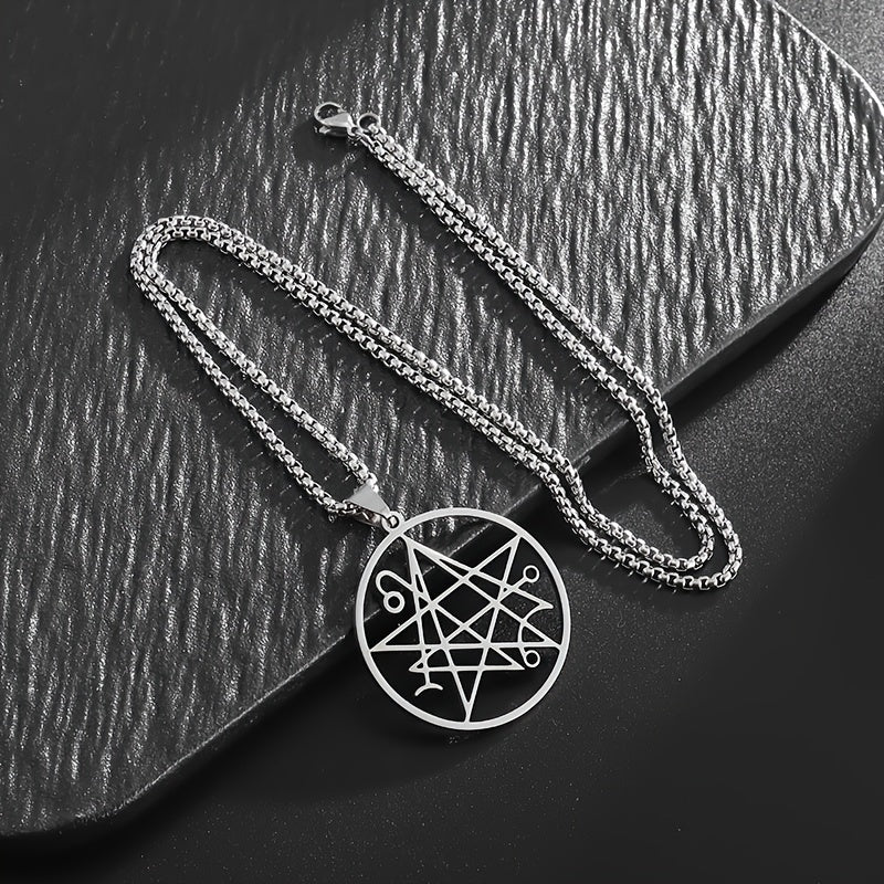 Embrace the dark arts with this stainless steel pendant necklace featuring a classic necromancy spell. Suitable for both men and women, this jewelry is a perfect gift for those with a fascination for the occult.