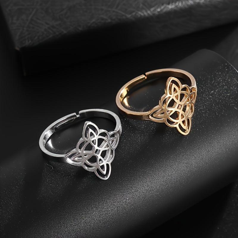 This stylish stainless steel ring featuring a witch knot design is perfect for adding a touch of magic to your Halloween outfit. It's adjustable and suitable for casual wear or parties.
