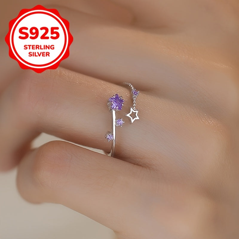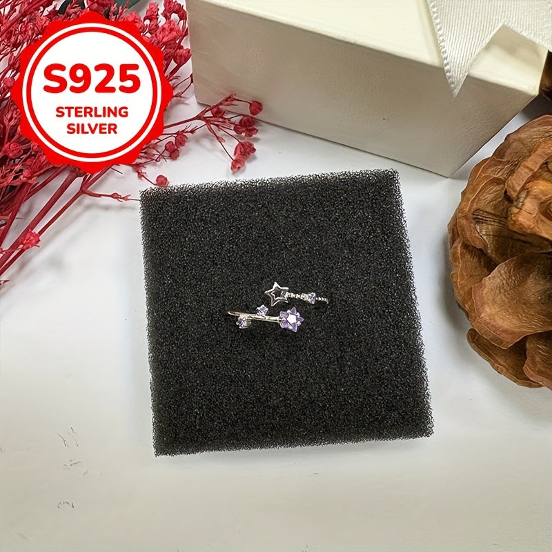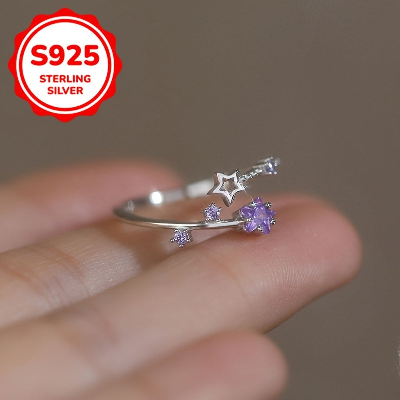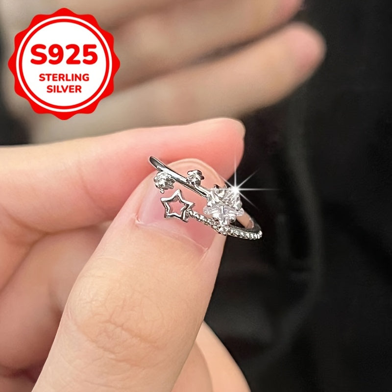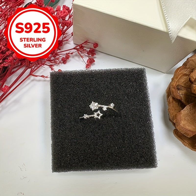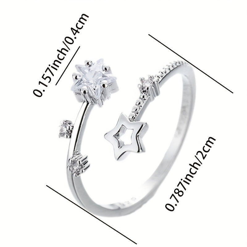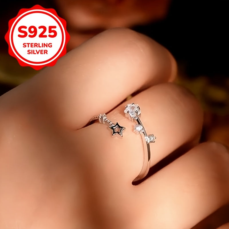 Add a touch of sparkle to your look with this adjustable open ring featuring a star design and sparkling accents. Made from S925 sterling silver, it is perfect for spring, summer, weddings, or everyday wear.