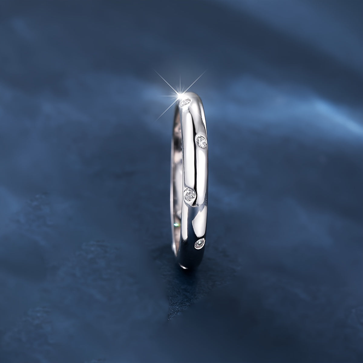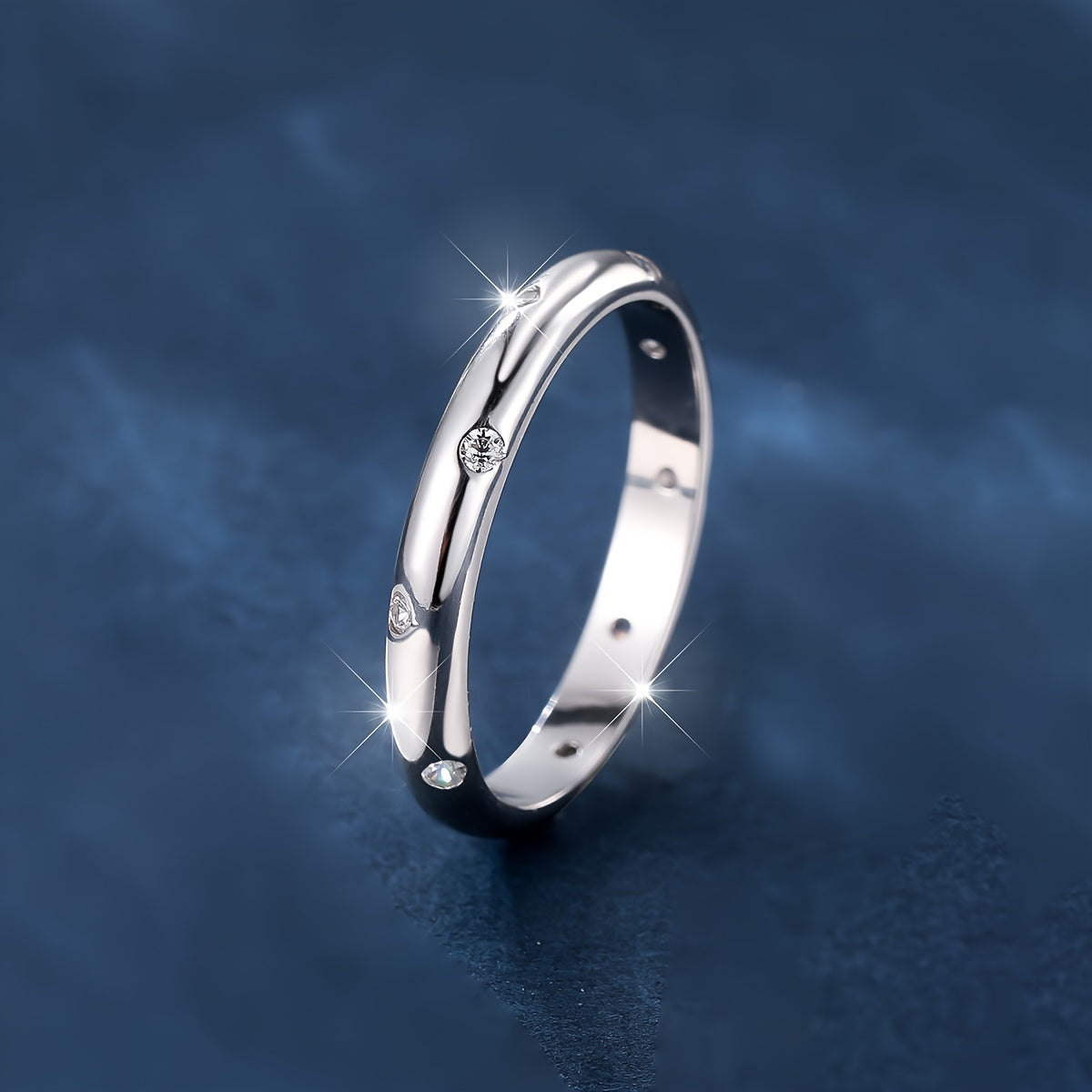 This exquisite sterling silver ring features a smooth face with zirconia detailing, making it a perfect wedding gift for women.