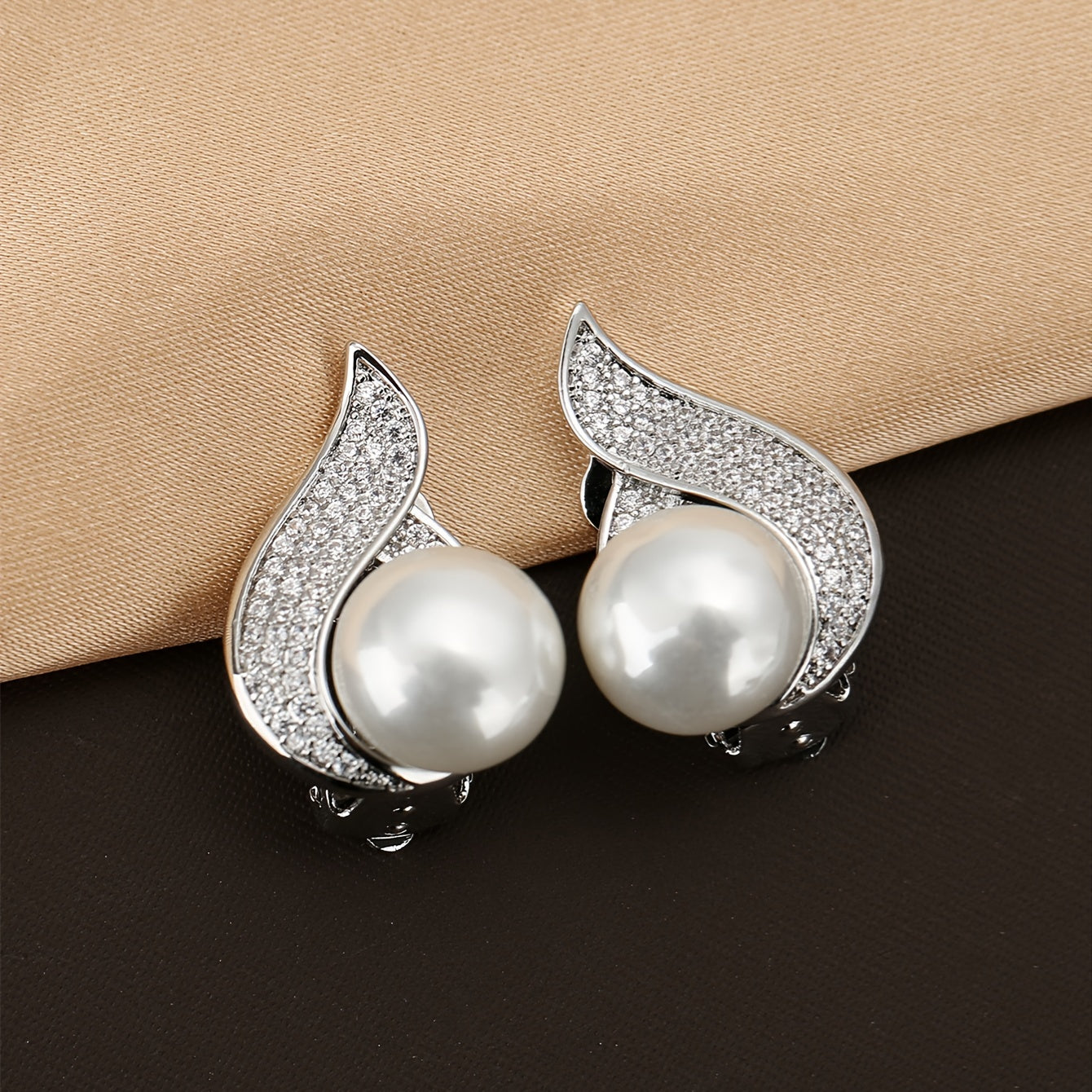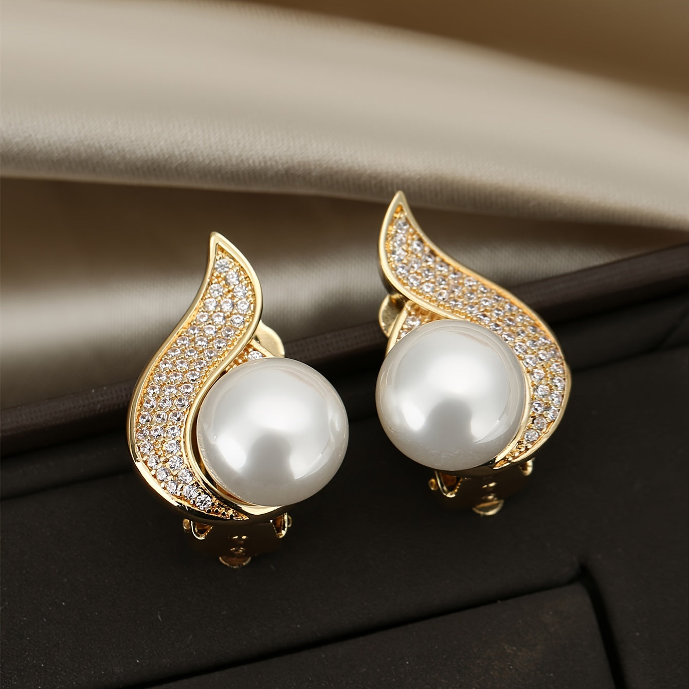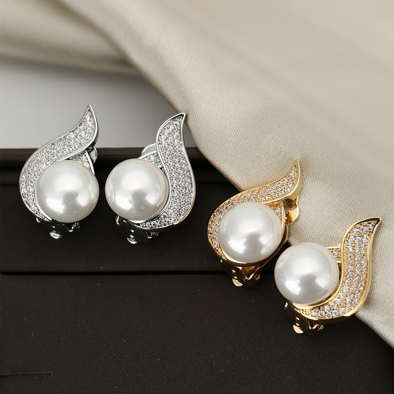 Elevate your style with these chic ear clips from Europe and America. Featuring a youthful design with a copper base, pearl embellishments, and surrounding zirconia crystals.