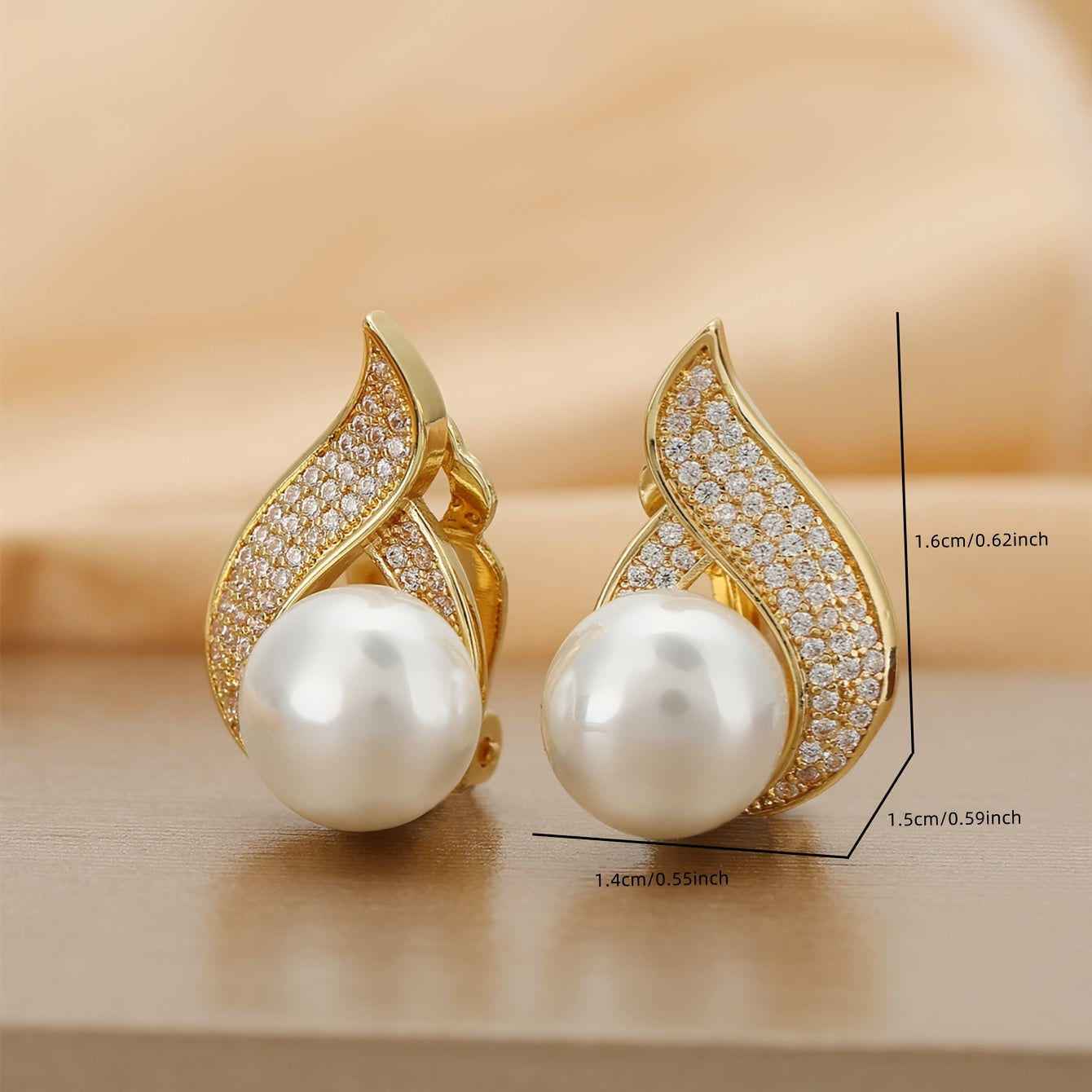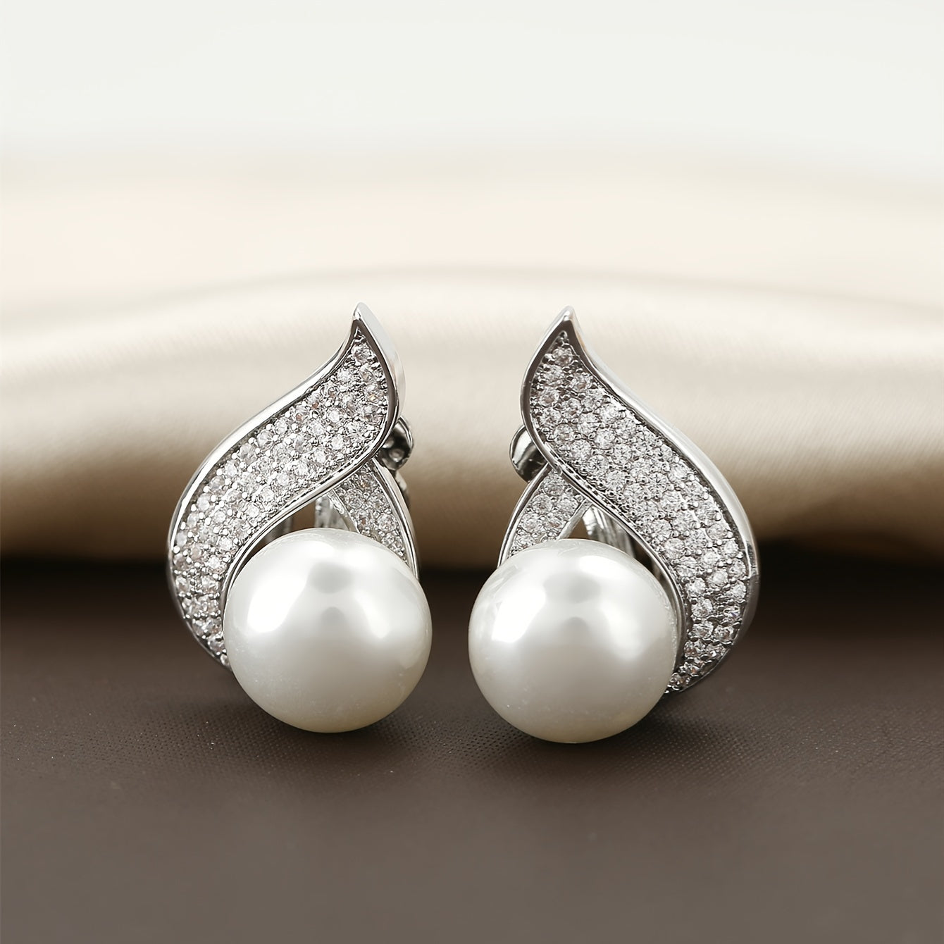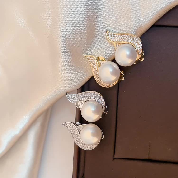 Elevate your style with these chic ear clips from Europe and America. Featuring a youthful design with a copper base, pearl embellishments, and surrounding zirconia crystals.