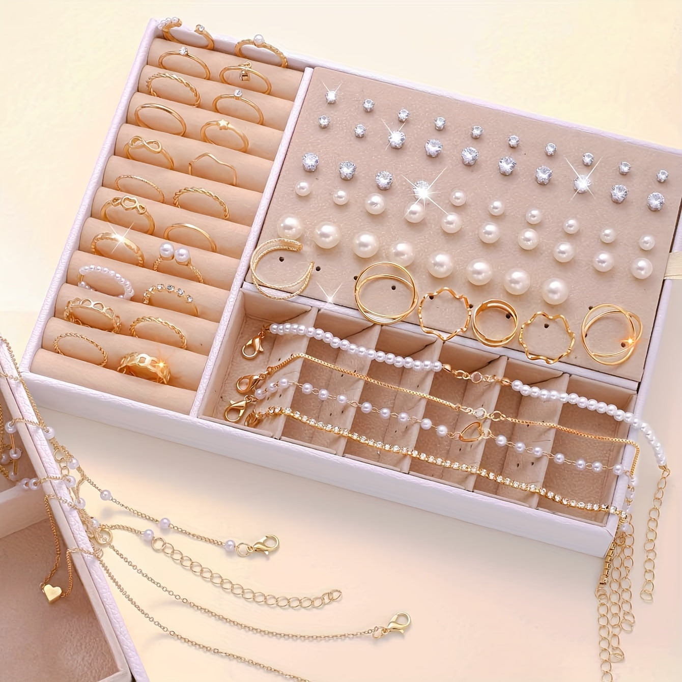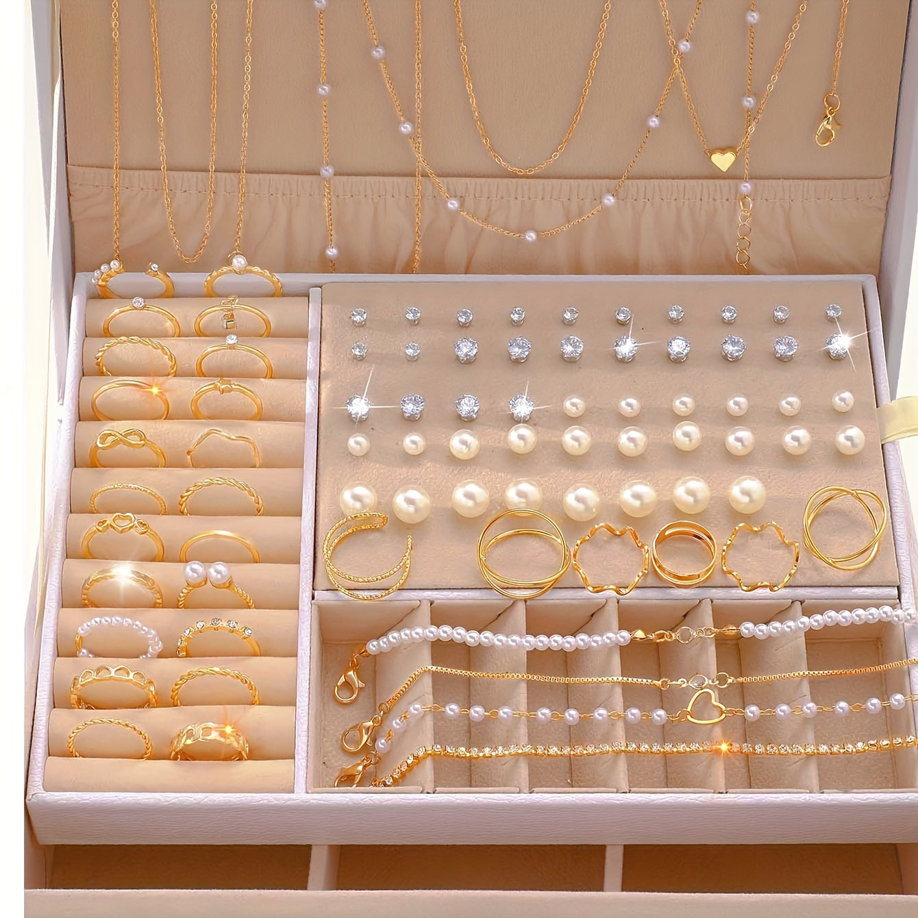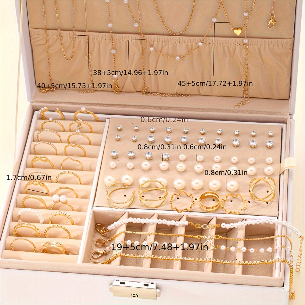 Complete your look with this elegant jewelry set featuring layer necklace, earrings, and rings. Perfect for daily outings and commuting, this set is a great gift option for Christmas.
