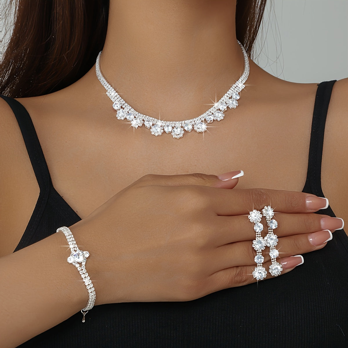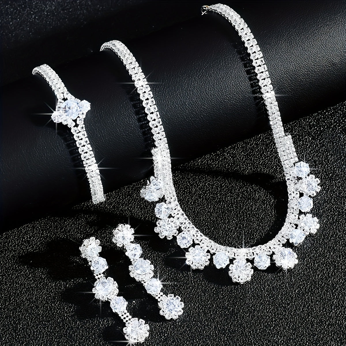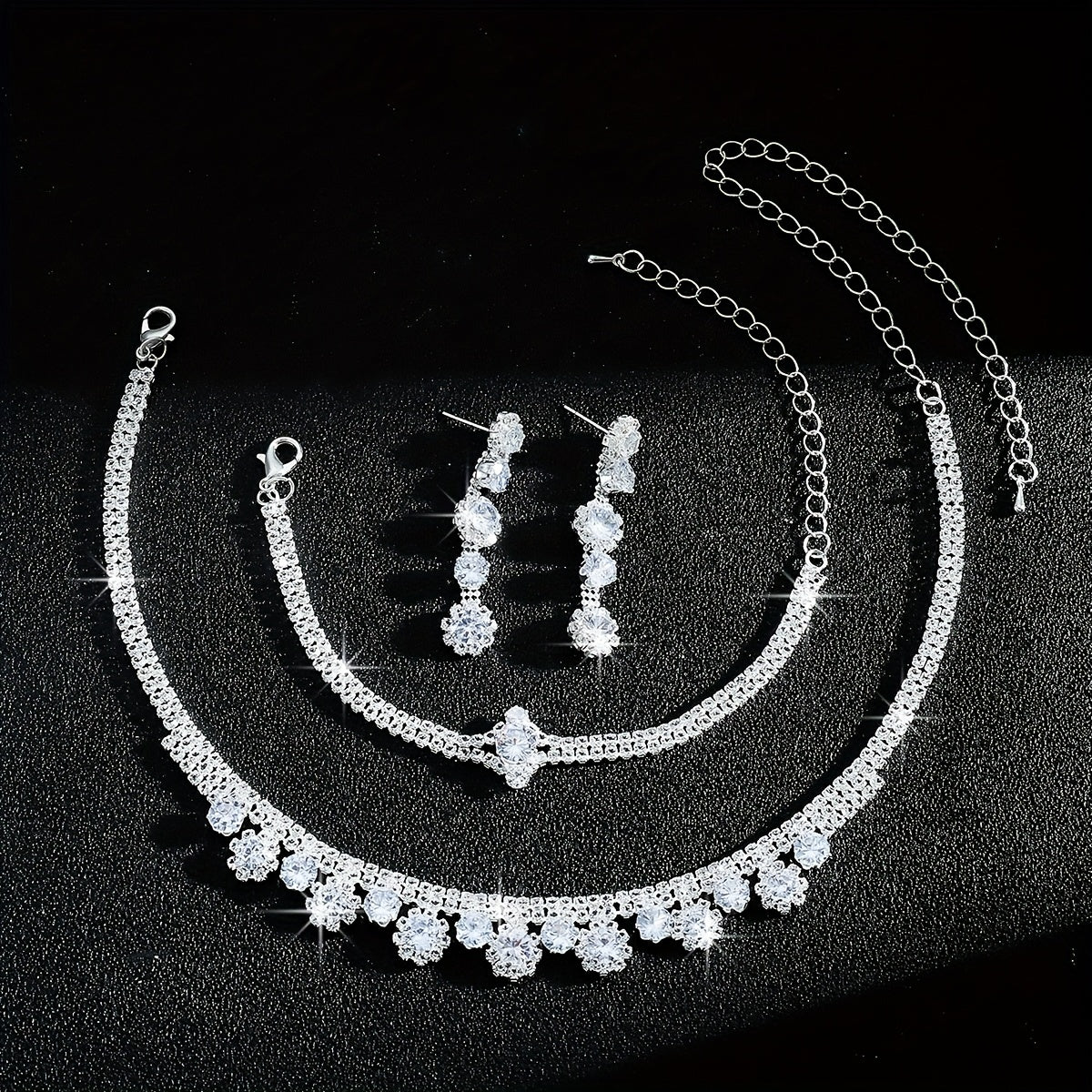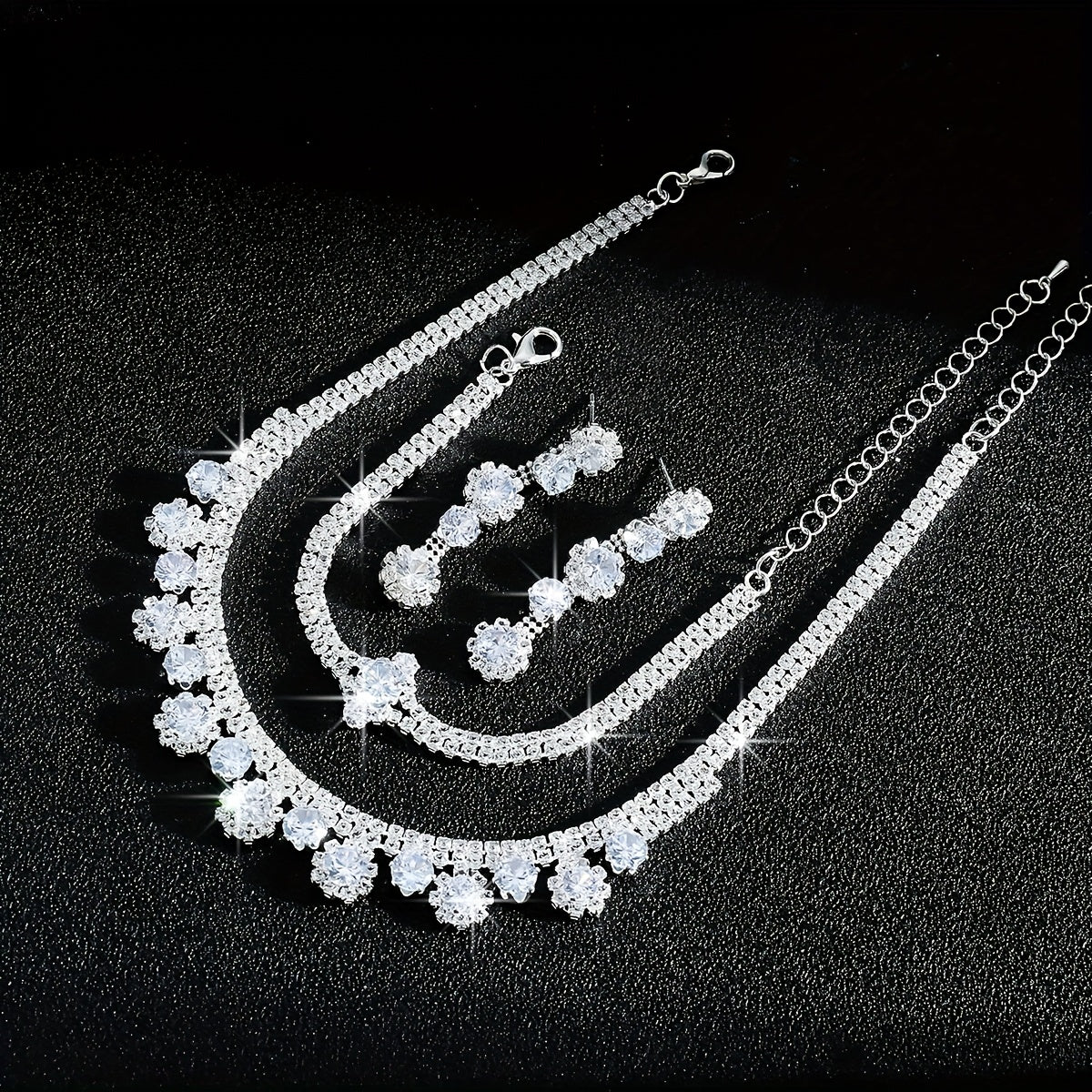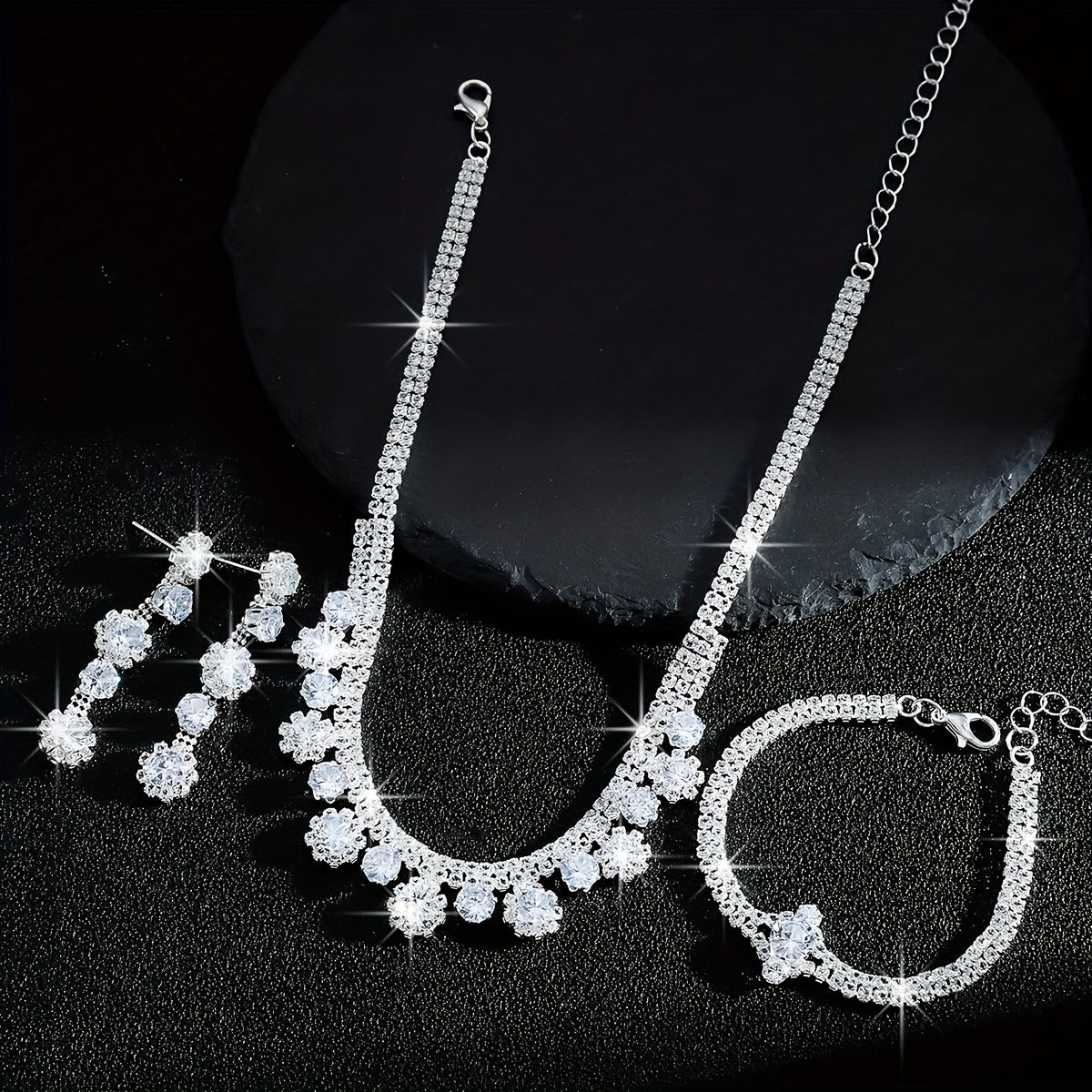This stunning sunflower jewelry set features a necklace, bracelet, and earrings with rhinestones on a copper-plated base. Perfect for adding a touch of nature-inspired elegance to your look.