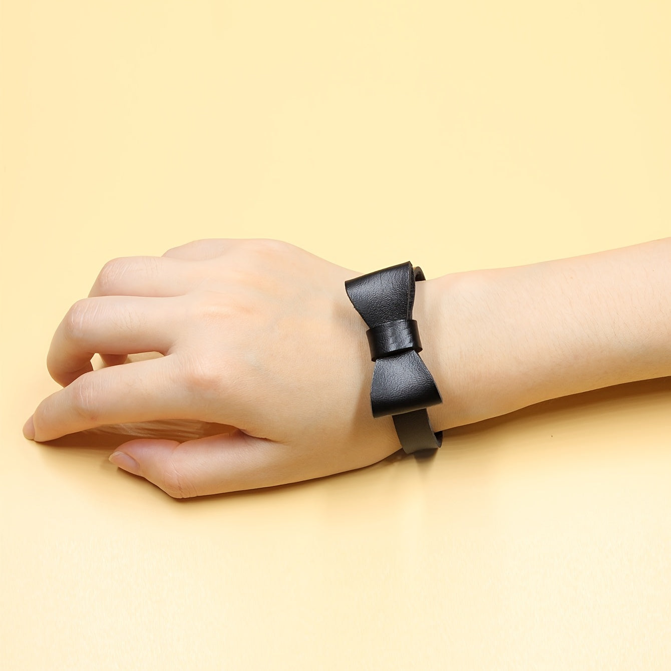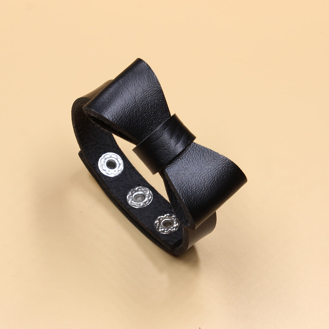 Add a touch of elegance to your outfit with this versatile leather bracelet featuring a stylish bowknot design. Perfect for both casual and formal wear, this durable and comfortable accessory makes a great gift idea.