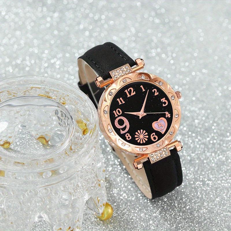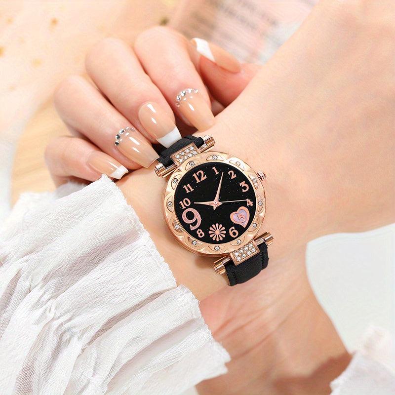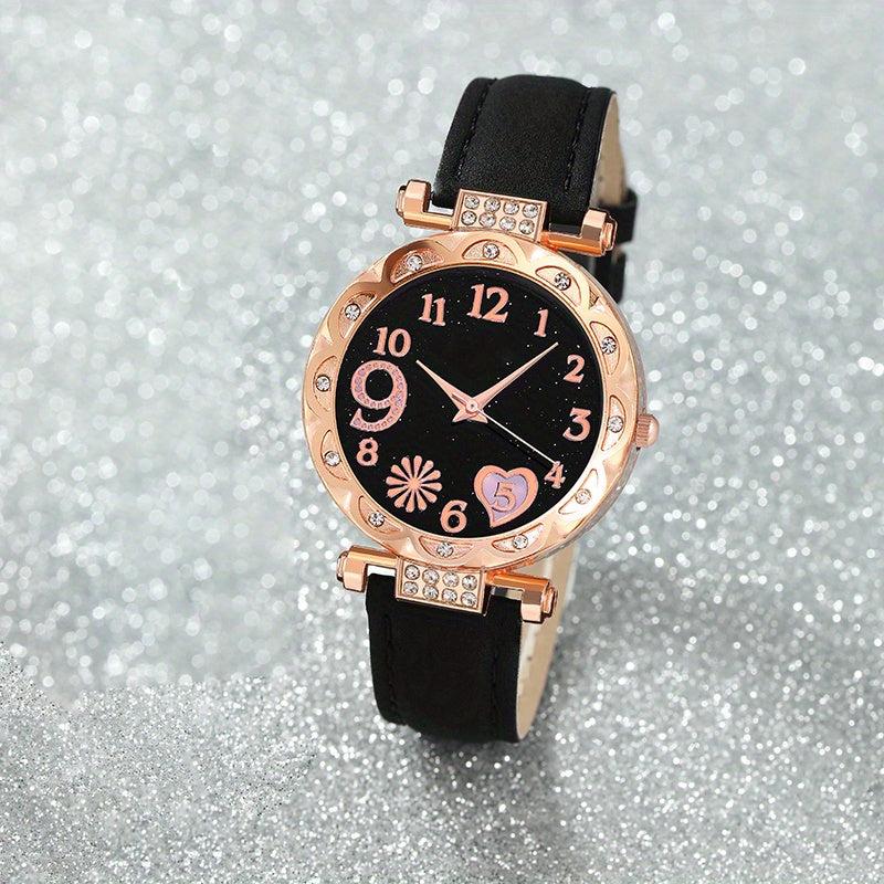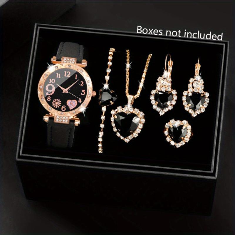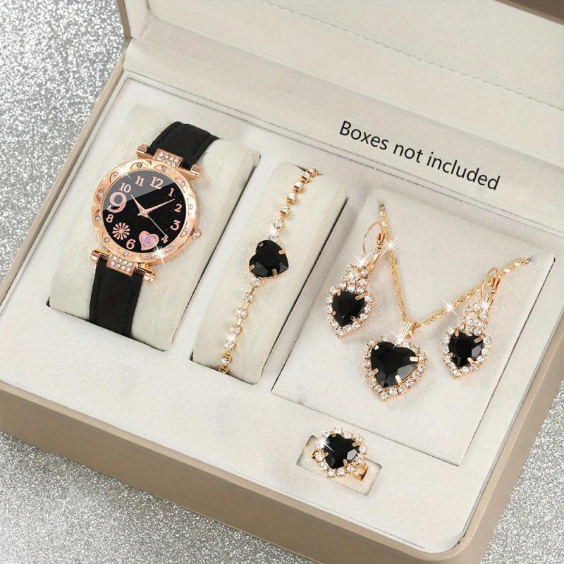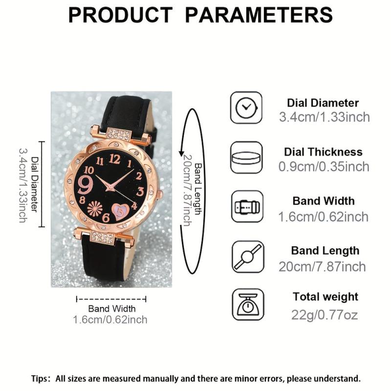 This set includes a stylish round quartz watch and 5 pieces of jewelry, making it a perfect choice for daily wear and gifting. Ideal for birthdays, holidays, and parties, this set is a great gift for ladies.